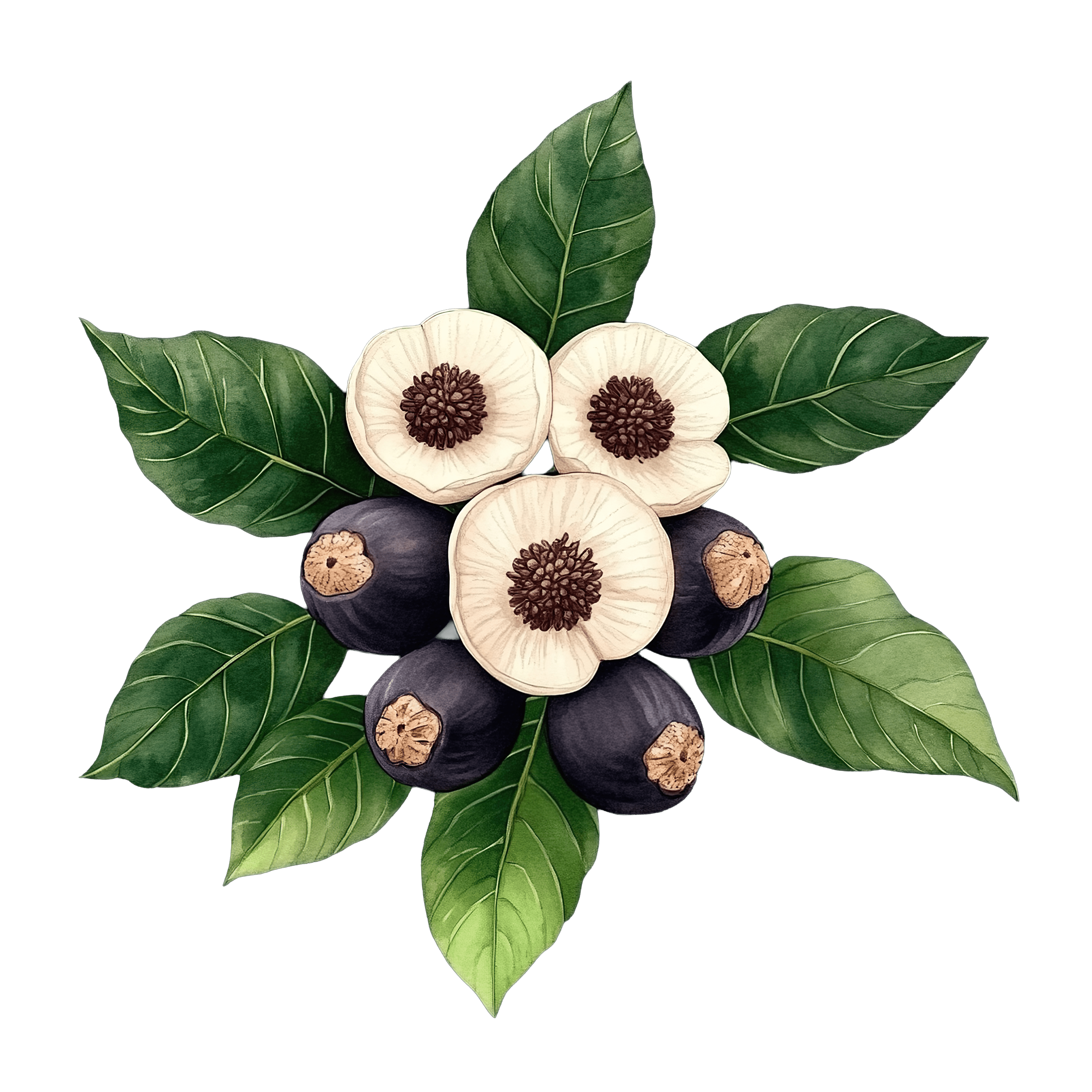 Acai Berries and Leaves Design Acai berries and green leaves arranged.Download PNG ▼Download JPG ▼Related posts:Bright Sun with Radiating Rays Behind Fluffy Clouds IllustrationWatercolor Pear Clipart with Red and Green HuesIntricate Mandala Snowflake with Pine Elements in Red and GreenWatercolor Red Mushrooms on Textured Mossy Green HillYellow monkey holding a bananaTwo White and Yellow Daffodil Flowers on Black BackgroundWatercolor Poinsettia Illustration with Red and Green LeavesBlue Elephant in Watercolor Splash ClipartVibrant Orange Poppy Flower Illustration with Green LeavesColorful Striped Gift Box with Yellow Ribbon BowPeanut Butter Cookie with Textured Surface DesignPink jellyfish with tentacles clipart illustration