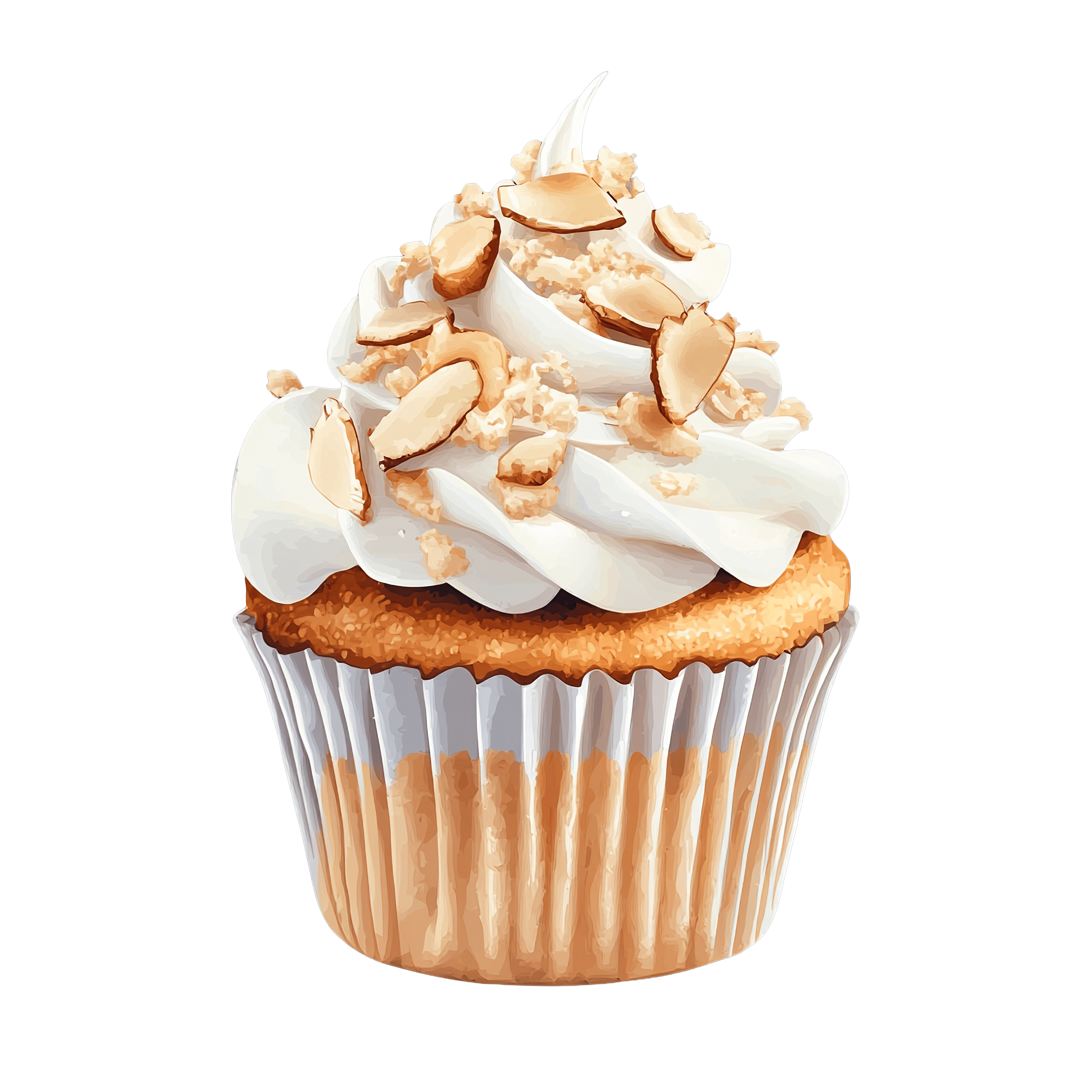 Almond Cupcake with Whipped Cream and Nut Topping Almond cupcake topped with whipped cream and sliced almonds.Download PNG ▼Download JPG ▼Related posts:Vibrant Mango with Water Droplets on Surface fruit colorful clipart vector artPurple jellyfish clipart with smiling faceVibrant Butterfly With Stained Glass Wing Pattern IllustrationCaramel Drizzled Cheesecake with Whipped Cream and HazelnutsRed Heart-Shaped Pendant with Decorative Gemstone BorderPastel Pink Gerbera Daisy with Detailed Watercolor TechniqueYellow snail clipart with spiral shellOrange bear clipart with colorful containersColorful Butterfly With Bright Orange And Yellow WingGlass Mug of Coffee with Whipped Cream and CaramelDetailed Illustration Of A Purple Butterfly With IntricateNaranjilla Fruit with Leaves and Seeds Clipart
