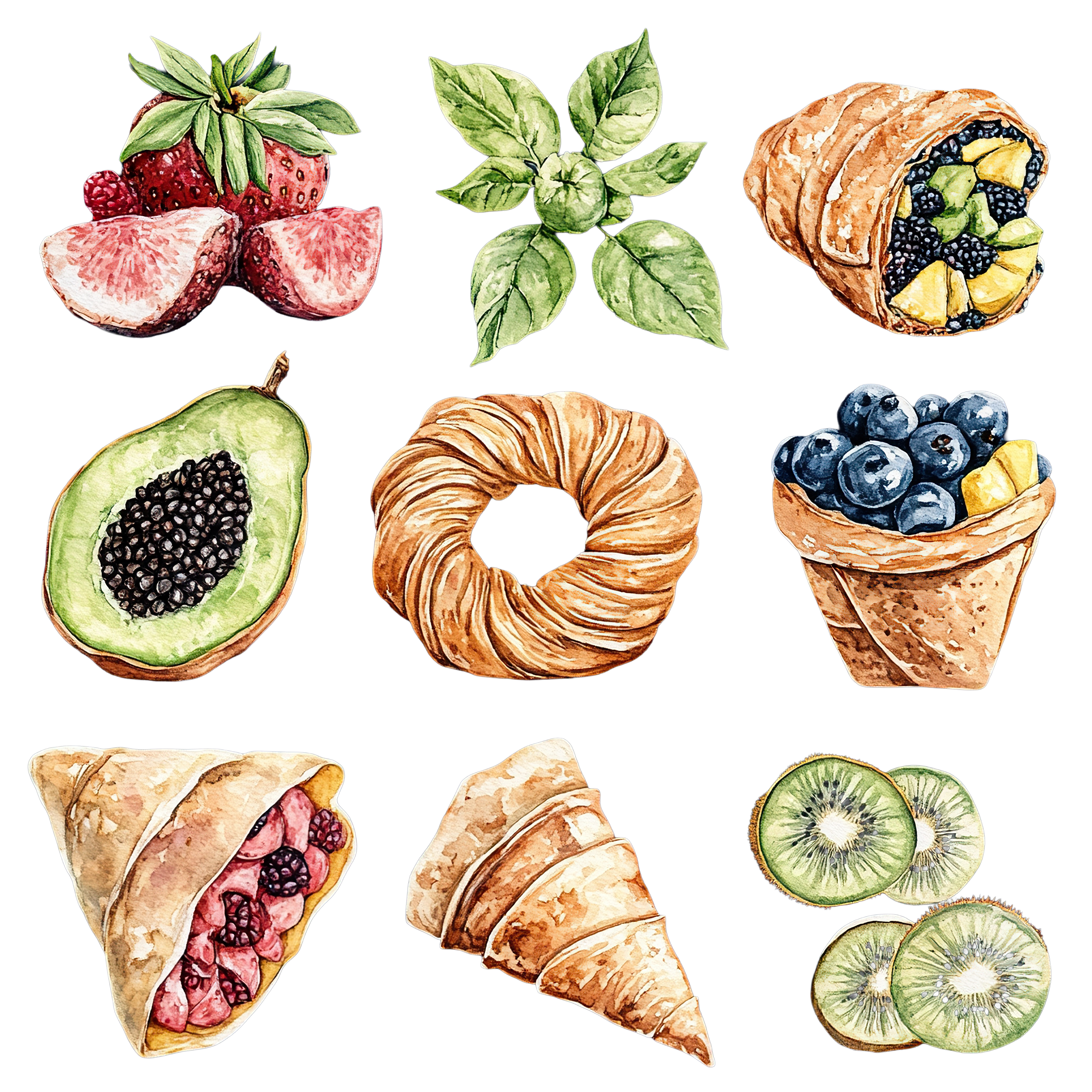 Assorted Fruits and Pastries with Fresh Leaves food drink clipart vector art Assorted fruits, pastries, and fresh leaves arranged in a grid patternDownload PNG ▼Download JPG ▼Related posts:Hot Beverage with Lemon Slice and Cinnamon StickRed and White Christmas Ornament with Striped Design and RibbonChocolate Mousse in Glass with Silver Spoon dessert dish brown sweet foodColorful Clown with Red Hair and Yellow CollarCat in Santa Hat with Christmas Baubles IllustrationYellow snail clipart with spiral shellDetailed Bird and Holiday Wreath with Holly and PineWatercolor Purple Onion with Green Stem vegetable clipart food vector art printableRed Mittens with White Snowflakes and Falling Snowflakes IllustrationFour Yellow Zucchinis with Green Stems and LeavesYellow Flower with Large Petals on Black BackgroundDetailed White Lily Flower with Green Leaves on Black