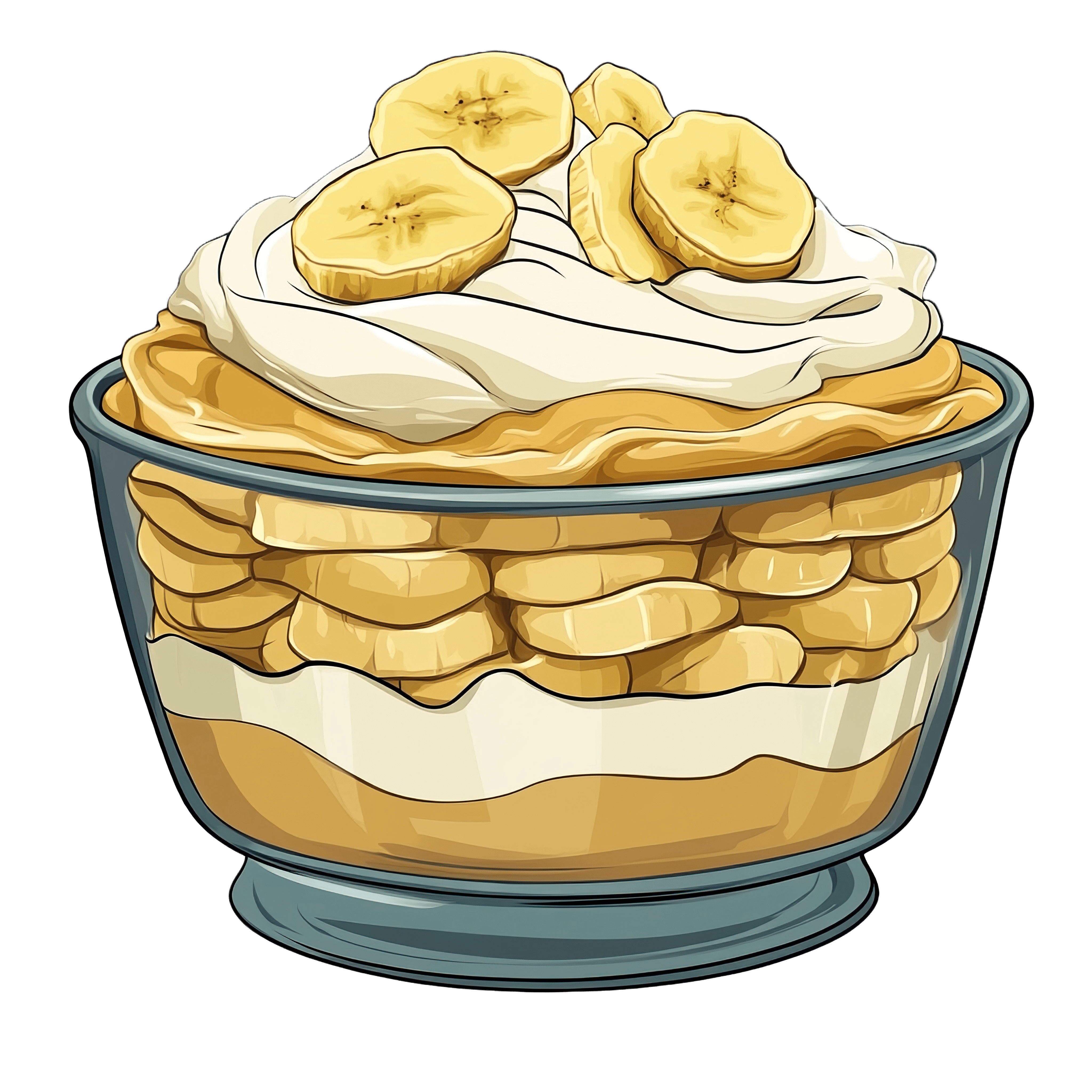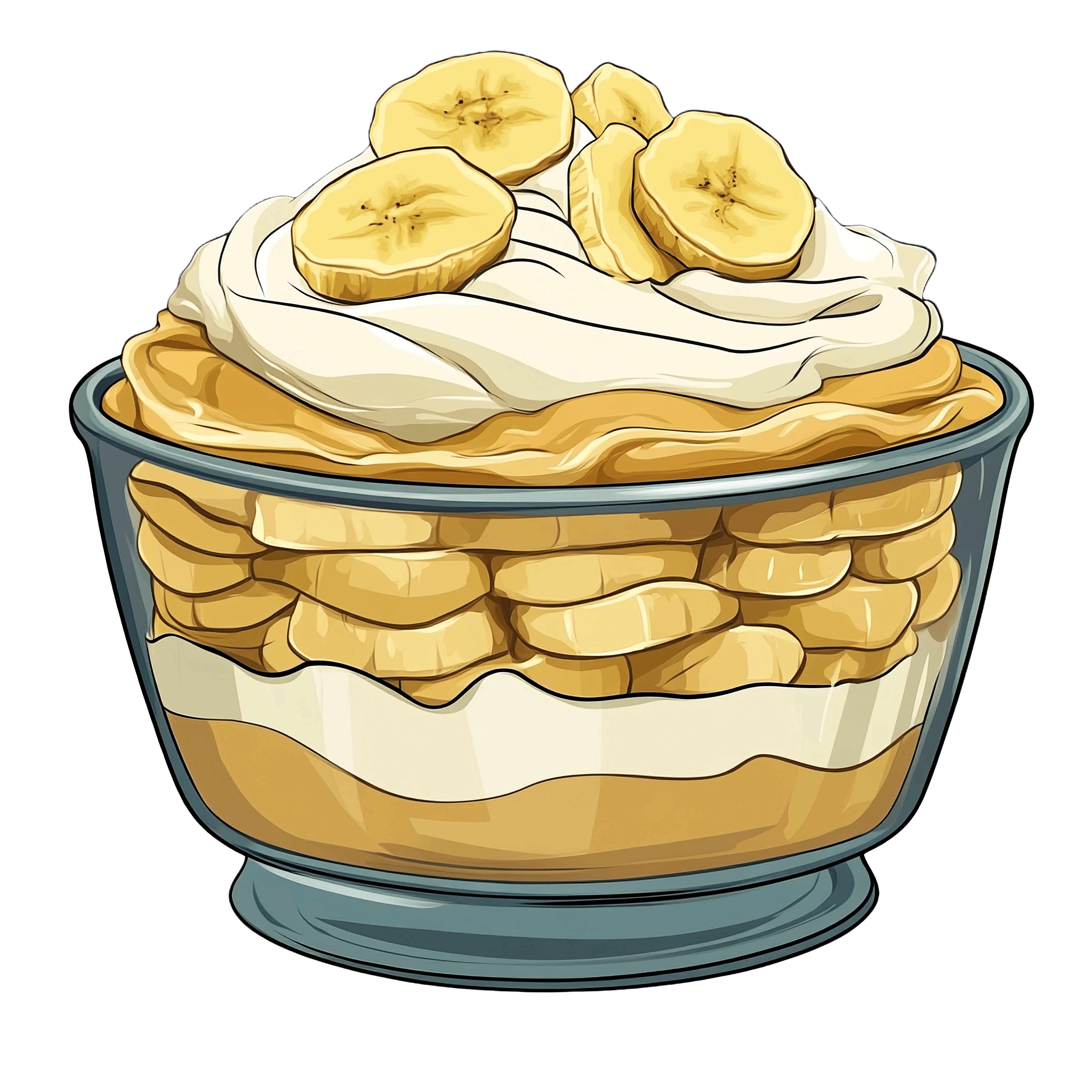 Banana Pudding in Glass Bowl with Whipped Cream Topping Banana pudding layered with whipped cream in a transparent glass bowl.Download PNG ▼Download JPG ▼Related posts:Watercolor art of Fresh Ginger Roots with Green LeavesSanta Claus Illustration in Red Suit with White BeardElegant pink bougainvillea with green leaves illustration on blackPurple bat-like creature with large eyesRed and Green Festive Flower Pinwheel with Swirl PatternSlice of Key Lime Pie with Lime GarnishWatercolor Artichoke with Detailed Green Leaves vegetable clipart food plant realistic vectorYellow Flower with Large Petals on Black BackgroundGrapefruit Slice with Detailed Texture and Vibrant ColorsChocolate Eclair with Drizzled Chocolate Topping Clipart dessert pastry vector art foodBird Wearing a Large Wizard Hat ClipartMizuna Greens in Watercolor Featuring Diverse Leaf Shapes
