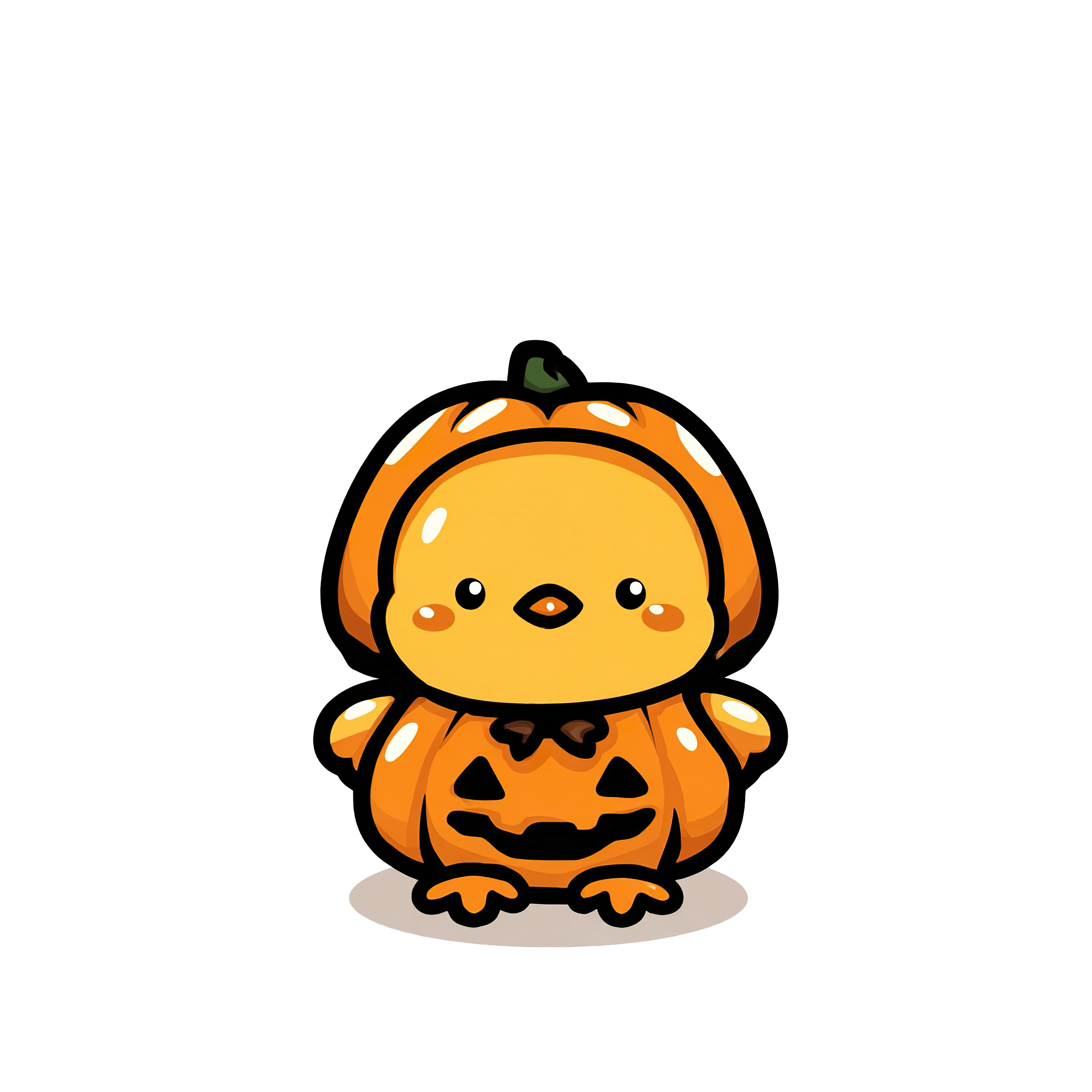 This digital clipart depicts a small bird dressed in a pumpkin-themed costume, featuring a Jack-o'-lantern design. The bird is centered on a plain background, emphasizing its distinctive orange costume with black details, including facial features carved into the pumpkin suit. The image combines festive and nature elements, making it suitable for autumn or Halloween-themed projects.