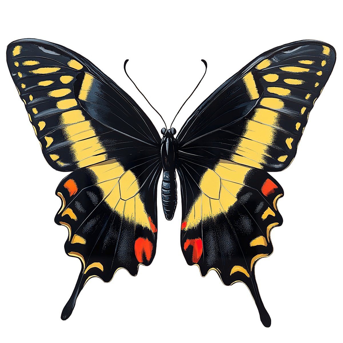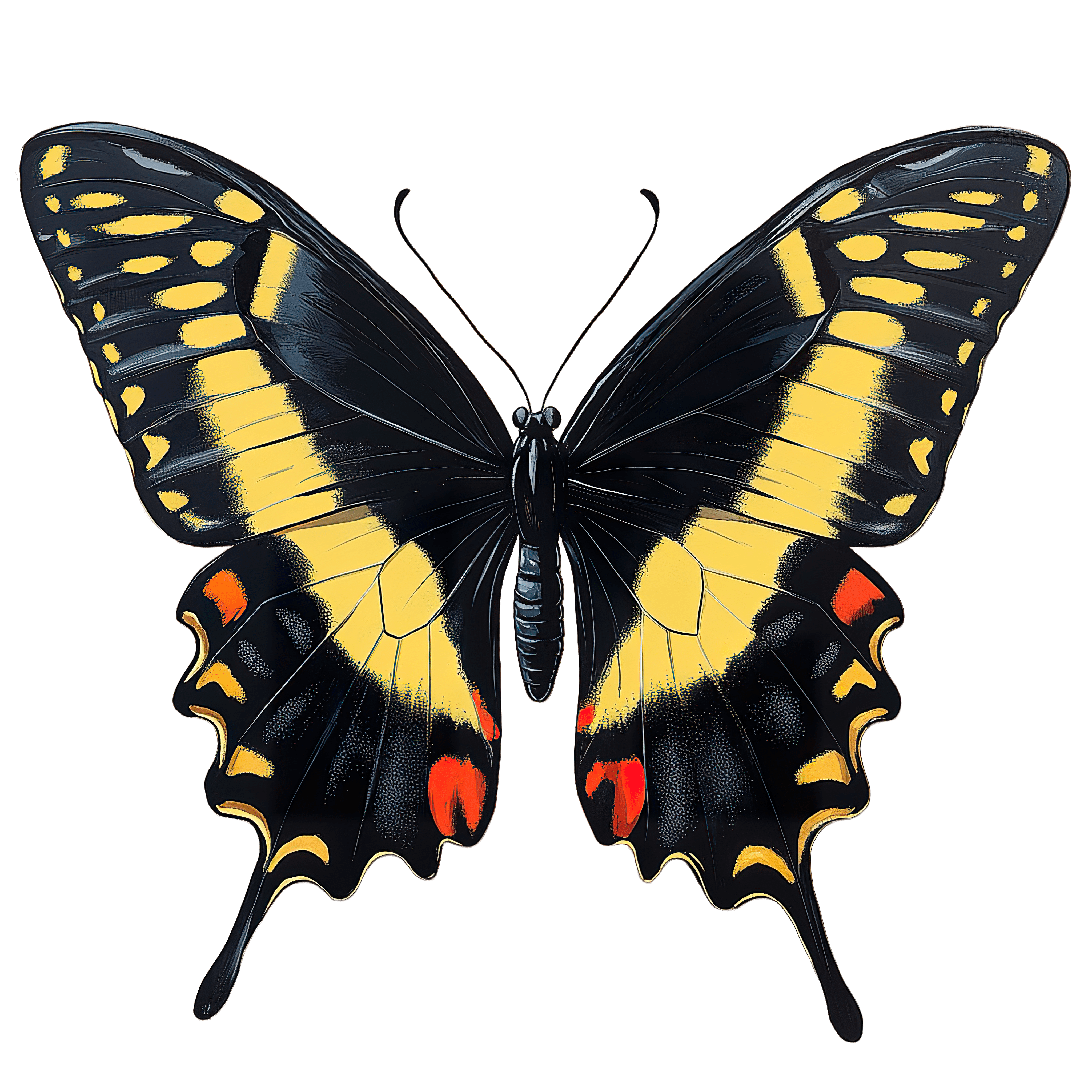 Black And Yellow Butterfly With Distinctive Wing Patterns Black and yellow butterfly displaying unique wing patterns and colors.Download PNG ▼Download JPG ▼Related posts:Two Elves Opening Festive Gifts with Red RibbonsBowl of Yogurt with Fresh Berries and SpoonCartoon Style Green Crocodile Clipart with Big EyesVibrant Butterfly With Multicolored Wings On Clipart PngWatercolor Oranges with Leaves and Sliced HalfWatercolor Orange with Green Leaves on Branch fruit food drink clipart vectorGreen Holly Branch with Red Berries Clipart IllustrationDetailed Illustration Of A Blue Butterfly With PatternedStack of Colorful Books with a Red Apple on TopRed and White Christmas Stockings with Bows and PatternsWatercolor Green Cabbage with Detailed Leaf Texture vegetable food clipart vector artVibrant Butterfly With Luminous Wings Insect Vector Illustration
