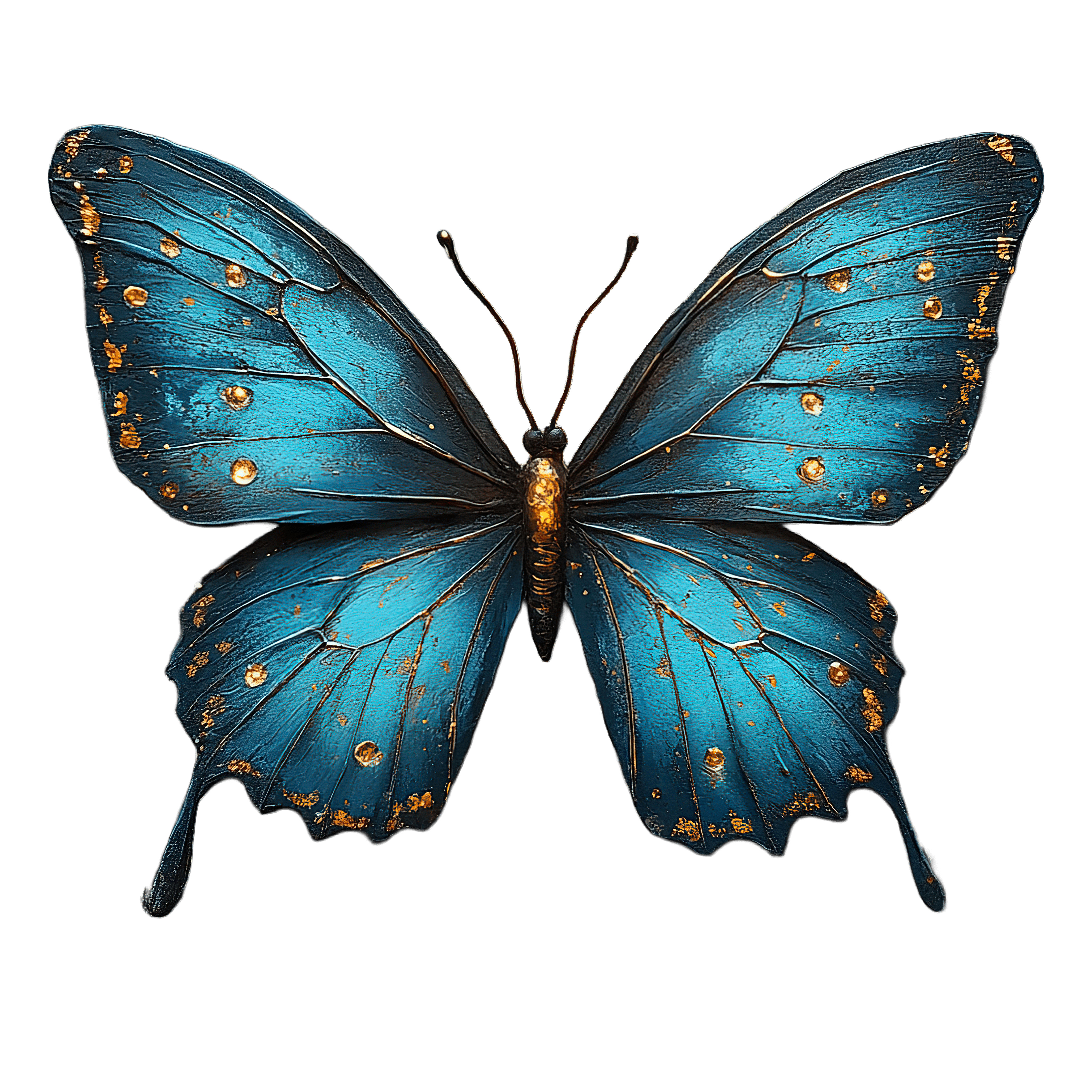 Blue Butterfly With Gold Detailing In Flight Blue butterfly with gold spots displayed on a black background.Download PNG ▼Download JPG ▼Related posts:Glass of Milk with Detailed Transparent Design beverage drink dairy clipart vectorWatercolor Illustration of Leaves and Branches in Star PatternStack of Four Slices of Brown Bread ClipartChocolate Cake with Cherry Topping and Dripping CaramelFresh Green Asparagus Stalks Vector ArtWatercolor Leek Vegetable with Green Leaves and White StemChocolate Cake Slice with Cream and Sprinkles dessert food sweet bakery clipartColorful Holiday Ornament with Festive Green and Red DesignSanta Claus Holding Wrapped Gifts in Holiday TraditionWatercolor Black Figs with Juicy Red Interior and SeedsGreen Chayote Squash with Leaves in Watercolor StyleWine Glass with Grapes and Vine Leaves purple green clipart vector art