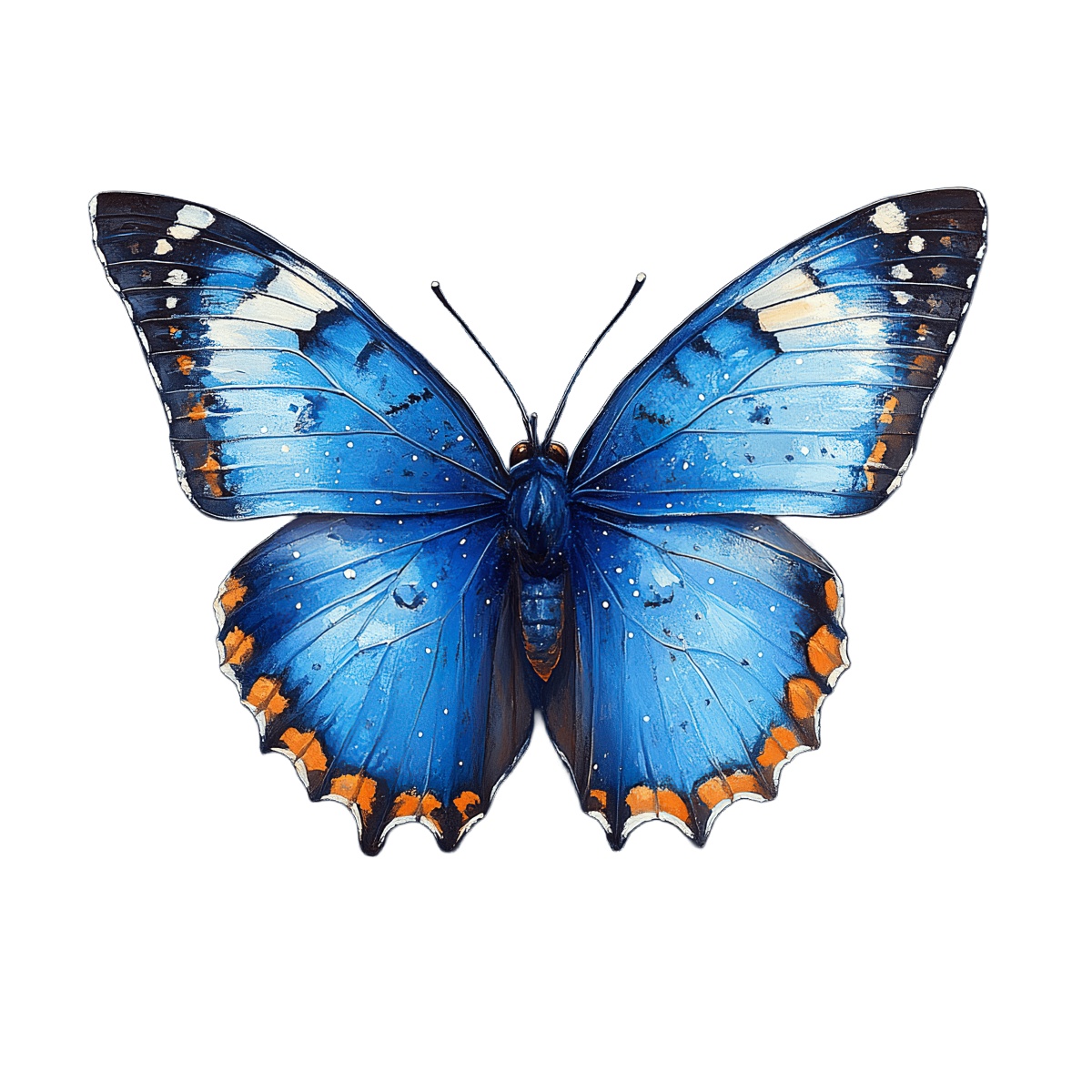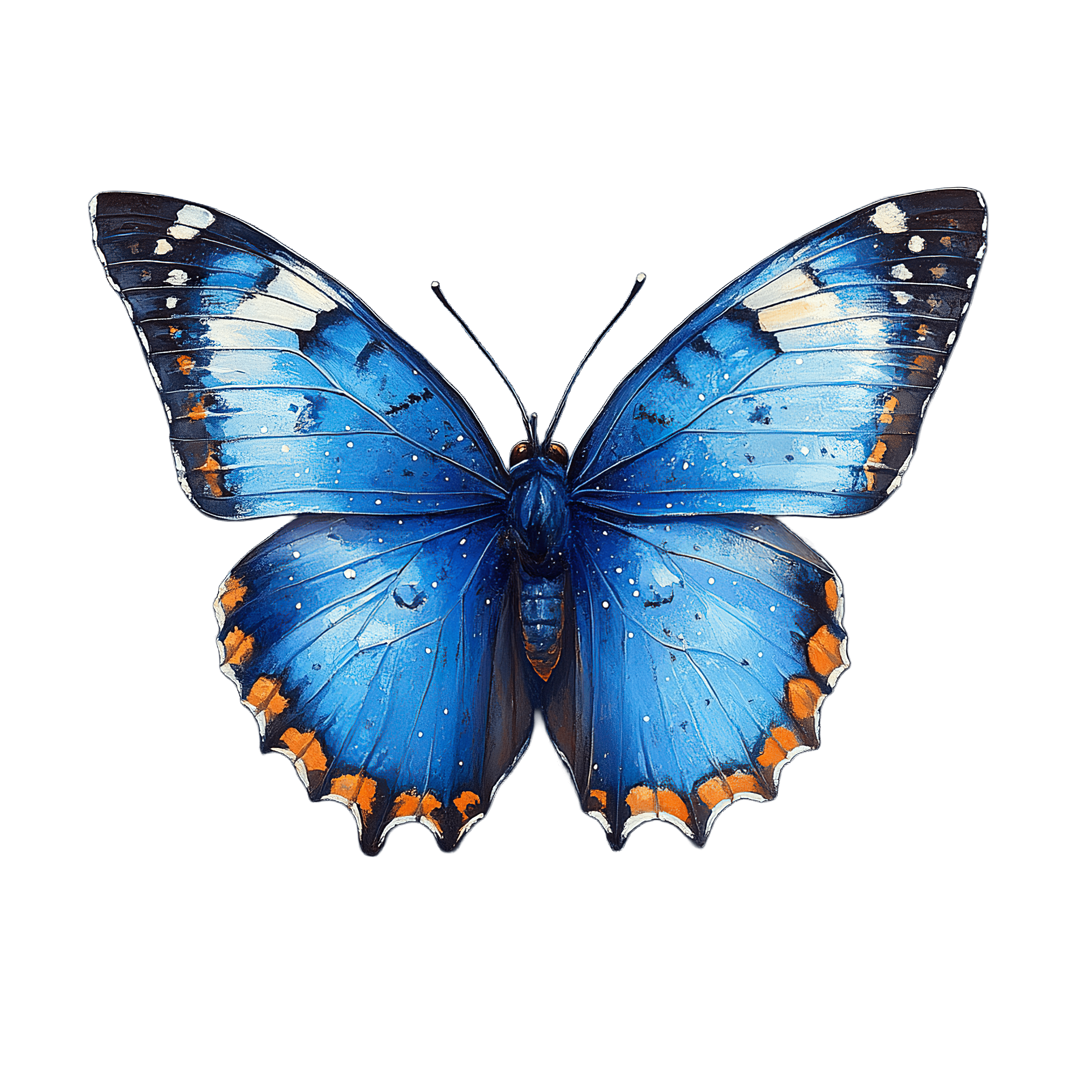 Blue Butterfly With Orange And White Wing Accents Blue butterfly features orange and white accents on its wings.Download PNG ▼Download JPG ▼Related posts:Monkey on Vines Clipart IllustrationBrown and Black Fluffy Hedgehog ClipartPair of Coffee Cups with SpoonsDetailed Botanical art of Pokeweed Plant with BerriesDetailed Artichoke Clipart with Green and Purple HuesVibrant Rainbow Winged Butterfly Illustration In FlightFresh Green Spinach Leaves in Watercolor Style vegetable food clipart vector artRed Christmas Ornament with White Floral Pattern and GreeneryVividly Illustrated Butterfly Boasting Brightly Colored Lively WingsVibrant Orange Butterfly With Sparkling WingsYoung Girl With Floral Headpiece Featuring Red Flowers and LeavesGreen Holly Leaves with Bright Red Berries on Black Background