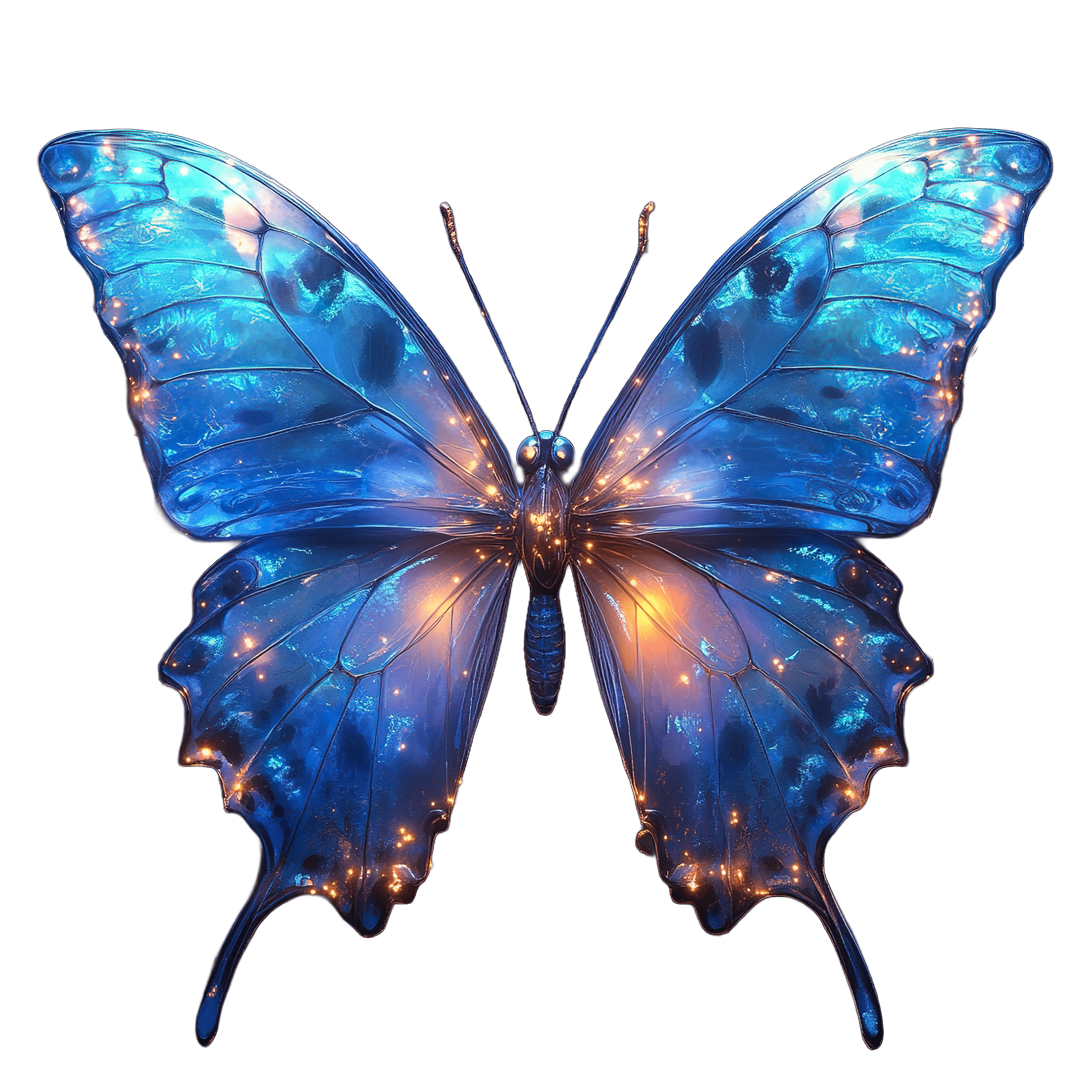 Blue Butterfly With Radiant Glowing Wings Blue butterfly with glowing wings displayed against a black background.Download PNG ▼Download JPG ▼Related posts:Purple Mangosteen Fruits with Green Leaves in Vector ArtDetailed Illustration of a White Daisy with Yellow CenterGradient Jellyfish with Tentacles ClipartColorful Fruit Tart with Whipped Cream Topping dessert kiwi strawberries blueberries pastryFestive Christmas Pudding with Blueberries and Holly LeavesSlice of Berry Tart with Fresh Strawberries and BlueberriesWhole and Sliced Lemons with Green Leaves lemon yellow fruit citrus clipartBlue Touring Motorcycle with Saddlebags Vector Clipart IllustrationDetailed Butterfly Illustration With Vibrant Wing Patterns InsectGreen Owl Wearing a Festive ScarfVictorian Style Woman in Red with Festive Hat and DecorationsCartoon Character Dressed as a Leopard in Suit
