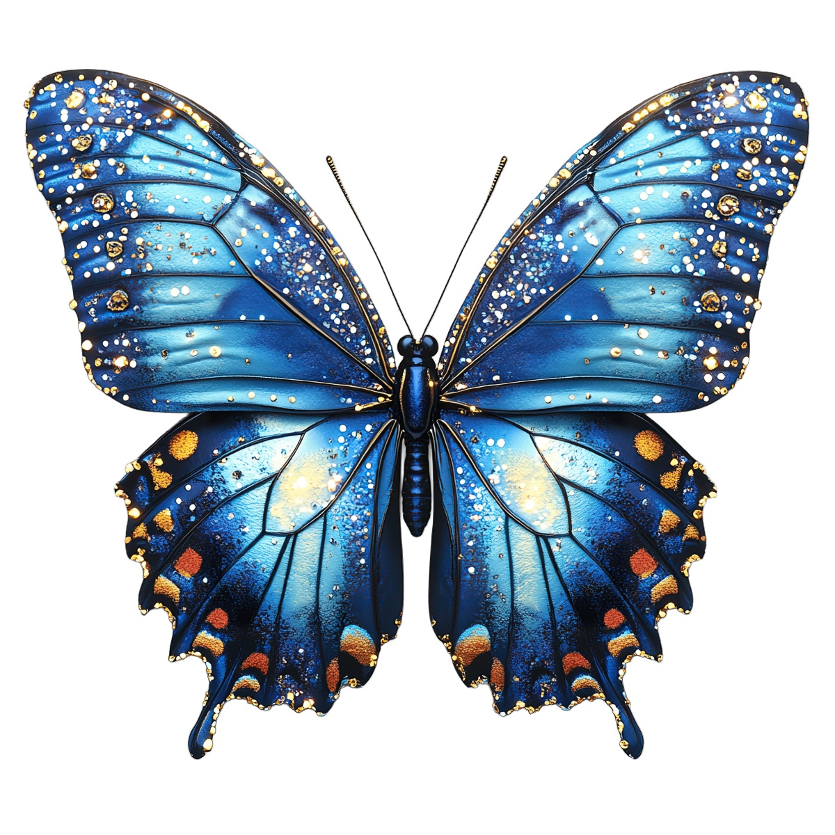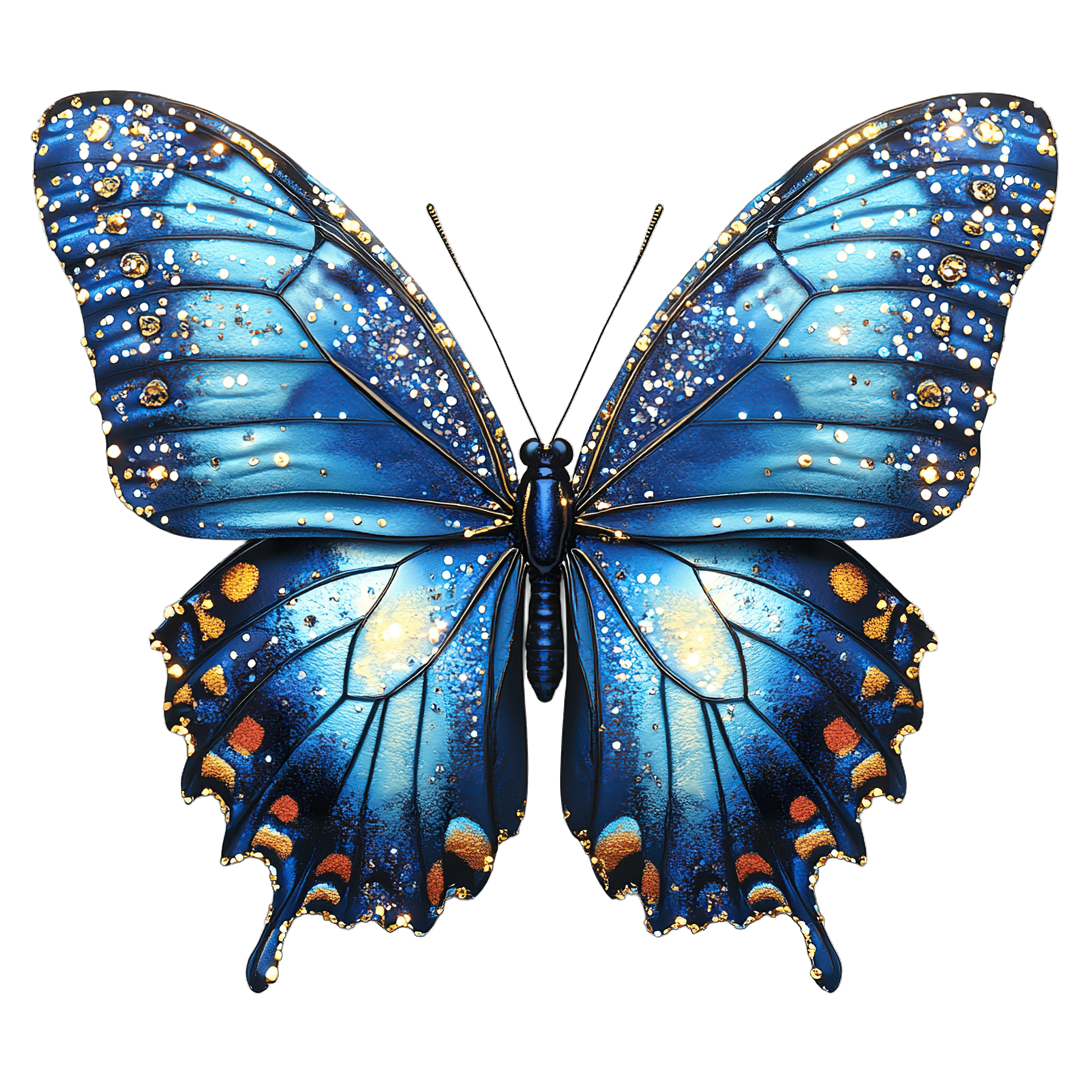 Blue Butterfly With Sparkling Gold Accents On Wings Blue butterfly features intricate gold accents and detailed wing patterns.Download PNG ▼Download JPG ▼Related posts:Layered Chocolate and Vanilla Dessert Slice Clipart food sweet vector art printableWatercolor Style Red Cherries Fruit Vector Art PrintableDetailed Butterfly Illustration With Pink And Yellow WingsVibrant Watercolor Parsnip with Lush Green Leaves and RootsColorful Rainbow and Sunburst Illustration on Black BackgroundWatercolor art of Sliced Kiwano Fruit with SeedsWatercolor Durian Fruit with Spiky Shell and FleshCozy Fireplace with Stockings and Cat for Christmas HolidayTraditional Christmas Pudding with Holly and Berries DecorationGlass Dessert Bowl with Whipped Cream and StrawberriesGlass of Water with Cucumber Slices and Mint LeavesVibrant Watercolor Bell with Colorful Splash Accents