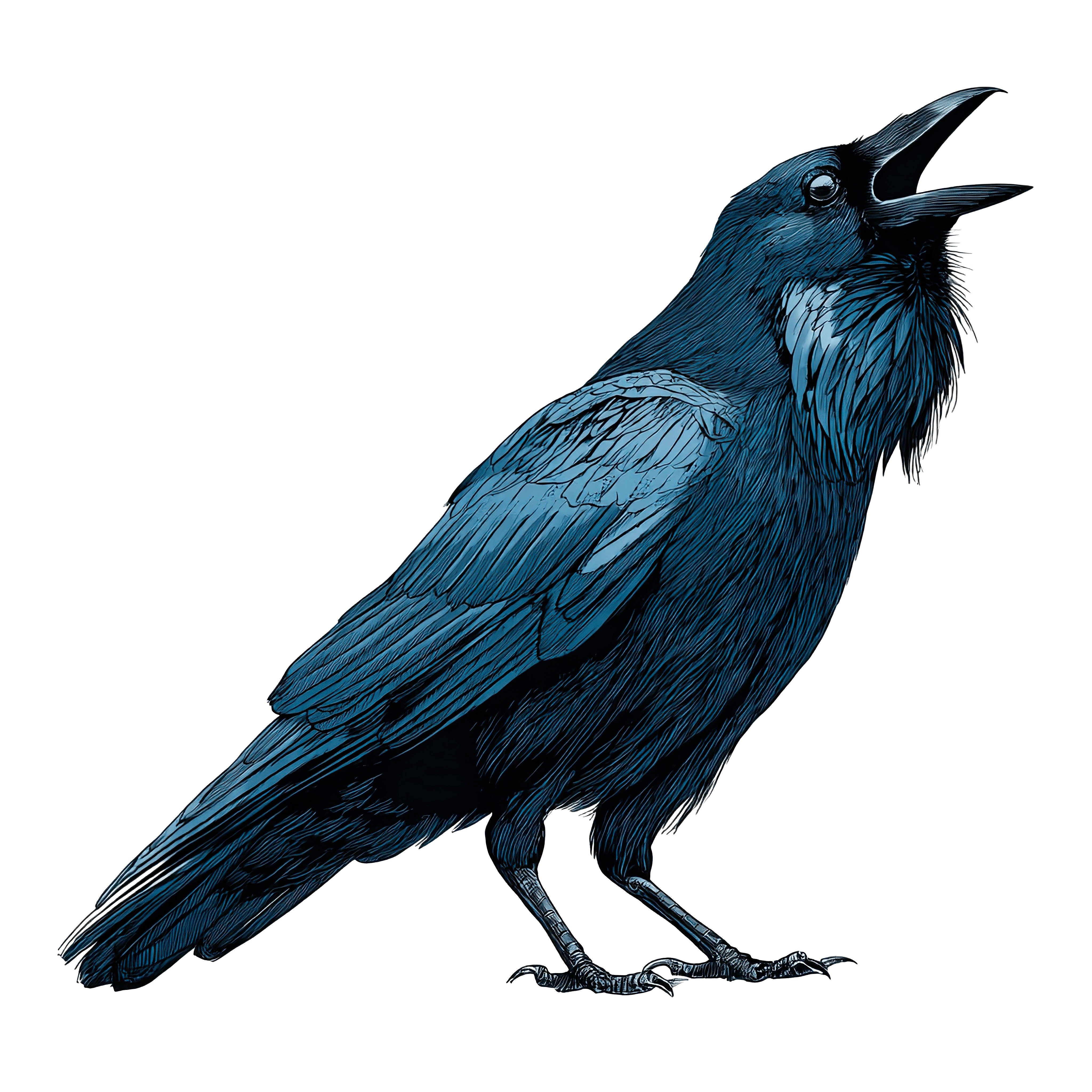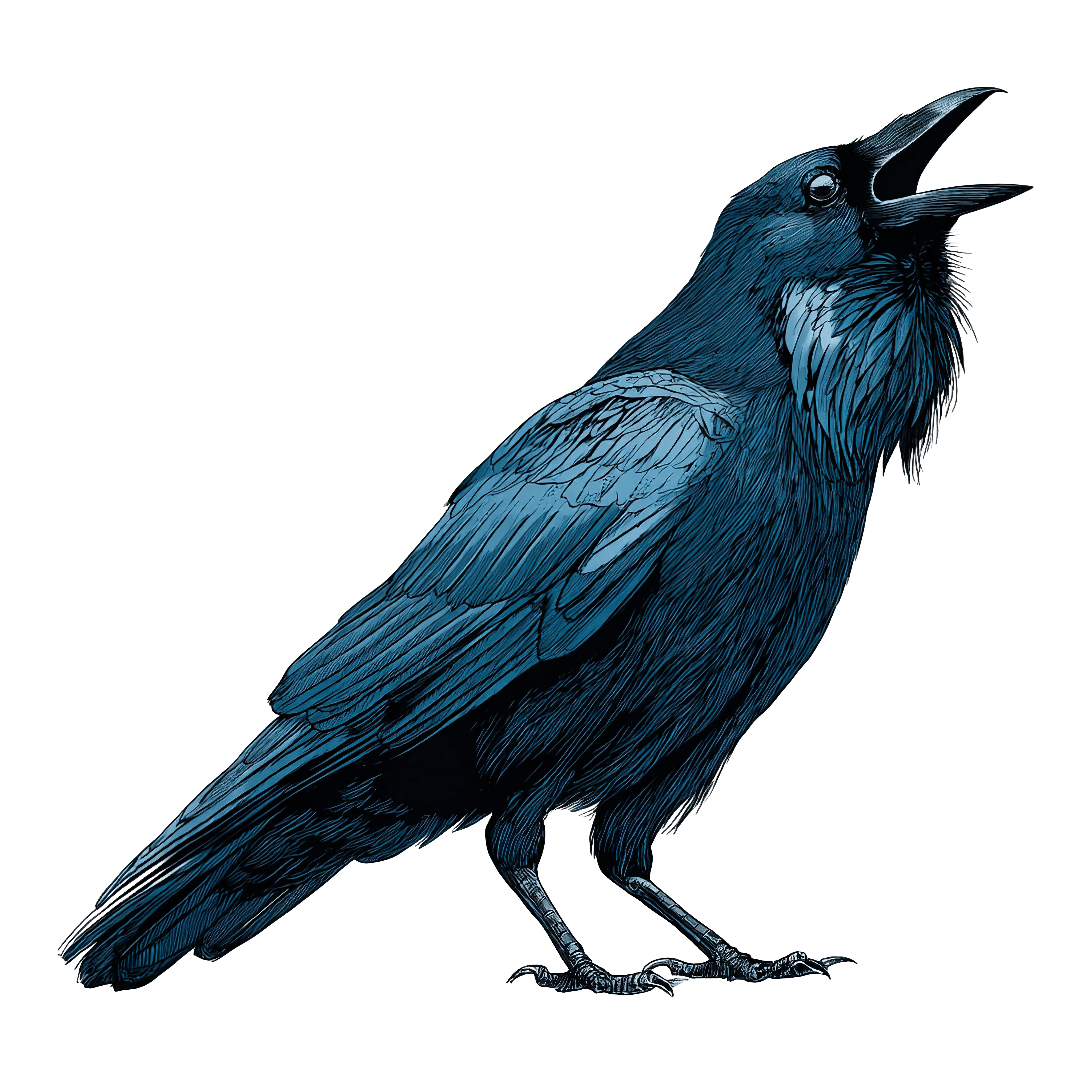 Blue Feathered Raven Clipart Illustrated raven with detailed feathers in shades of blue.Download PNG ▼Download JPG ▼Related posts:Six Varied Green and Colorful Leaves on DisplayPortrait of a Woman with Red Hair and Large Bow TieWoman in Red Hat with Holly Leaves and BerriesBlueberry Tart with Golden Crust Clipart DesignWoman Wearing Red Patterned Headscarf on Black BackgroundDetailed Illustration Of A Butterfly With Pink AndBright Yellow Sunflowers with Green Leaves on Black BackgroundTwo Palm Trees Silhouetted Against a Large Yellow SunVibrant Butterfly Artwork With Open Wings In DetailedGlass of Chocolate Milk with Bubbles on TopStack of Colorful Books in Watercolor Style IllustrationKoala Clinging to Tree with Leaves Clipart