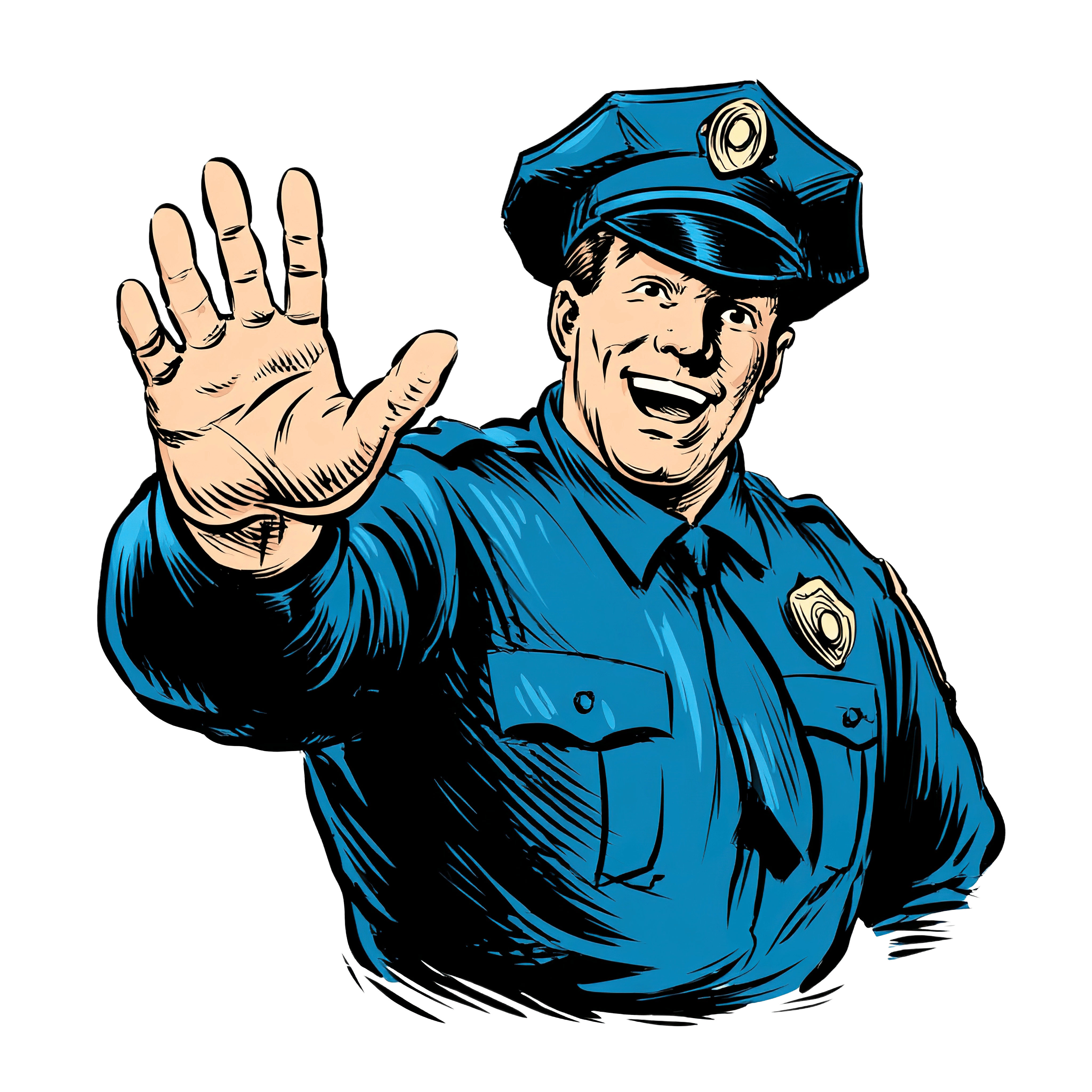 Blue Uniform Police Officer Raising Hand Clipart Png Illustrated police officer in blue uniform raising a hand.Download PNG ▼Download JPG ▼Related posts:Cartoon Pirate Character with Eye Patch and BandanaOkra Flower with Green Leaves Clipart DesignColorful Kayak in Detailed Illustration with Black BackgroundColorful Butterfly Illustration With Striking Orange And PurpleOpen Book with Multicolored Watercolor Clouds EmergingGreen Cartoon Frog Holding Sparklers ClipartGinger Kitten Wearing Santa Hat Next to Christmas OrnamentWatercolor Illustration of Whole and Halved DatesWoman in Elegant Dress Holding a Gift Box with BowVintage Camper Decorated with Festive Holiday Wreaths and SnowDetailed Butterfly Illustration With Vibrant Wing Png X61Cartoon donkey illustration with long ears and tail