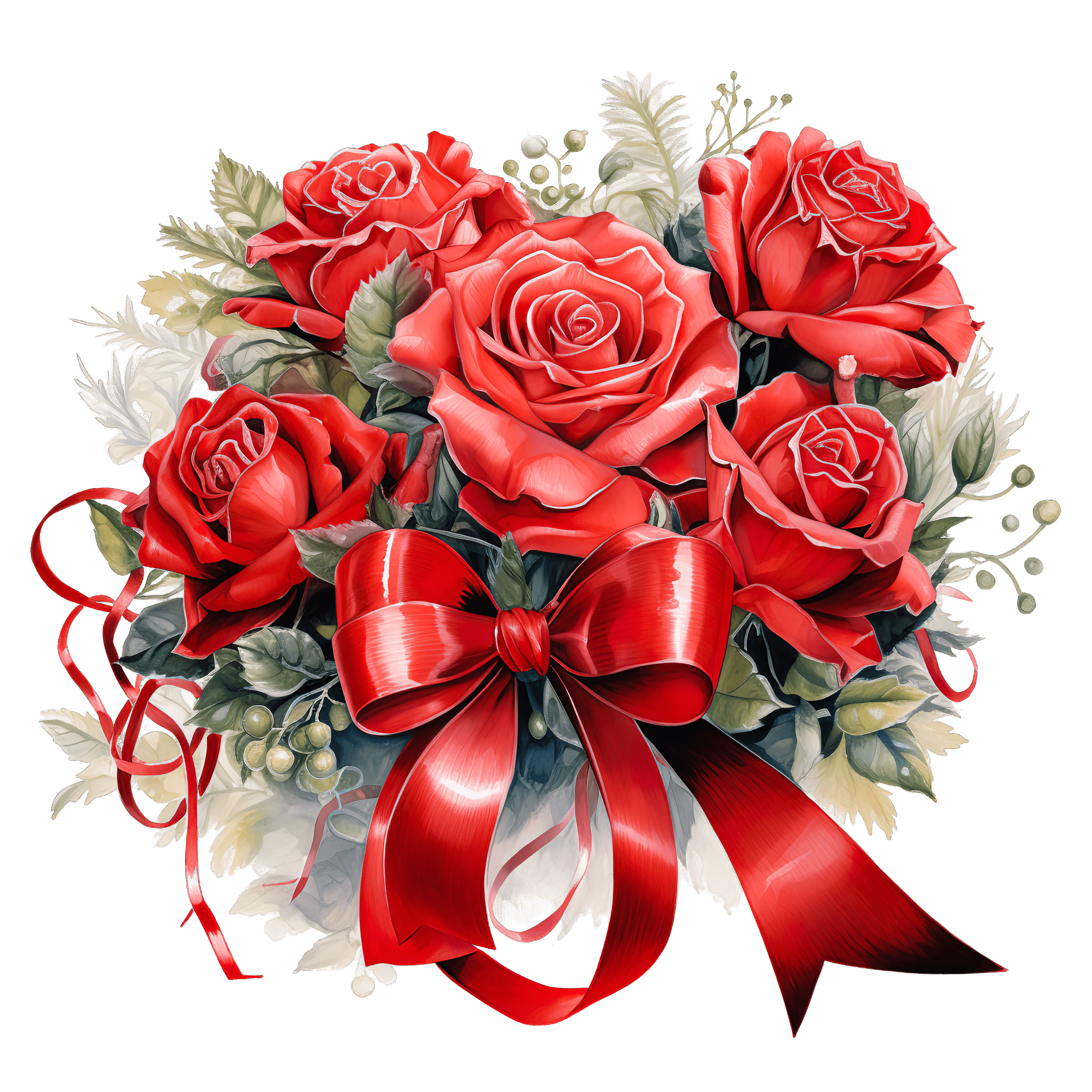 Bouquet of Red Roses with Greenery and Red Ribbon Bouquet of red roses with lush greenery and a decorative red ribbon.Download PNG ▼Download JPG ▼Related posts:Smiling Sun Illustration with Radiating Yellow Rays on BlackFresh Green Okra Pods and Leaves DisplayWatercolor Illustration of a Bright Yellow Sun on BlackPink Fuchsia Flowers With Green Leaves and Black BackgroundWatercolor art of Sliced Kiwano Fruit with SeedsGreen Apple with Leaves in Watercolor Style fruit clipart vector art printableRed Panda Clipart with Striped TailRed Poinsettia Flower with Green Leaves in Watercolor StyleFox on Autumn Leaves in Cartoon Clipart StyleSeagull Wearing Boots Clipart IllustrationStrawberry Cream Pie with Whipped Topping and CrumbleColorful Cartoon Dinosaur with Spiky Back