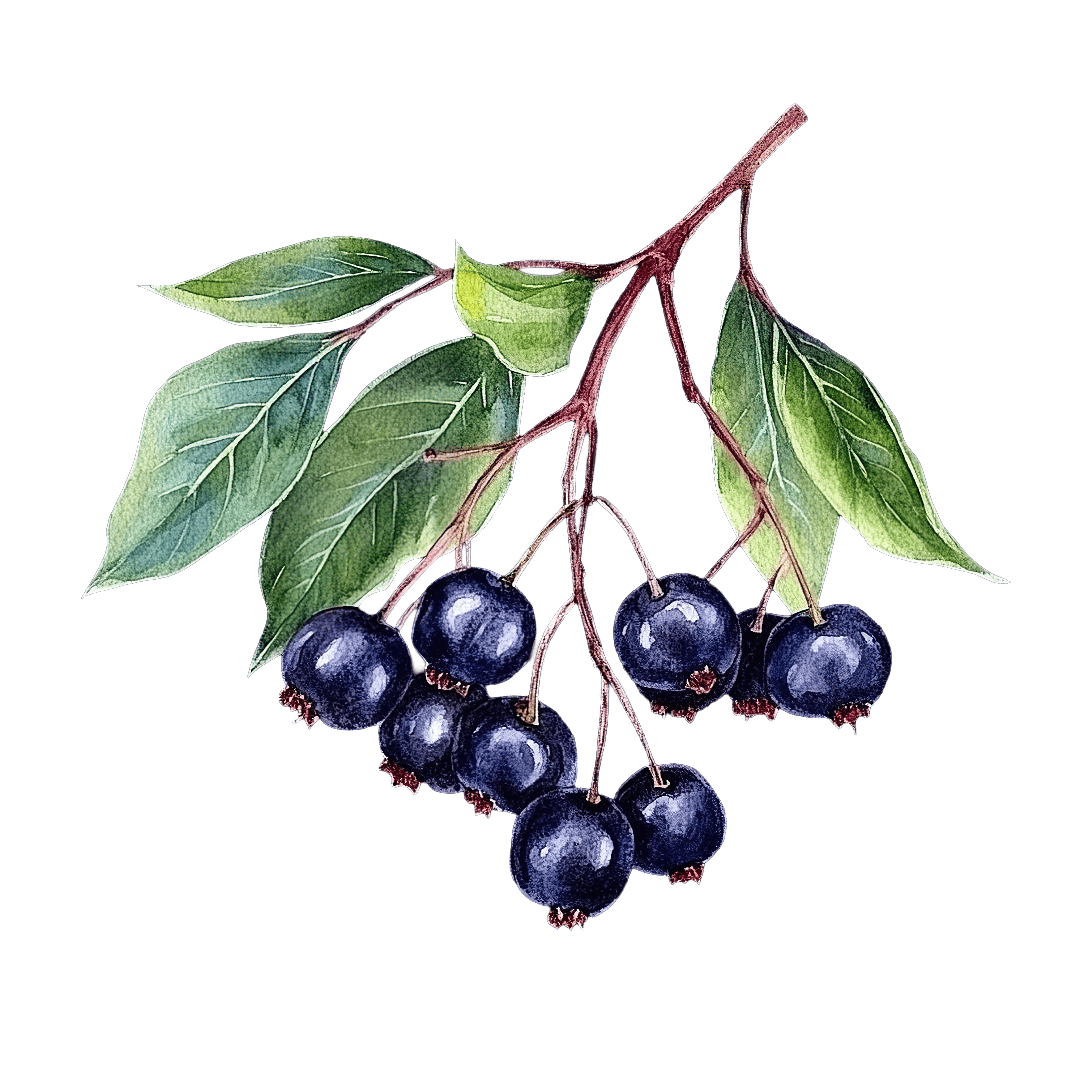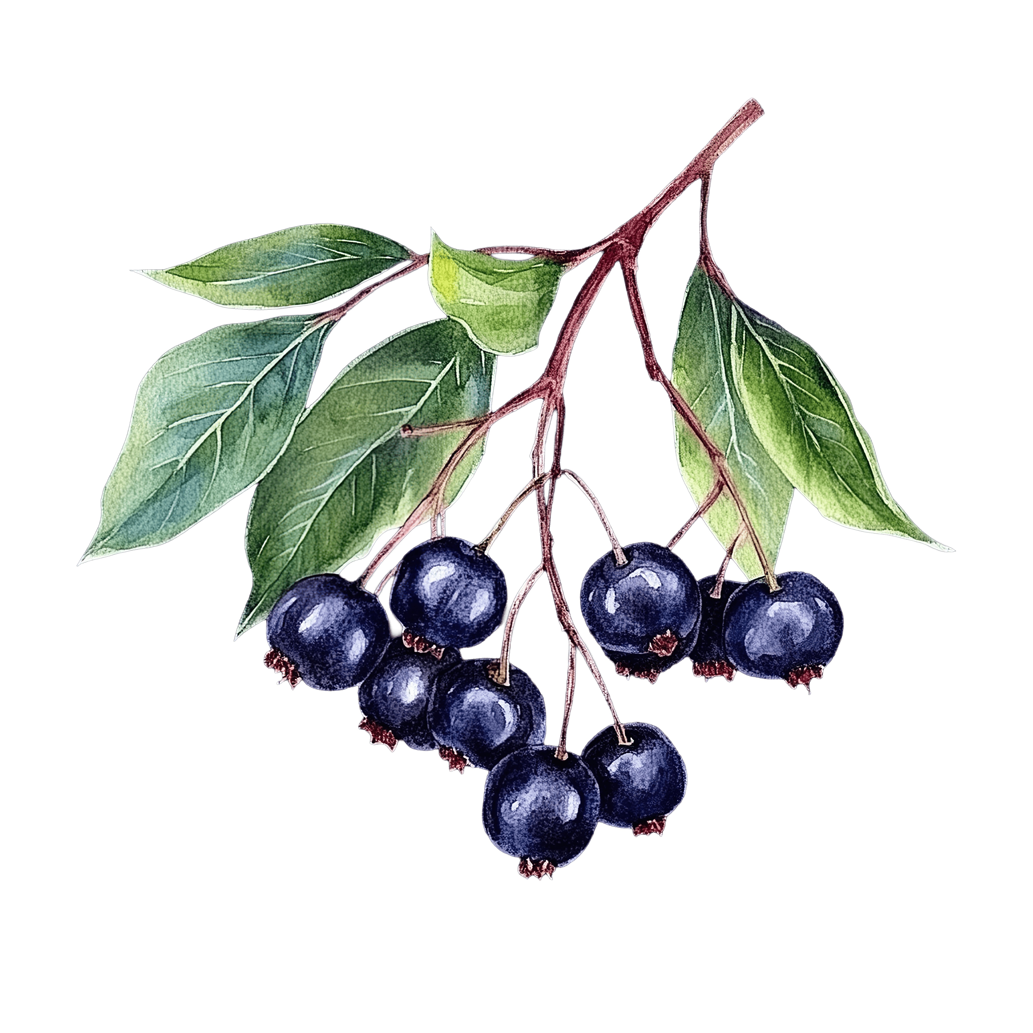 Branch of Black Chokeberries with Green Leaves Black chokeberries hanging from a branch with vibrant green leaves.Download PNG ▼Download JPG ▼Related posts:Detailed Illustration of a Magnolia Blossom on Black BackgroundWatercolor Kiwi Slices with Detailed Seeds and TextureYellow sheep jumping rope cartoon clipartBrightly Colored Butterfly With Lively Wings In FlightWatercolor oranges with leaves and a sliced sectionMouse on Blue Slide Cartoon IllustrationChameleon on Branch Wearing a Large HatSitting wolf pup clipart with black and white furTwo Bellini Cocktails with Strawberries and Peach SlicesThree Vibrant Bell Peppers with Green Stems orange red vegetables food clipartWatercolor Garlic Bulb with Detailed Texture and ShadowPelican clipart with orange beak and white feathers