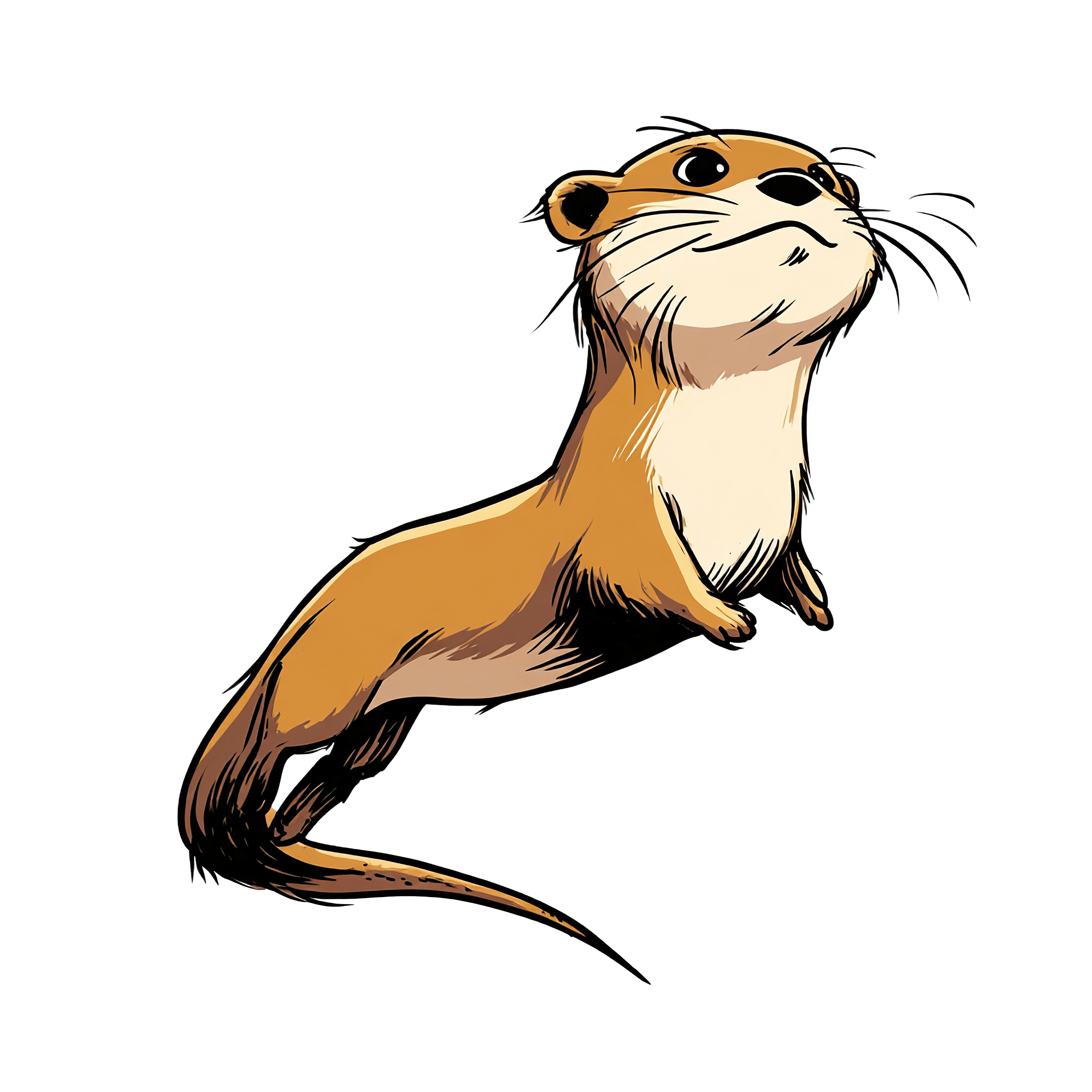 Brown otter with a sleek design, gracefully poised and showcasing a smooth, flowing body. This cartoon-style vector art features distinct outlines and minimalistic details, highlighting the otter's elongated form and characteristic whiskers. The earthy tones of the fur create a natural appearance, ideal for educational materials or decorative uses in animal-themed designs.