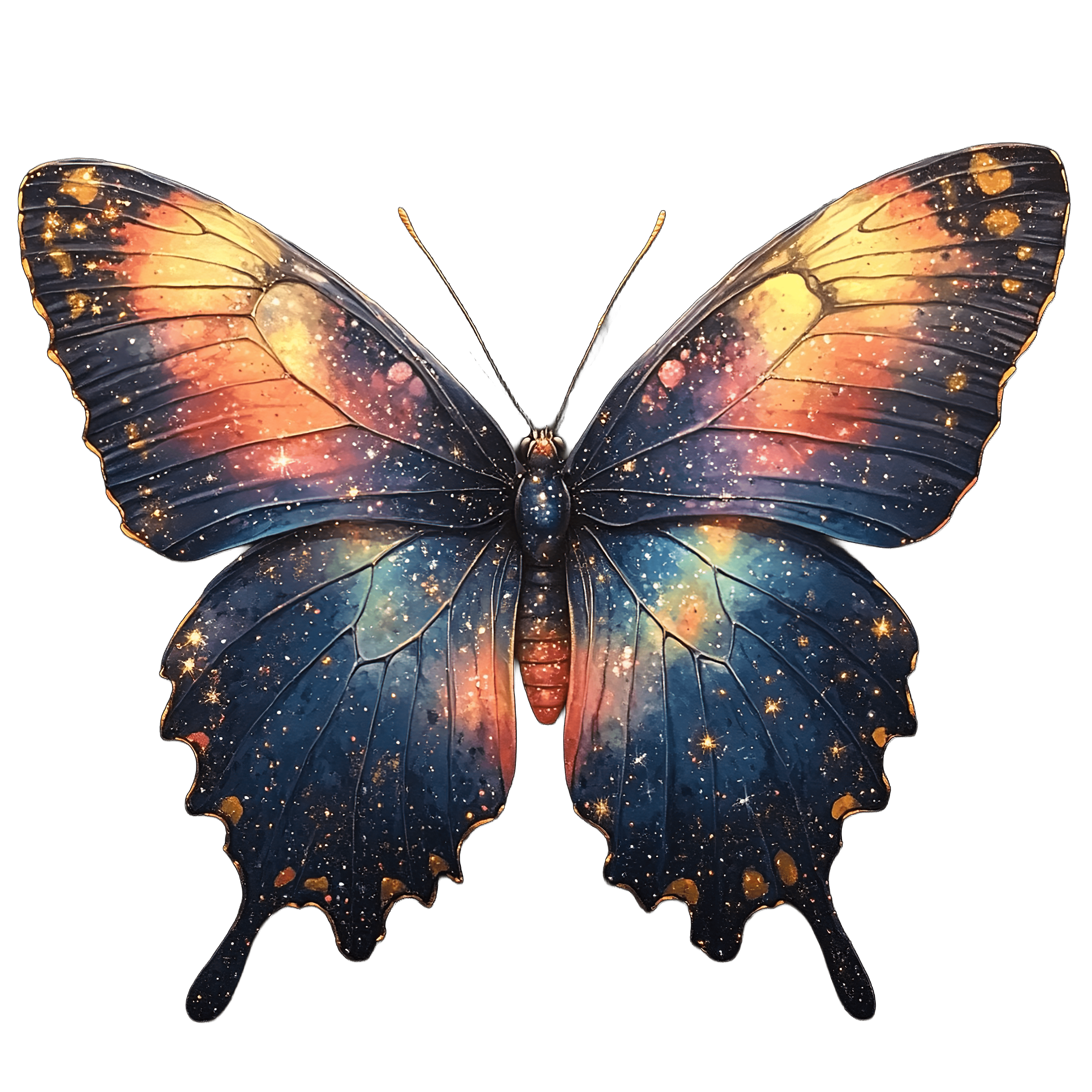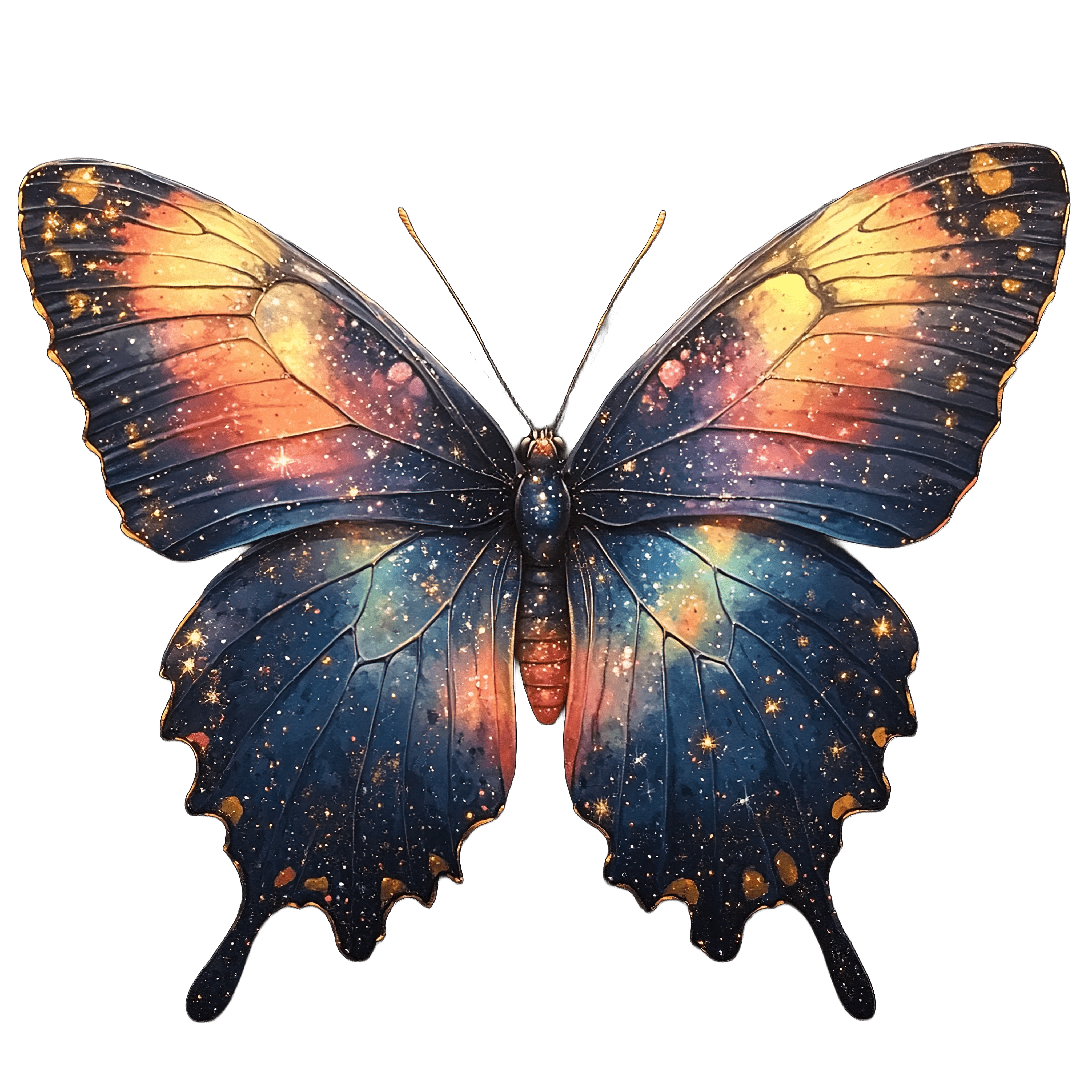 Butterfly With Cosmic Galaxy Pattern On Wings Stars Butterfly features a galaxy pattern with stars and vibrant colors.Download PNG ▼Download JPG ▼Related posts:Watercolor Candles with Floral Arrangement and Leaves IllustrationWoman in Festive Headscarf with Snowflake Patterned ClothingOtter Holding a Muffin Clipart IllustrationFluffy White Rabbit Upright Ears PngCartoon Martial Artist Character in Black Uniform and HeadbandVibrant Orange And Purple Butterfly With Detailed WingsCoconut Drink with Whole and Halved Coconuts beverage tropical glass straw brownCartoon Husky Wearing a Green Elf HatDecorative Christmas Stockings with Bows and Greenery AccentsCute Pink Axolotl in Santa Hat Christmas ClipartThree Watercolor Oak Leaves with Autumn Tones on BlackCartoon Police Officer in Uniform with Badge and Hat