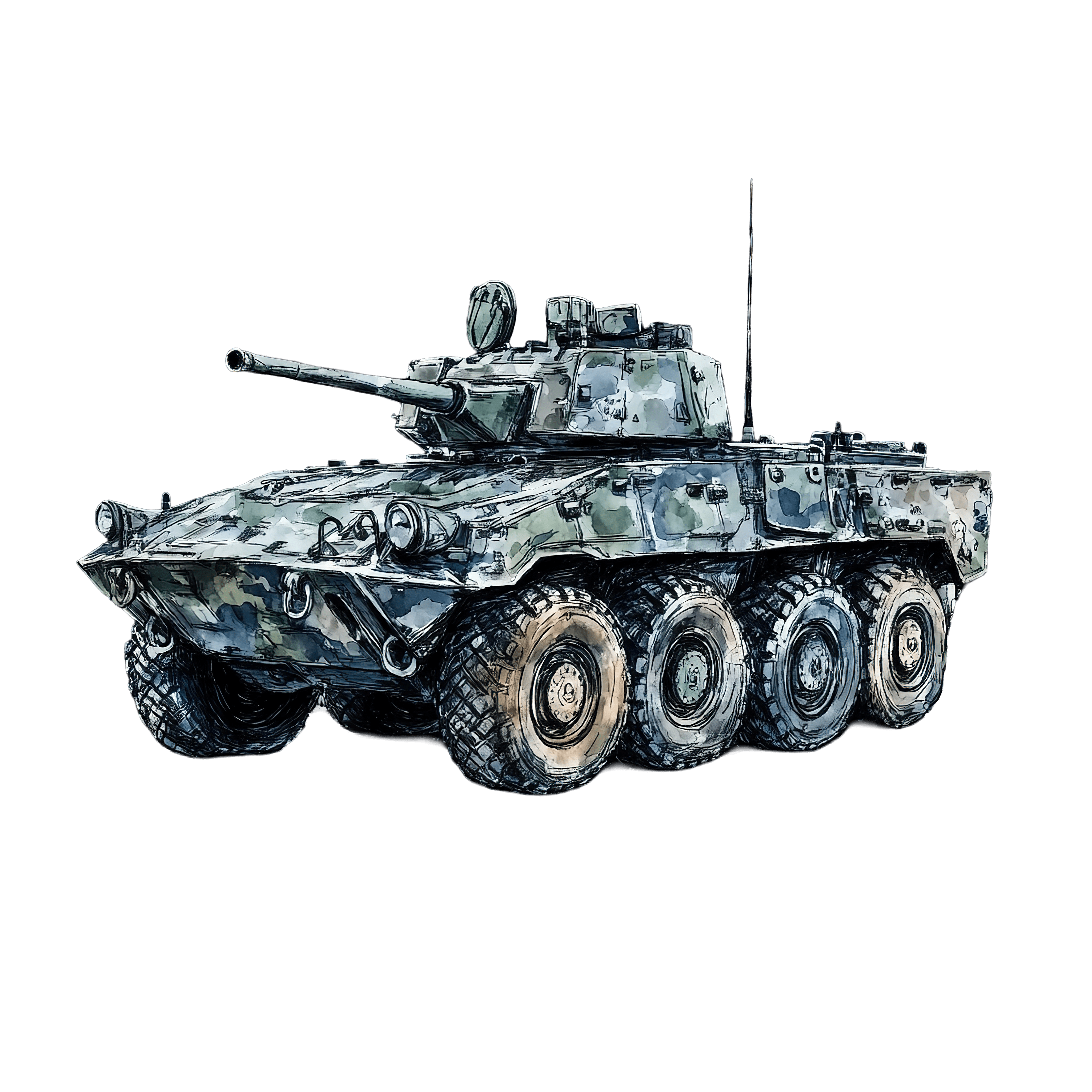 Camouflage Armored Military Vehicle with Large Wheels and Gun Turret Camouflage armored military vehicle with large wheels and gun turret.Download PNG ▼Download JPG ▼Related posts:Cartoon Donkey with Antlers on Black BackgroundGreen cucumber with realistic texture and shading vegetable clipart vector art foodDetailed Purple Butterfly Wings With Intricate PatternsWatercolor Quince Fruits with Leaves and Sliced HalvesWatercolor Pomegranate, Apple, and Blackberries with Leaves pomegranate apple fruit food clipartPine Cones with Branches and Needles on Transparent BackgroundWatercolor Orange with Green Leaves on Branch fruit clipart vector art citrusCartoon fox clipart character with large eyesBlue And White Butterfly With Detailed Wing PatternsColorful Shaved Ice in a Glass with StrawDetailed Butterfly Illustration With Orange And White WingsPink Raspberry Cocktail with Ice in a Glass