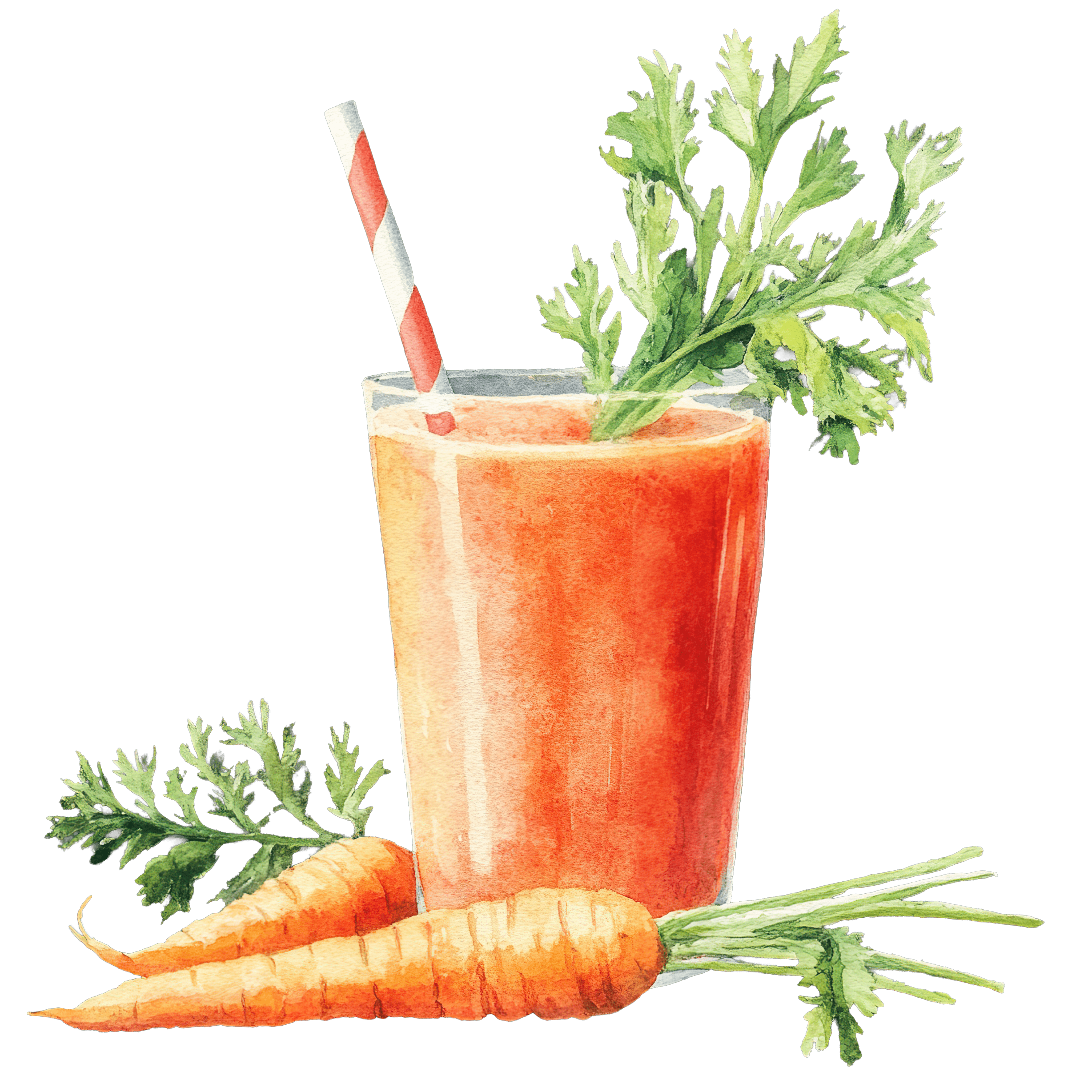 Carrot Juice Glass with Fresh Carrots and Straw Carrot juice in a glass with a straw and fresh carrots.Download PNG ▼Download JPG ▼Related posts:Cartoon Otter Holding Shell Clipart DesignCluster of Pink Yucca FlowersOrange Cat With Striped Tail Clipart IllustrationWhite ceramic mug filled with freshly brewed black coffeeVivid Orange Carrot Art with Fresh Green FoliageRed Poinsettia with Green Leaves for Christmas DecorVibrant Purple And Blue Butterfly With Sparkling DetailsWatercolor Illustration of Green Leaves and White BerriesDelicious Watercolor Cinnamon Roll Drizzled with IcingTomato Soup and Spoon in BowlDetailed Ginseng Root with Multiple BranchesButterfly With Detailed Wings And Vibrant Colors In