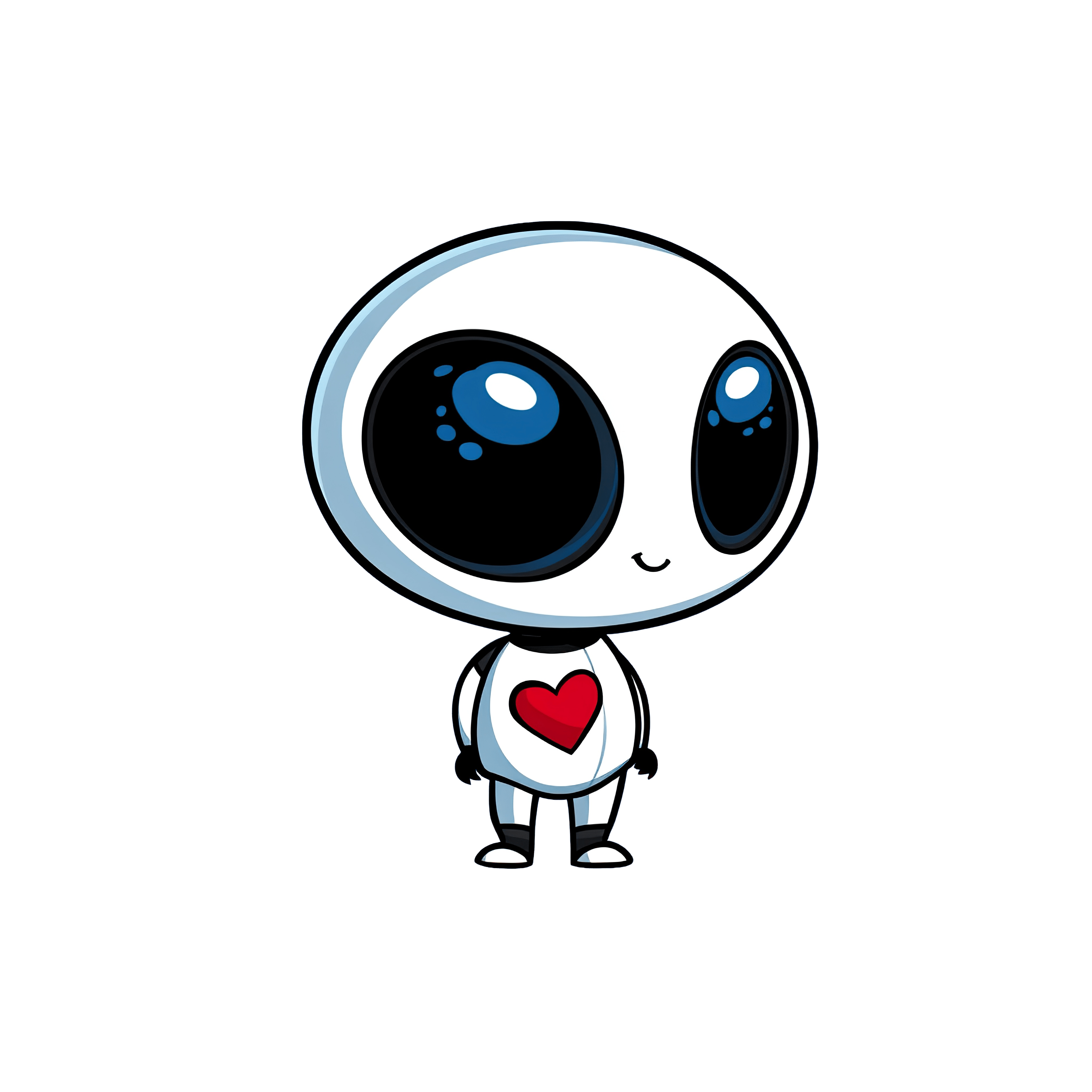 Cartoon alien character with large eyes and heart symbol Cartoon alien character features large eyes and a heart symbol.Download PNG ▼Download JPG ▼Related posts:Cluster of Brown Mushrooms with Detailed Gills fungi stems clipart vector artCartoon otter with colorful bubbles illustrationBundle of White Asparagus Stalks Tied with TwineWoman in Red Hat and Green Dress with Curly HairPink And Orange Butterfly With Detailed Wing PatternsPortrait of Woman in White Hat with Red RibbonCupcake with Cream Frosting and Cherry on TopIntricate Decorative Floral Mandala in Earthy and Teal TonesMilkshake with Whipped Cream and Red Berries caramel dessert beverage striped strawBright Orange Butterfly With Intricate Wings VectorWatercolor Illustration of Pink Bougainvillea Flowers with Green LeavesChristmas Tree and Presents Inside a Decorative Snow Globe