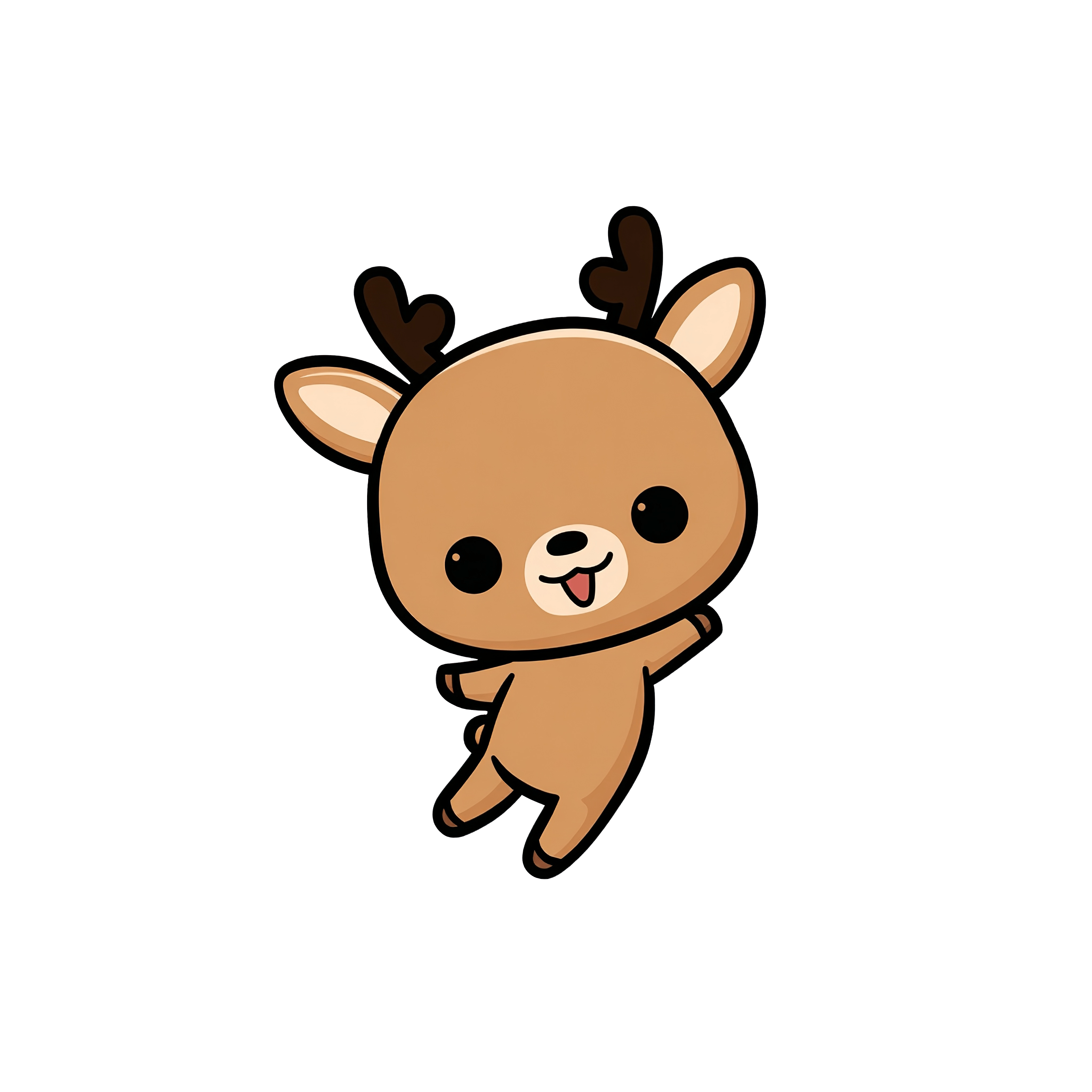 Illustration of a cartoon deer characterized by large eyes, prominent antlers, and a small mouth. The deer stands upright and is predominantly in shades of light brown with simple detailing. The style is clean and vector-based, conveying a minimalistic and graphic appearance. Suitable for use in children's content or nature-related designs.