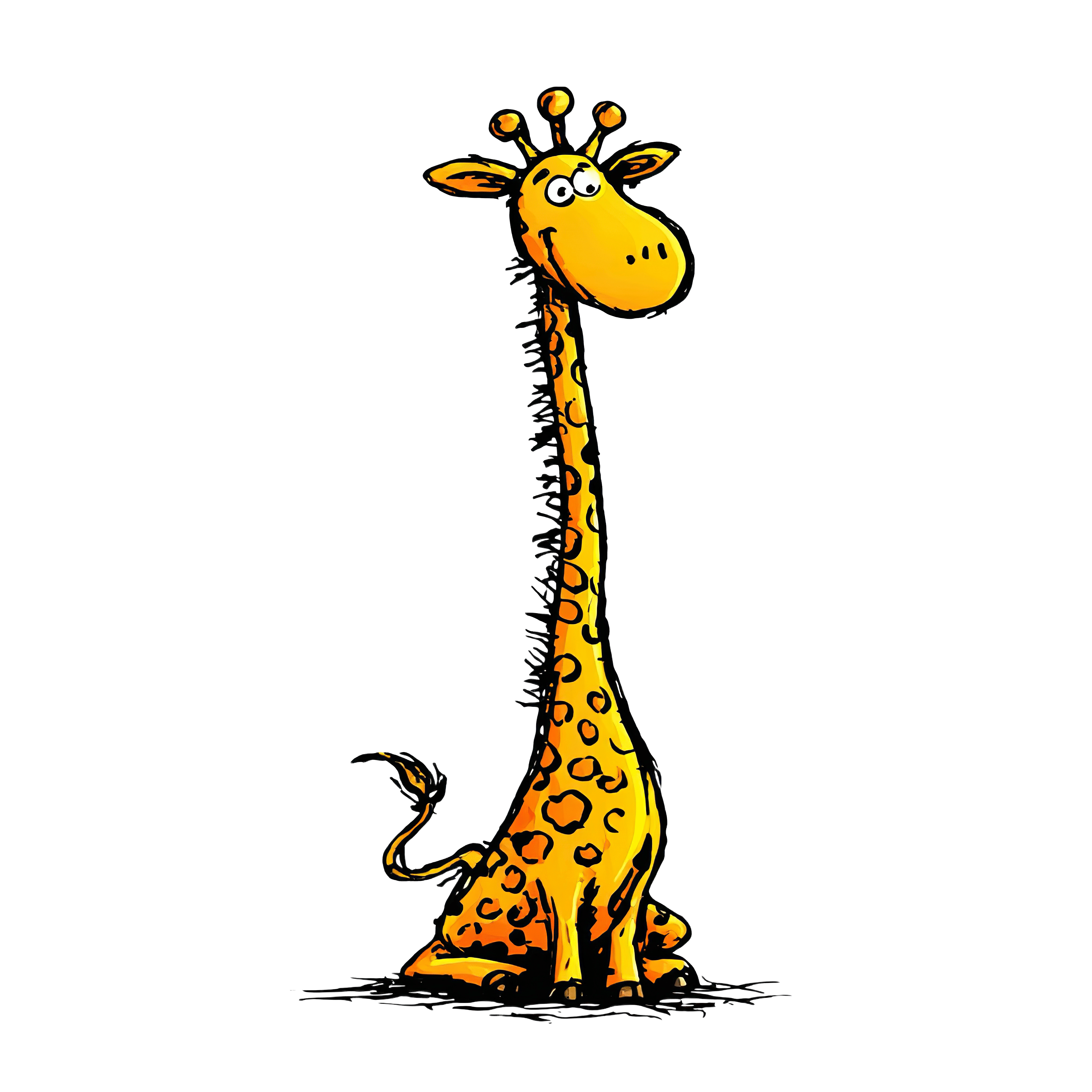 Illustration of a giraffe with a long neck and a pattern of spots. The giraffe is drawn in a cartoon style, featuring bright yellow and orange colors. The image focuses on the giraffe sitting, with its head slightly tilted. This clipart can be used for animal-themed designs, educational materials, or as a decorative illustration.