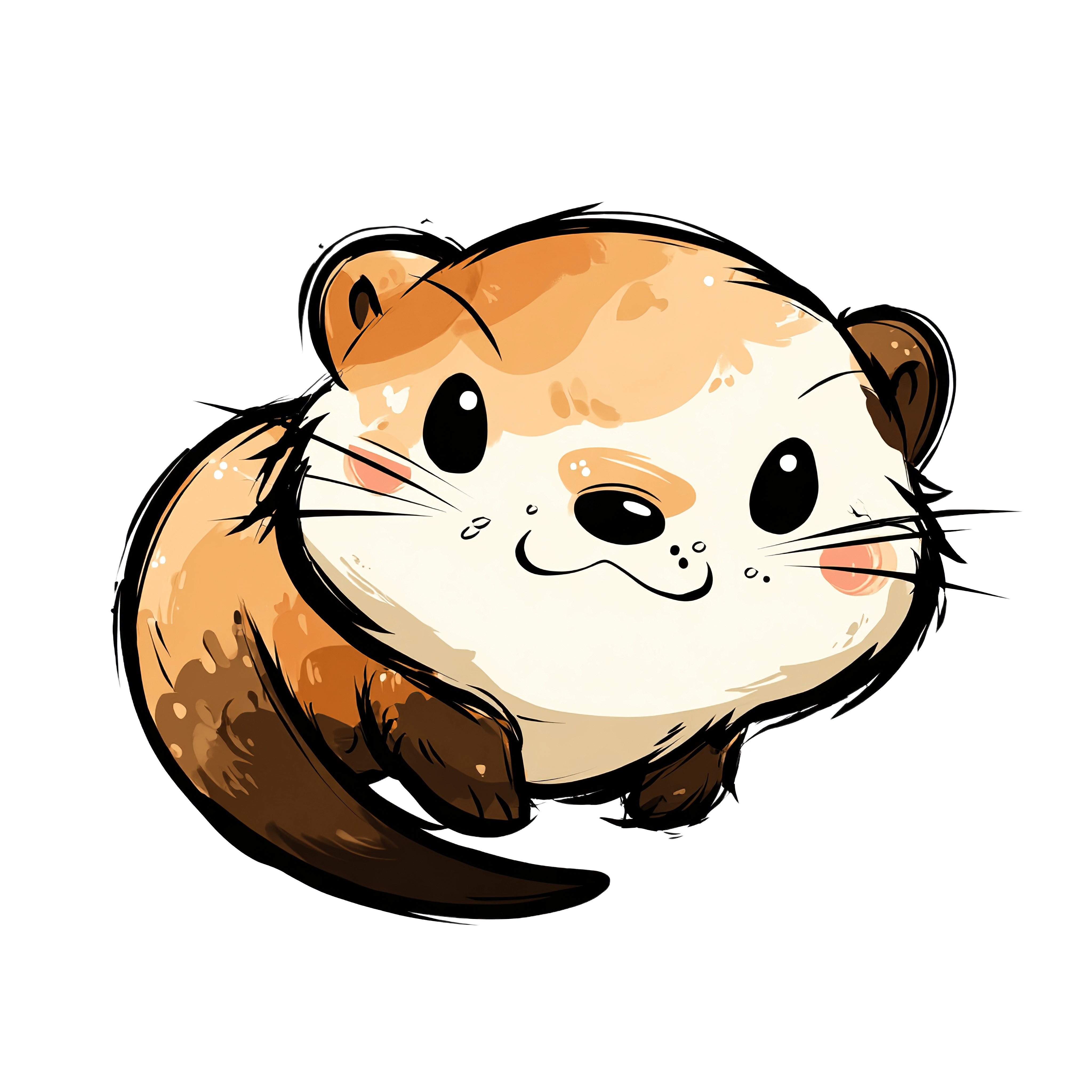 Cartoon otter illustration featuring light brown and cream fur, rounded body, and expressive, large black eyes. The otter’s ears are small, accentuating its round face, with detailed whiskers adding to the texture. Rendered in a simple, stylish manner, this digital image is perfect for designs or educational materials.