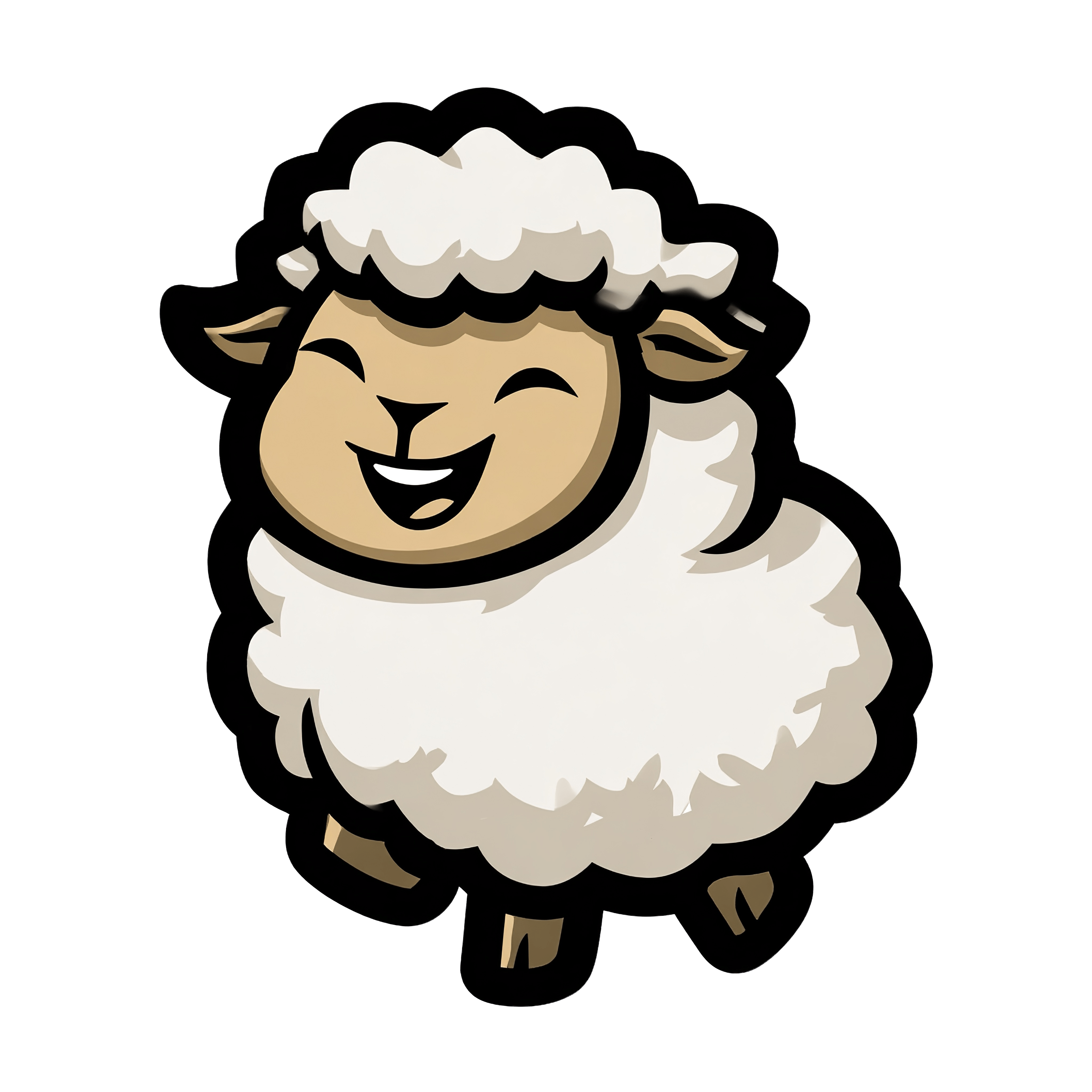 Cartoon sheep clipart featuring fluffy white wool and tan face details. The simple, bold lines define the sheep's body and facial features, showcasing a stylized animal design. Ideal for educational materials, children's projects, or graphic designs needing a playful animal touch.