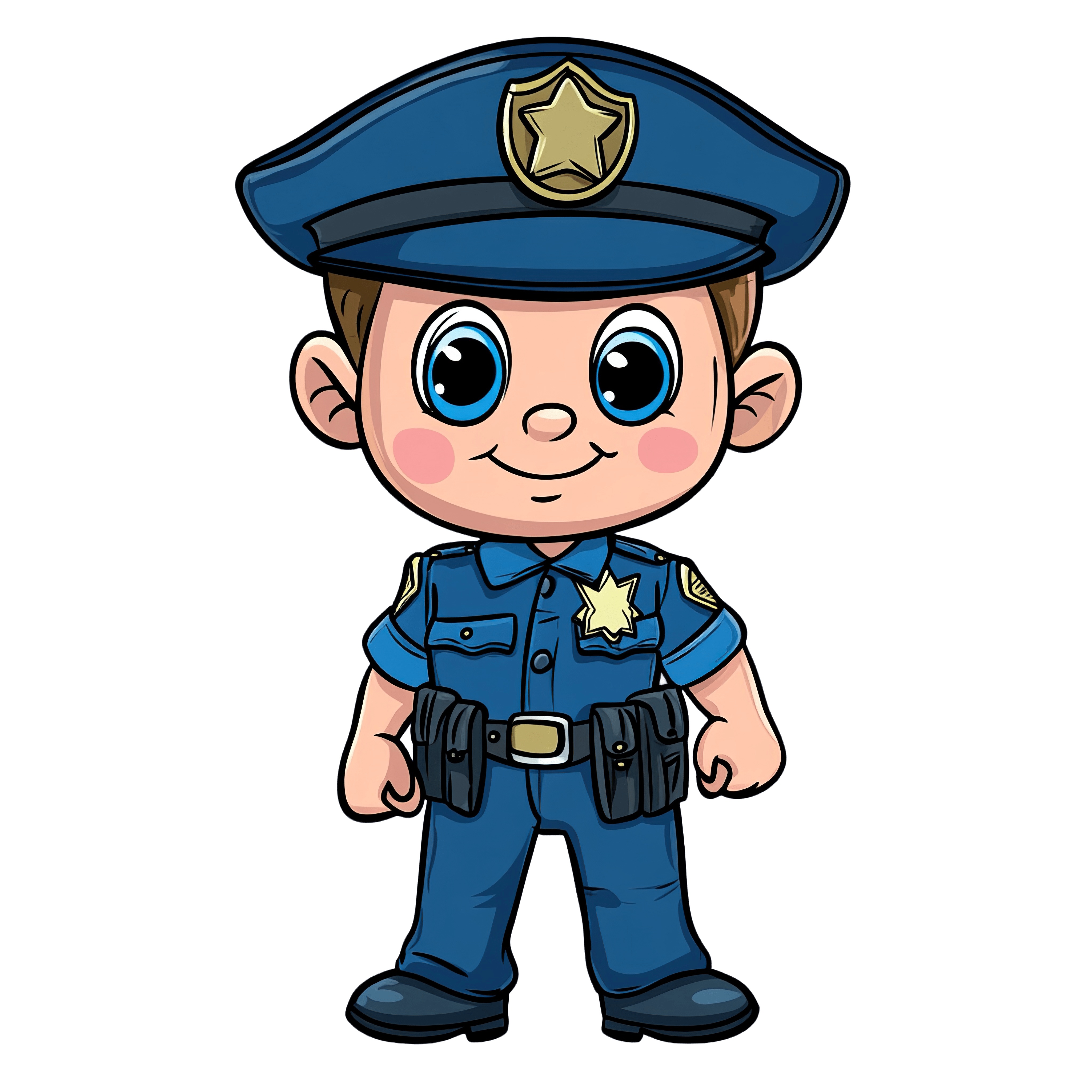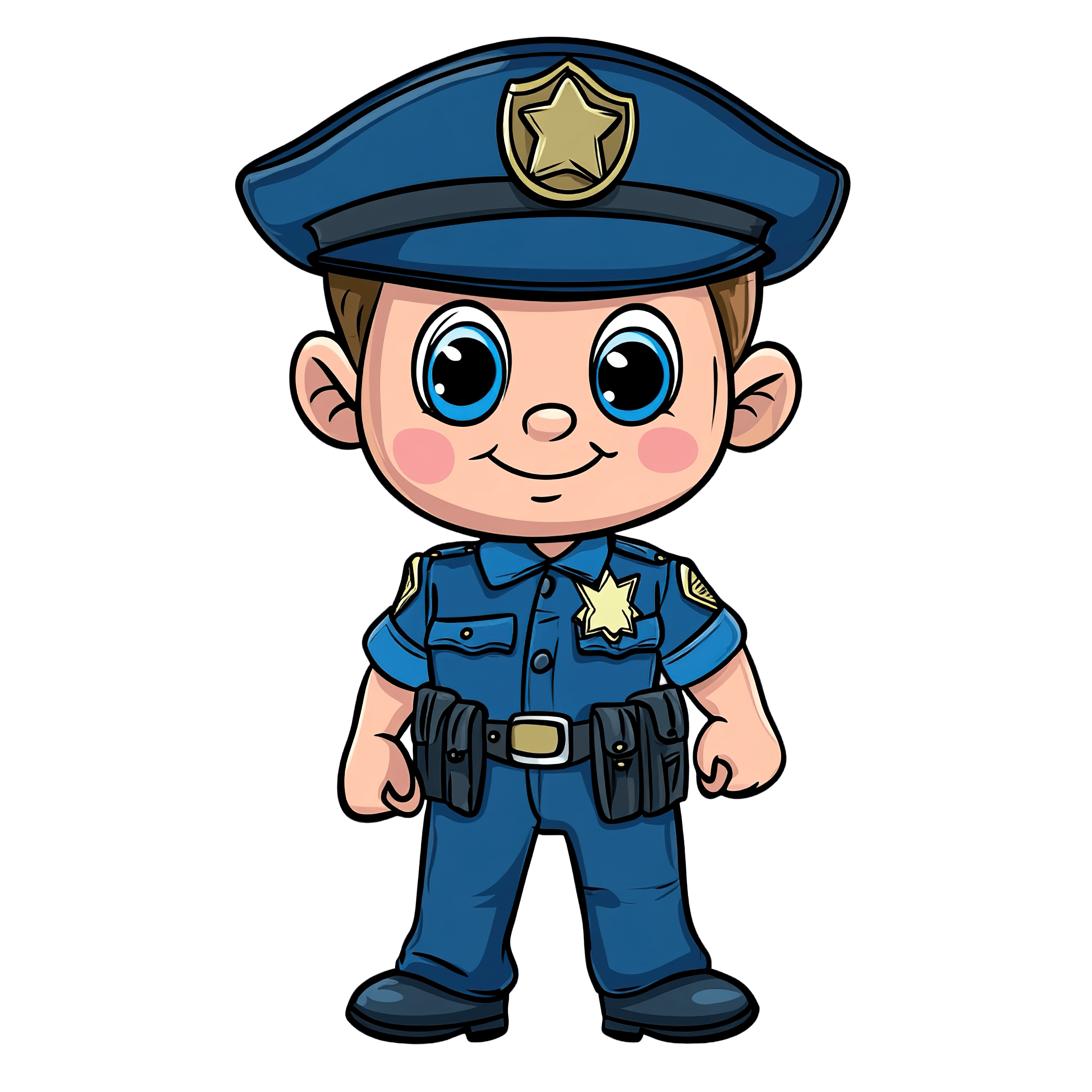 Charming Police Mascot in Blue Uniform for Security Art Cartoon police officer character wearing a blue uniform and badge.Download PNG ▼Download JPG ▼Related posts:Red and White Swirled Lollipop with Spiral DesignChristmas Candle with Holly Leaves and Red Berries IllustrationCartoon Detective Character Holding Magnifying Glass and Wearing HatCartoon Flamingo with Yellow and Pink FeathersElegant Teacup with Festive Christmas Poinsettia and Holly DesignWoman with Retro Hairstyle and Red Bow Tie IllustrationHand-drawn Moose Clipart with Red AntlersWatercolor Illustration of Yellow Crocus Flowers with Green LeavesPink Cherry Blossom Branch with Multiple Blooming FlowersFestive Christmas Tree Ornaments with Intricate Golden PatternsColorful Butterfly With Striking Orange And Purple WingRed logging truck illustration with timber load on a black background