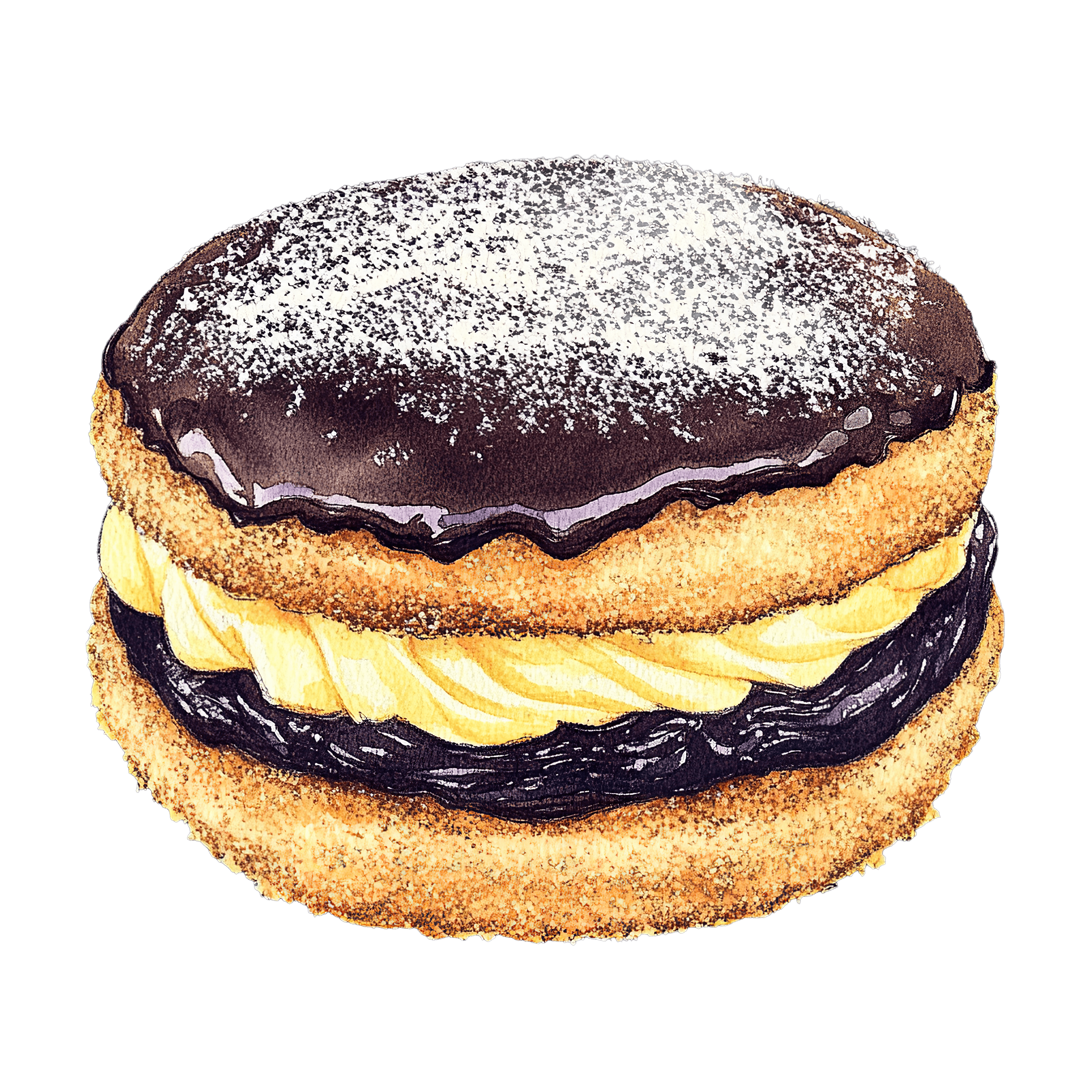 Chocolate Cream-Filled Pastry with Powdered Sugar Topping dessert food sweet baked treat Chocolate cream-filled pastry topped with powdered sugar and layered filling.Download PNG ▼Download JPG ▼Related posts:Elegant Woman in Victorian Red Dress and Decorative HatCosmos Flowers with Green Leaves on Black BackgroundGlass of Mint Tea with Fresh Leaves and LemonChocolate Cake Slice with Cherries on Top dessert food sweet frosting clipartWatercolor Pink Carnation with Green Leaves on BlackDetailed Butterfly Illustration With Vibrant Multicolored WingsGolden Brown Coconut Macaroons Dessert Sweet Baked Food ClipartWatercolor Collard Greens with Detailed Leaf Texture leaves green vegetable plant clipartCartoon Hedgehog in Hooded Cloak ClipartVibrant Blue Butterfly Showcasing Intricate Wing PatternsBright Sun Illustration with Fiery Orange and Yellow RaysStack of Polka Dot Covered Books in Watercolor Style