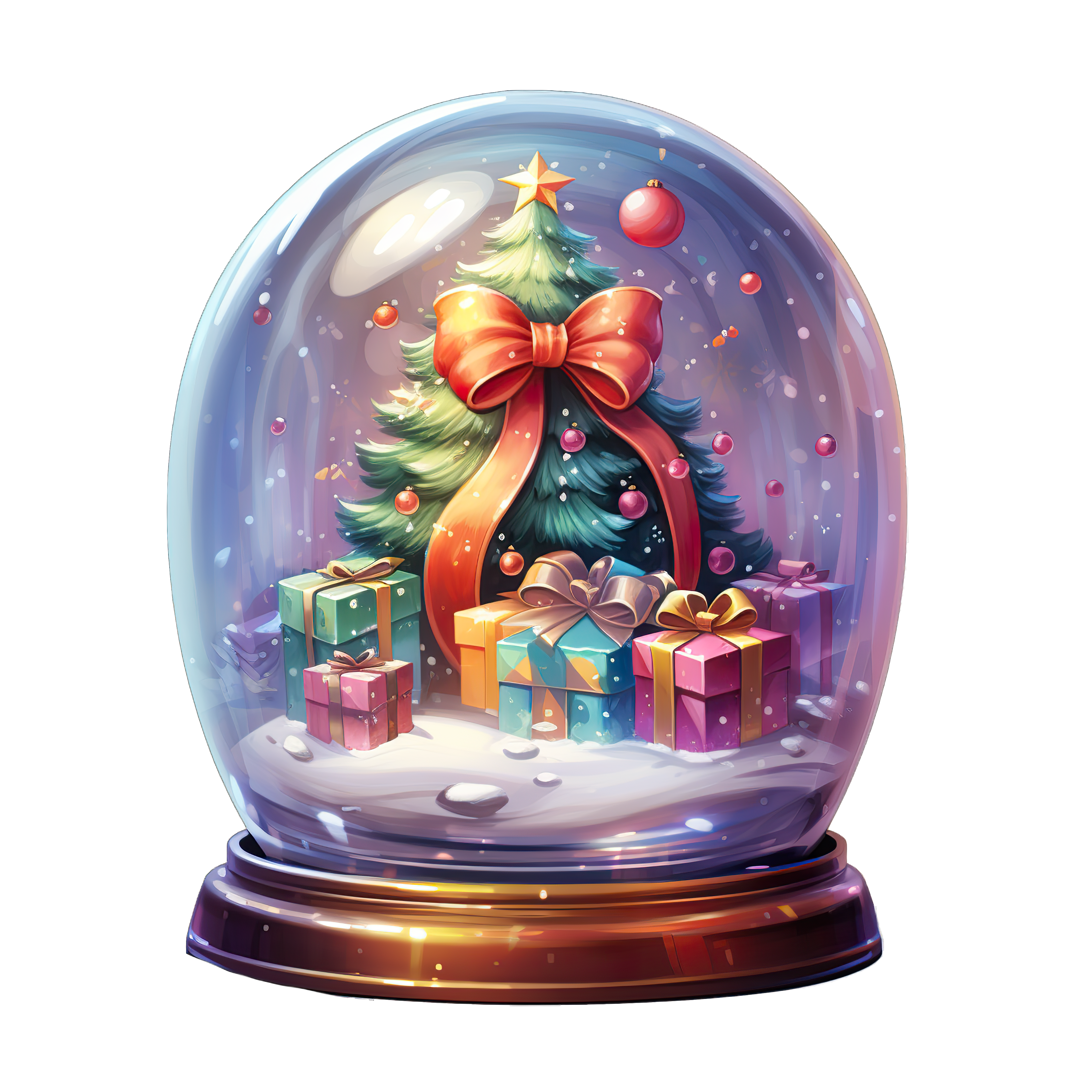 Christmas Tree and Presents Inside a Decorative Snow Globe Christmas tree with a red ribbon and gifts inside a snow globe.Download PNG ▼Download JPG ▼Related posts:Highland Cow Wearing Red Striped Santa Hat IllustrationCute squirrel clipart holding an acornVibrant Butterfly Featuring Multicolored Rainbow WingsWatercolor striped pumpkin with green and yellow huesFresh Blackcurrant Berries with Vibrant Green LeavesWatercolor Mangosteen Fruit with Leaves and Halves clipart tropical purple vector artFamily Portrait Illustration with Winter Clothing and Bright HatsDetailed Illustration Of A Blue Butterfly With PatternedDetailed white camellia flower with green leaves on dark backgroundVibrant Red Cherries and Green Leaves Botanical ArtDetailed Watercolor Illustration of an Open Old BookTwo Green Pea Pods with Detailed Texture on Black