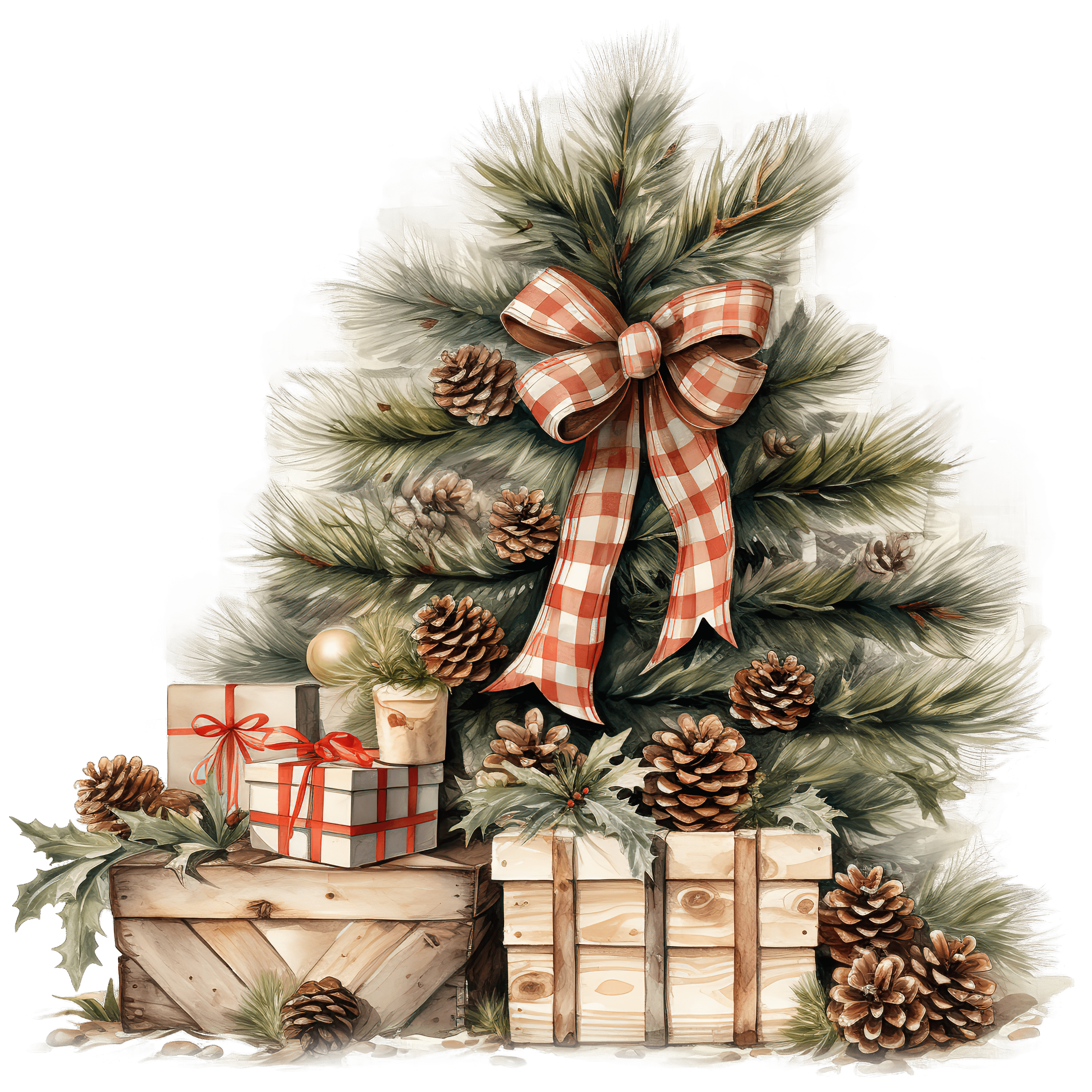 Christmas Tree with Pinecones and Festive Gift Boxes Christmas tree adorned with pinecones and a checkered bow beside gift boxes.Download PNG ▼Download JPG ▼Related posts:All-Terrain Four-Wheeler with Muddy Wheels and Rugged DesignLion Dressed as a Wizard Holding a WandGeometric Heart Shape with Colorful Triangular PatternsYellow cartoon groundhog illustrationEspresso Martini Cocktail in a Clear Glass drink frothy beverage alcohol vectorVintage Yellow Bus Illustration with Large Front HeadlightsVictorian Woman with Red Hat and Holiday Dress ClipartVibrant Butterfly With Purple And Orange Wings SpreadTwo White and Yellow Daffodil Flowers on Black BackgroundFestive Owl Surrounded by a Christmas Wreath with BerriesWatermelon Juice in Glass with Lime Wedge drink beverage red green clipartWatercolor Pears with Leaves and Sliced Half in Center