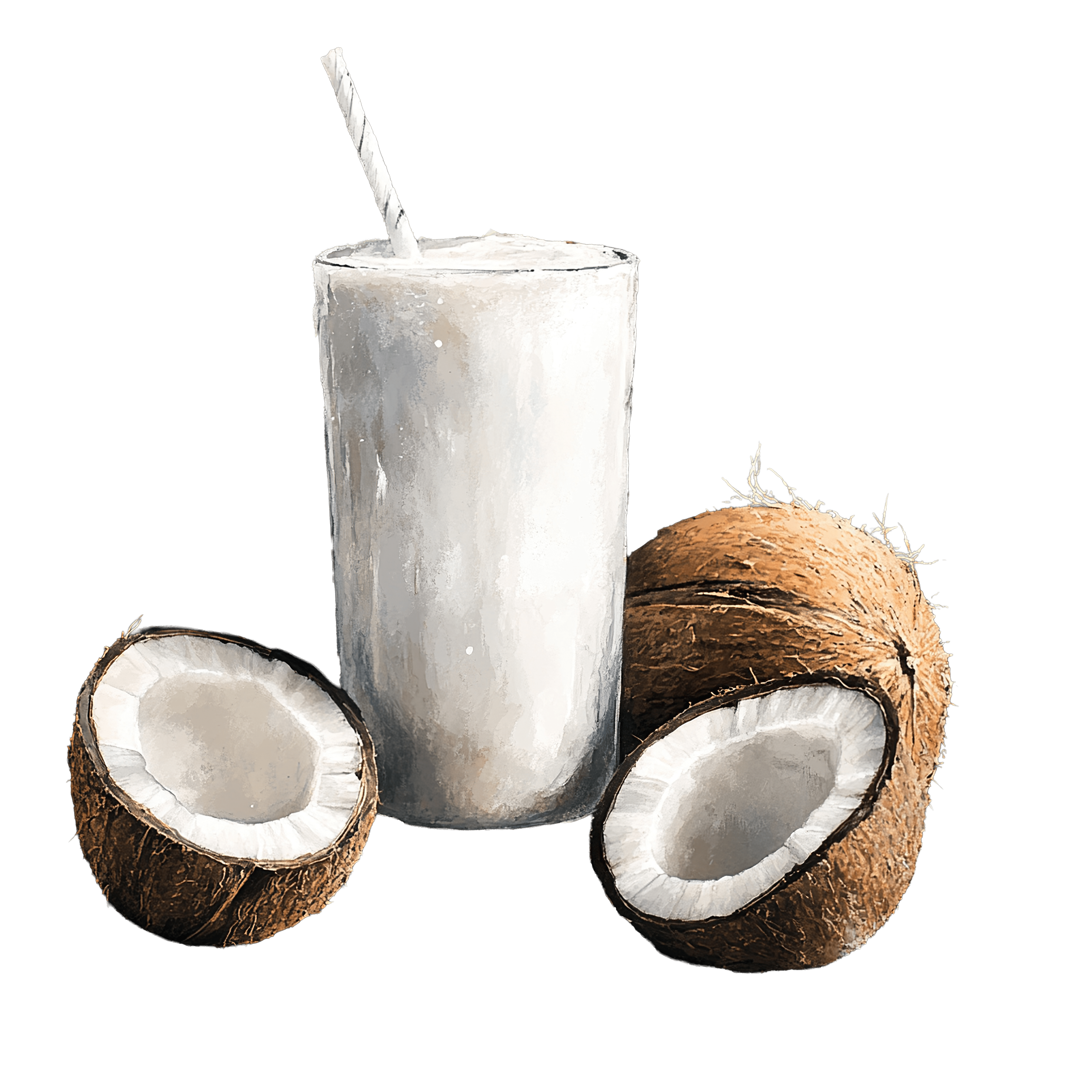 Coconut Drink with Whole and Halved Coconuts beverage tropical glass straw brown Coconut drink in a glass with whole and halved coconuts nearby.Download PNG ▼Download JPG ▼Related posts:Watercolor Illustration of a Detailed Autumn Oak LeafRainbow Gradient Apple with Leaf Clipart Design watercolor fruit vector art colorfulMulticolor Gradient Heart Shape Composed of Small Particle DotsWatercolor Red Apple with Stem and Highlights fruit clipart vector art printableBrown owl wearing a red scarfIntricately Decorated Iced Gingerbread Cookie with Floral PatternsWatercolor Sunrise Over Mountain Silhouette with Radiant SunraysGreen Apple Juice in Glass with Fresh Apple SlicesCartoon Cat in Pumpkin HoodieVintage Scooter With Wire BasketGreen Dump Truck Illustration with Detailed Design ElementsBlack Sedan Car with Modern Design on Transparent Background