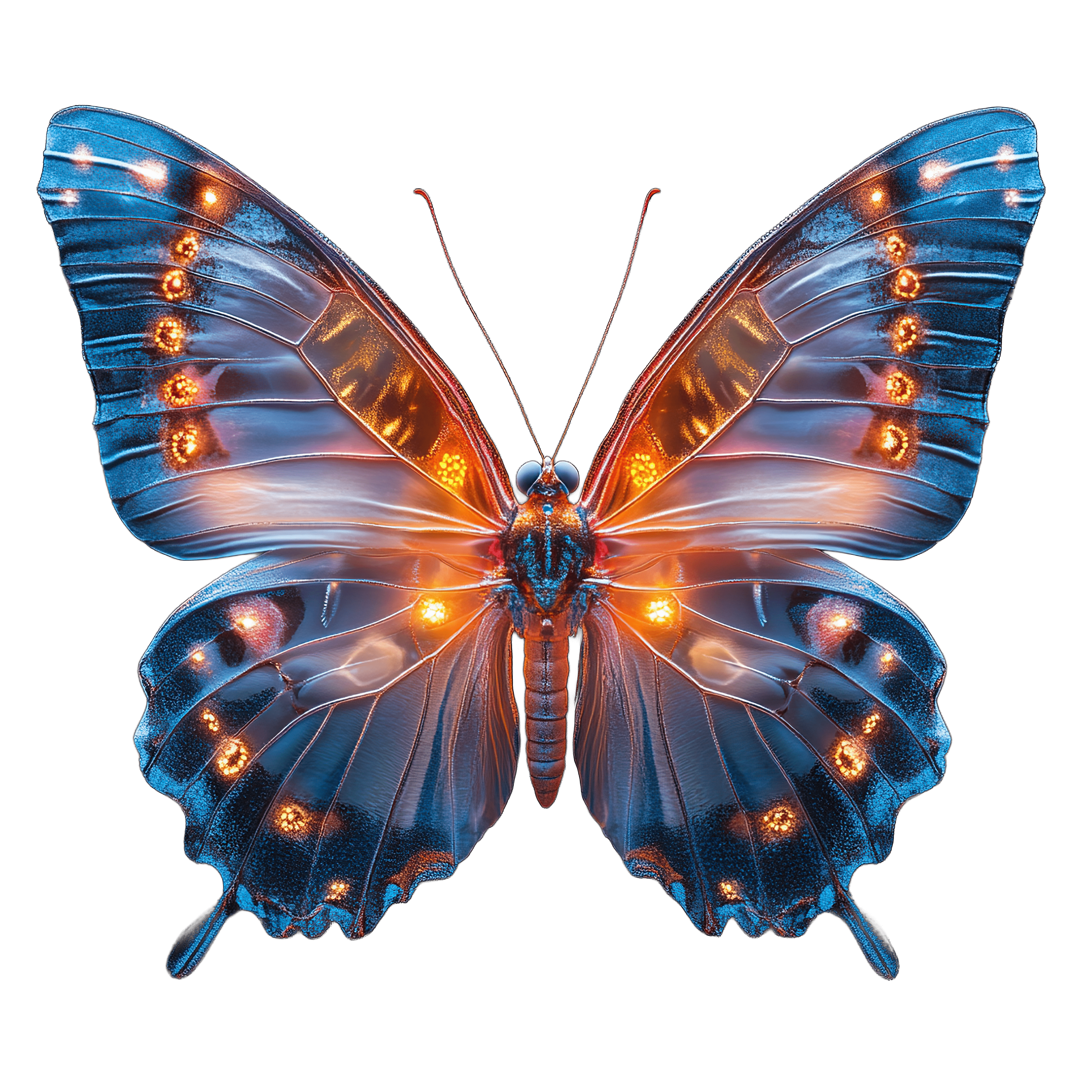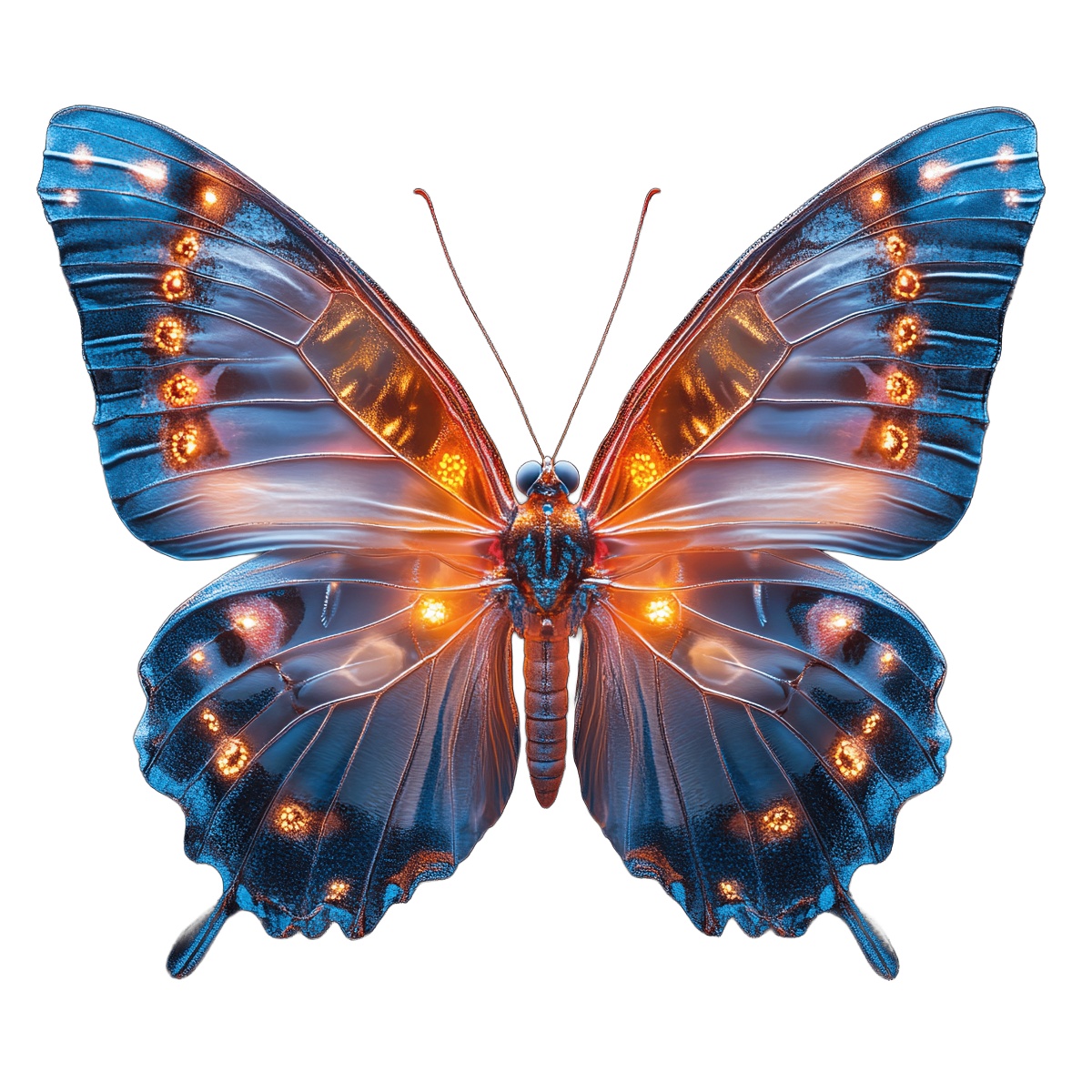 Colorful Blue Orange Butterfly Showcasing Intricate Wing Patterns Butterfly with intricate blue and orange wing patterns on black background.Download PNG ▼Download JPG ▼Related posts:Cartoon Donkey with Antlers on Black BackgroundRed And Black Butterfly With Detailed Clipart Png X56Sweet Caramel Pudding on Ceramic Plate in Blue Vector ArtCaramel Drizzled Cheesecake with Whipped Cream and HazelnutsCartoon Unicorn with Pink Mane and Blue Eyes in MotionTwo Purple Cherries Hanging from a Branch with LeavesBranch with Green Leaves and Vibrant Red BerriesCartoon Superhero Character in Blue and Yellow CostumeWatercolor Fruit Tarts with Berries and Mint LeavesButterfly With Vibrant Orange And Black Wing PatternsCartoon Sun with Smiling Face and Fluffy Clouds IllustrationVintage Styled Woman in Red Blouse with Retro Hairstyle