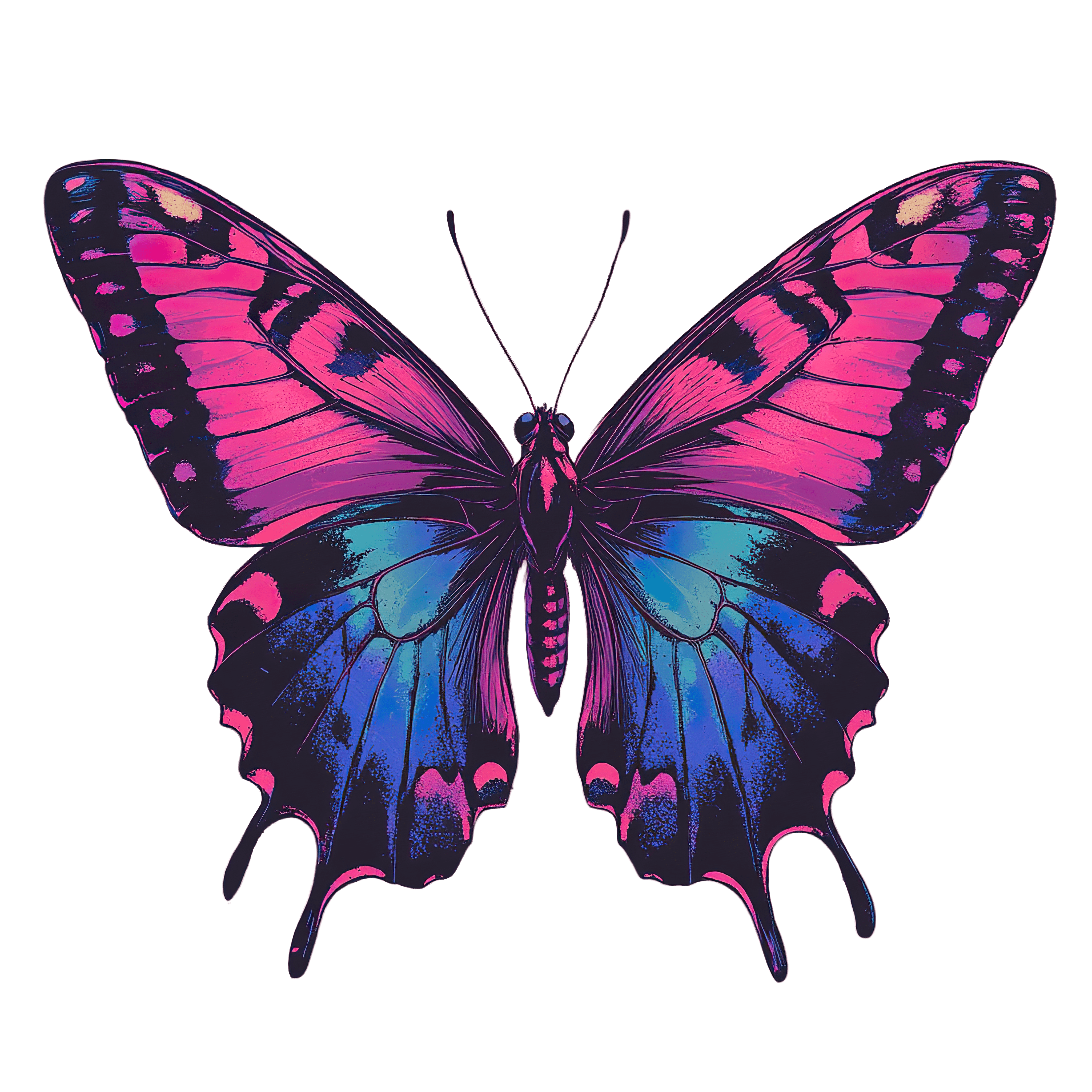 Colorful Butterfly Art With Stunning Pink And Blue Butterfly features striking pink and blue wings in detailed clipart.Download PNG ▼Download JPG ▼Related posts:Raspberry Cobbler in Ceramic Dish with Mint LeavesDecorative Lantern with Candle and Red Bow for Festive SeasonCream Puff with Whipped Topping and Smoke EffectYellow Zucchini with Green Leaves in Detailed ClipartTrio of Colorful Bell Peppers in Watercolor StyleWooden and Ceramic Bowls with Mashed Potatoes and SpoonColorful Giraffe Clipart with GlassesWatercolor Illustration of Purple and Yellow Pansy FlowerReindeer and Snowman with Red Scarves ClipartWhite lion cub interacting with blue butterfly clipartMonkey in Santa costume clipartSpiky Orange Fruits with Green Leaves on Branch