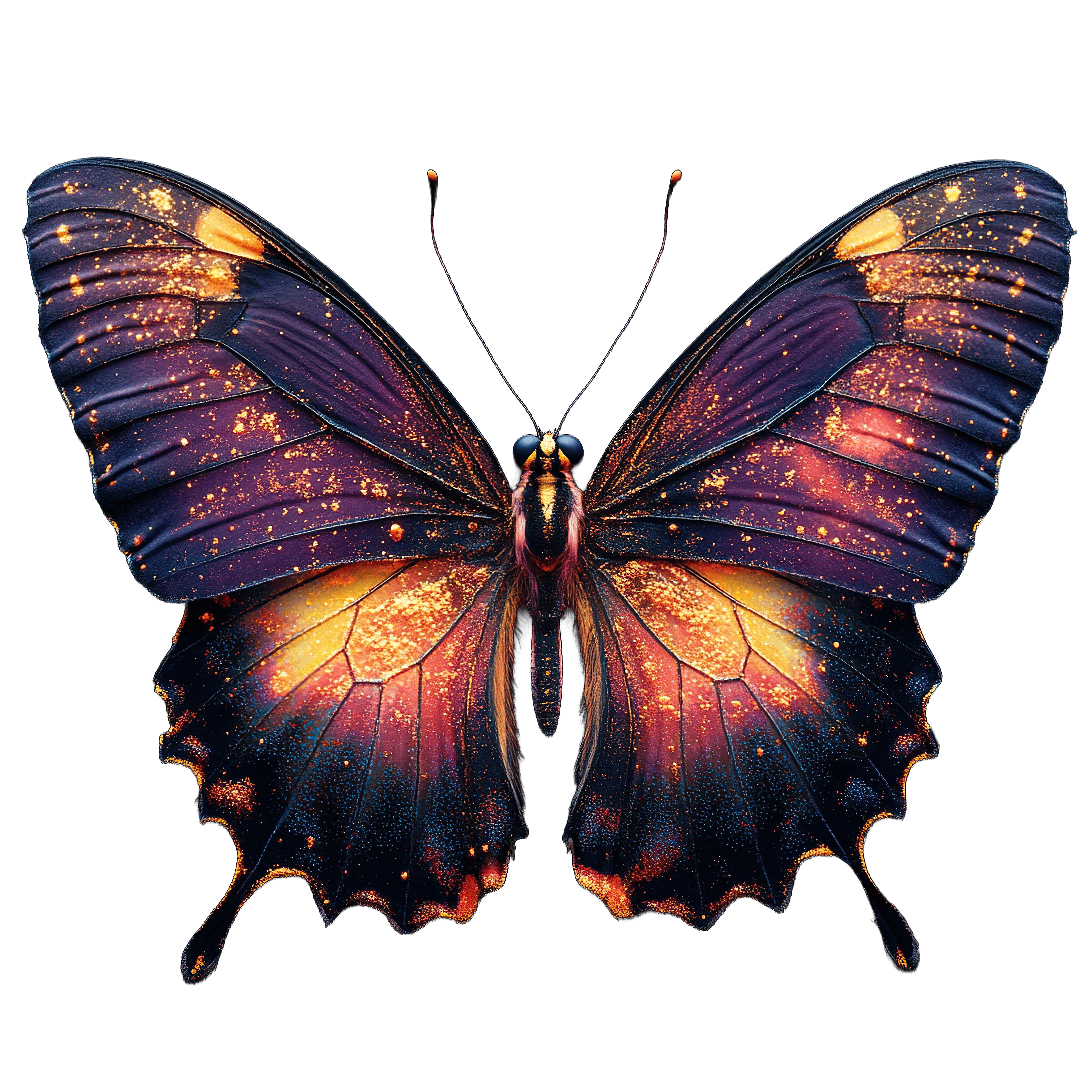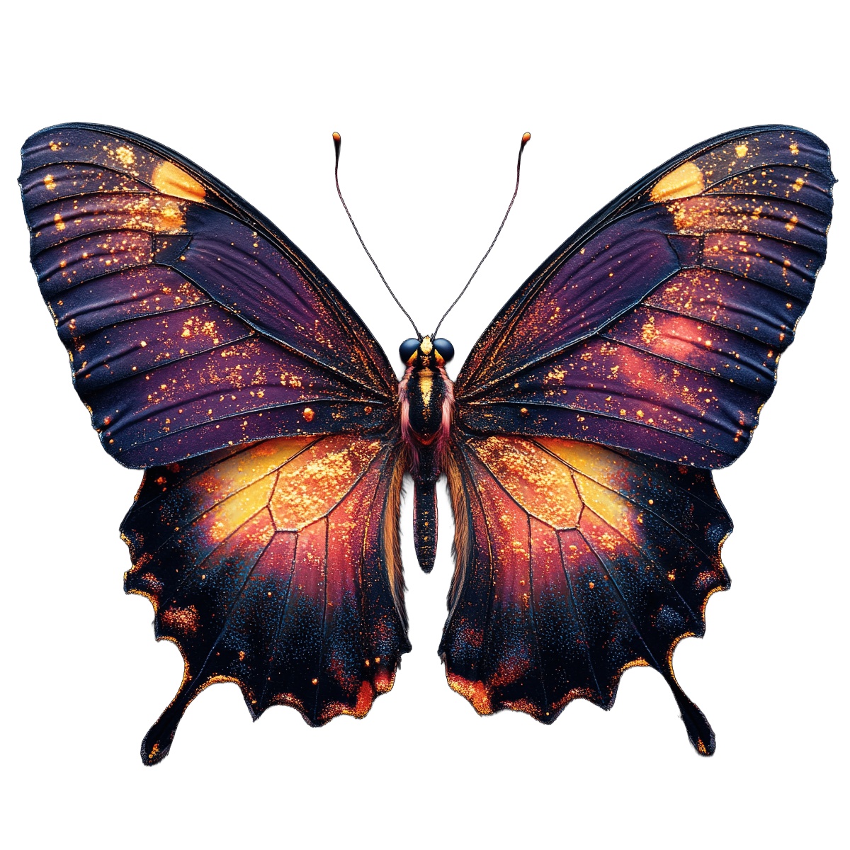 Colorful Butterfly With Cosmic Patterned Wings In Flight Butterfly features vibrant cosmic patterns on its wings against black.Download PNG ▼Download JPG ▼Related posts:Glass of Iced Apple Tea with Fresh Mint and ApplesCartoon mouse driving a yellow toy carGolden Crispy Cheese Balls Snack Art VectorBrown Squirrel Holding an Acorn ClipartVibrant Butterfly With Gradient Purple And Orange WingsDetailed Watercolor Illustration of a White Lily Flower with LeavesPapaya with Seeds in Detailed Clipart StyleCoffee Mug Filled with Rich Dark BrewLion With Full Mane Black Background Clipart PngTwo Watermelon Slushies with Slices and Straws drinks red cups beverage clipartGlass of Orange Juice with Fresh Oranges and LeavesSilhouettes of Birds Flying Across an Orange Sky at Sunset