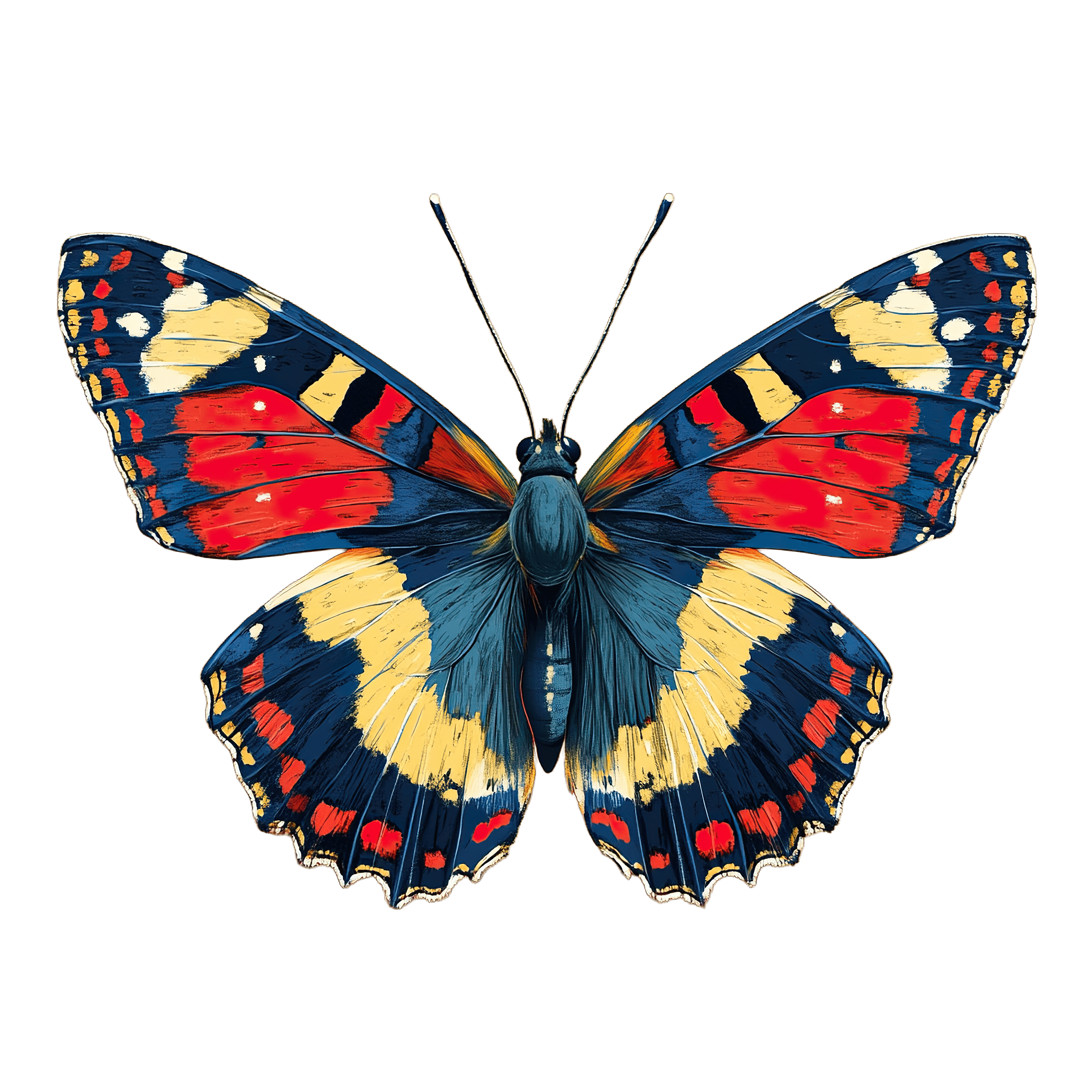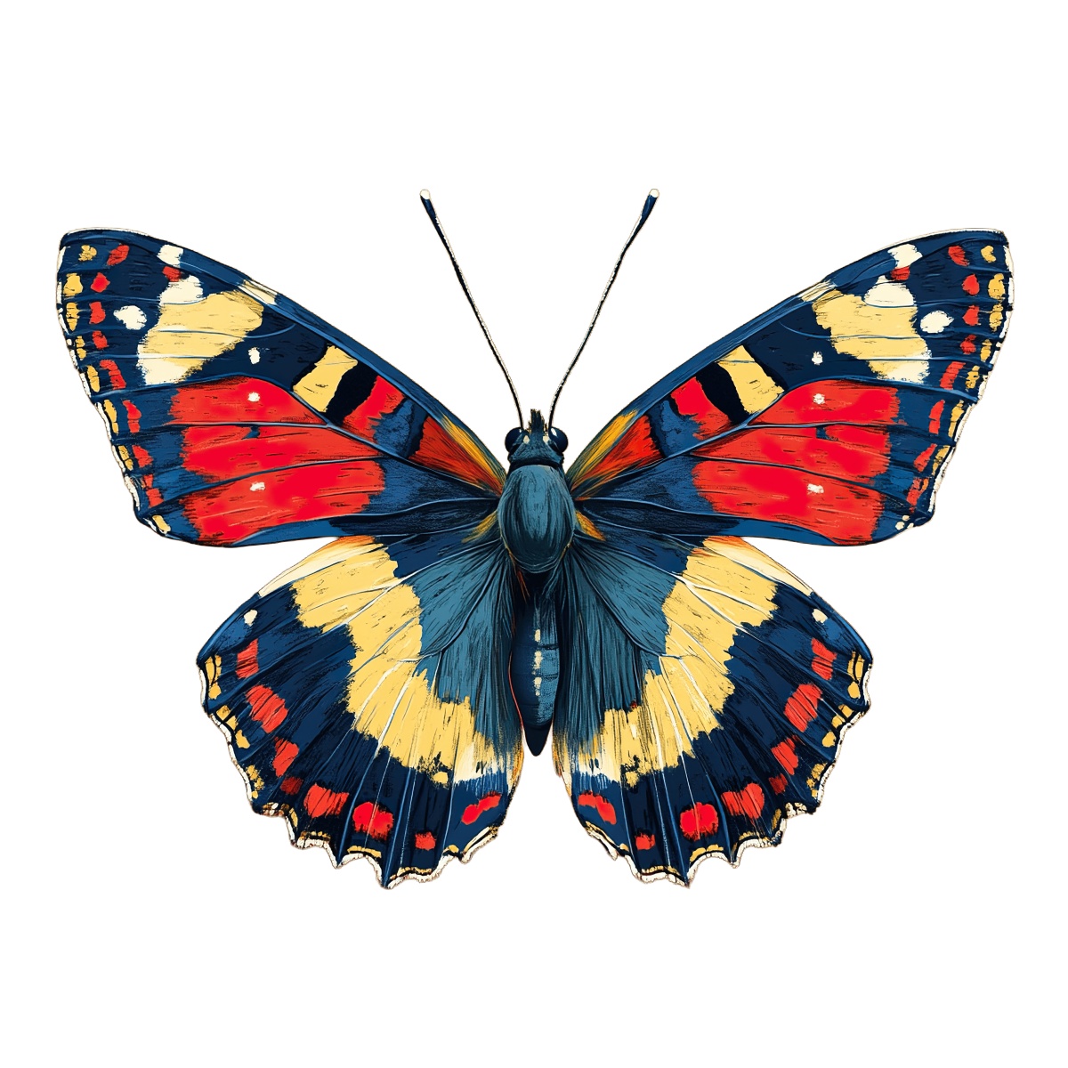 Colorful Butterfly With Eye Catching Wing Patterns Butterfly illustration featuring red, yellow, and blue wings on black.Download PNG ▼Download JPG ▼Related posts:Detailed Illustration Of A Blue And Purple ButterflyYellow Cartoon Submarine Windows ClipartCartoon giraffe with long neck in clipart styleBlackberry Cheesecake Slice with Berry ToppingRed and Green Christmas Ornament with Elegant Design DetailsWhite lion cub interacting with blue butterfly clipartGlass of Iced Tea with Lemon Slice and StrawQuokka on Skateboard with Blue CapLayered Dessert in Glass with Whipped Cream ToppingBlack Swallowtail Butterfly With Distinctive Orange And WhiteTop View of Coffee Cup with Rich FoamGeometric Heart Shape with Colorful Triangular Patterns