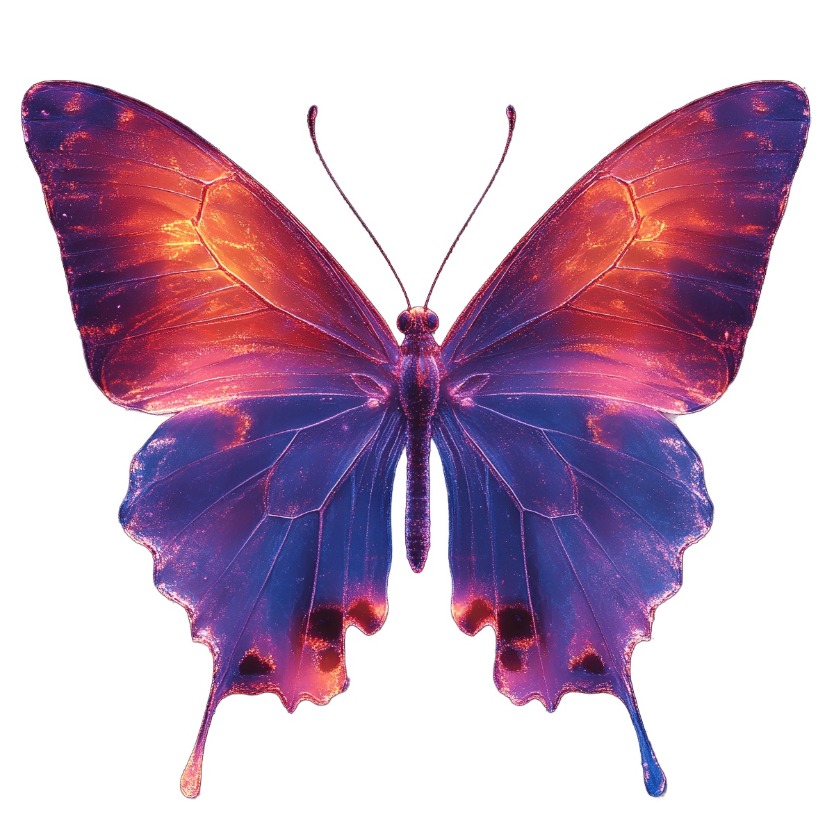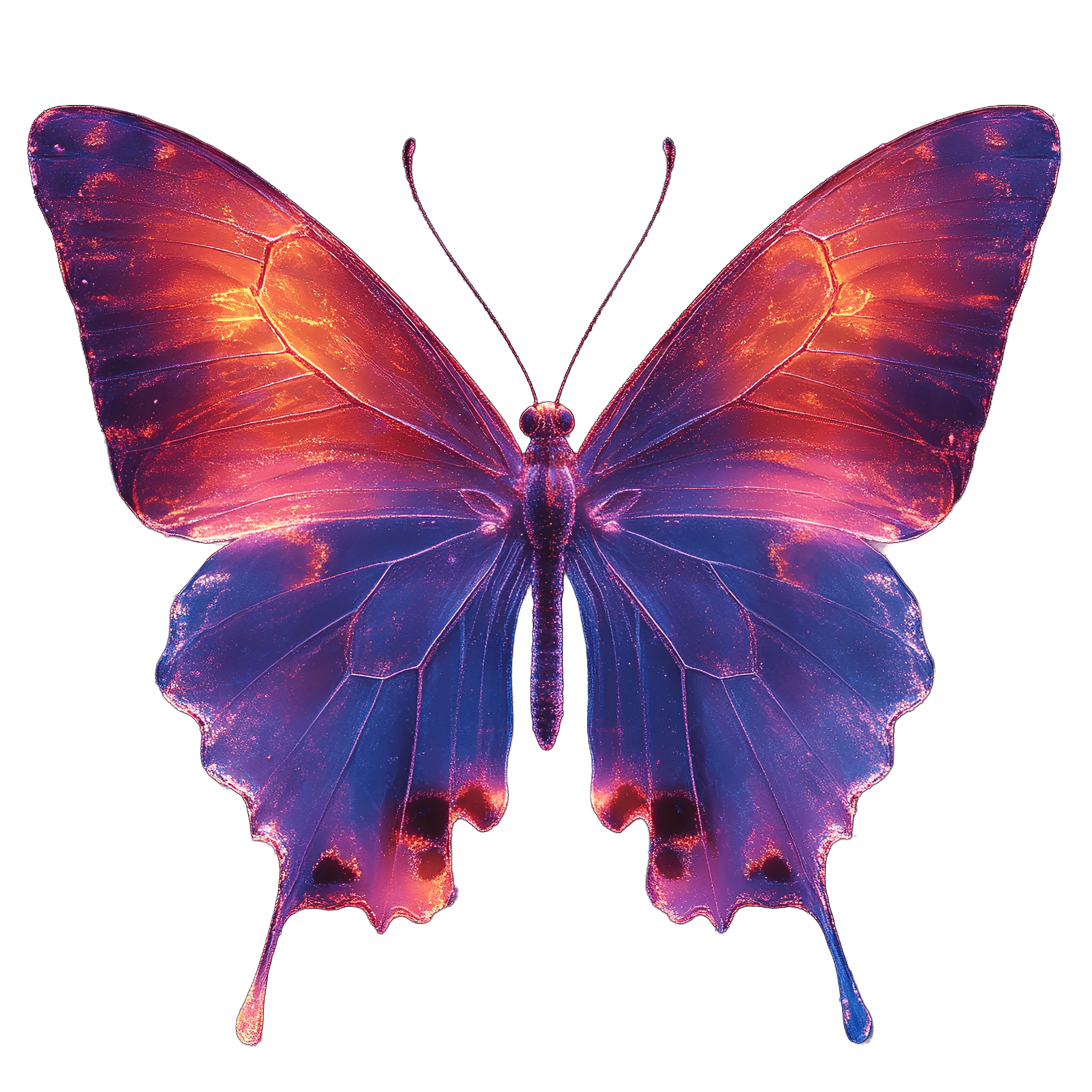 Colorful Butterfly With Gradient Wings In Flight Butterfly with colorful gradient wings displayed against a black backdrop.Download PNG ▼Download JPG ▼Related posts:Vibrant Pink And Orange Butterfly Illustration In FlightPavlova Dessert with Berries and Whipped Cream LayersDetailed Illustration of a Magnolia Blossom on Black BackgroundCluster of Ripe Mulberries with Green LeavesCartoon Police Officer in Uniform with Badge and HatIce Skates Decorated with Floral Arrangements in Watercolor StyleDetailed Watercolor Croissant with Layered TextureIntricate Christmas Snowflake Cookie with Red and Teal IcingLayered Berry Cake with Fresh Fruit Toppings berries strawberries blueberries dessert foodWatercolor Bunch of Ripe Yellow Bananas clipart fruit vector art printable foodWatercolor art of Fresh Whole and Sliced Turmeric RootCartoon mermaid with blue hair and fish tail