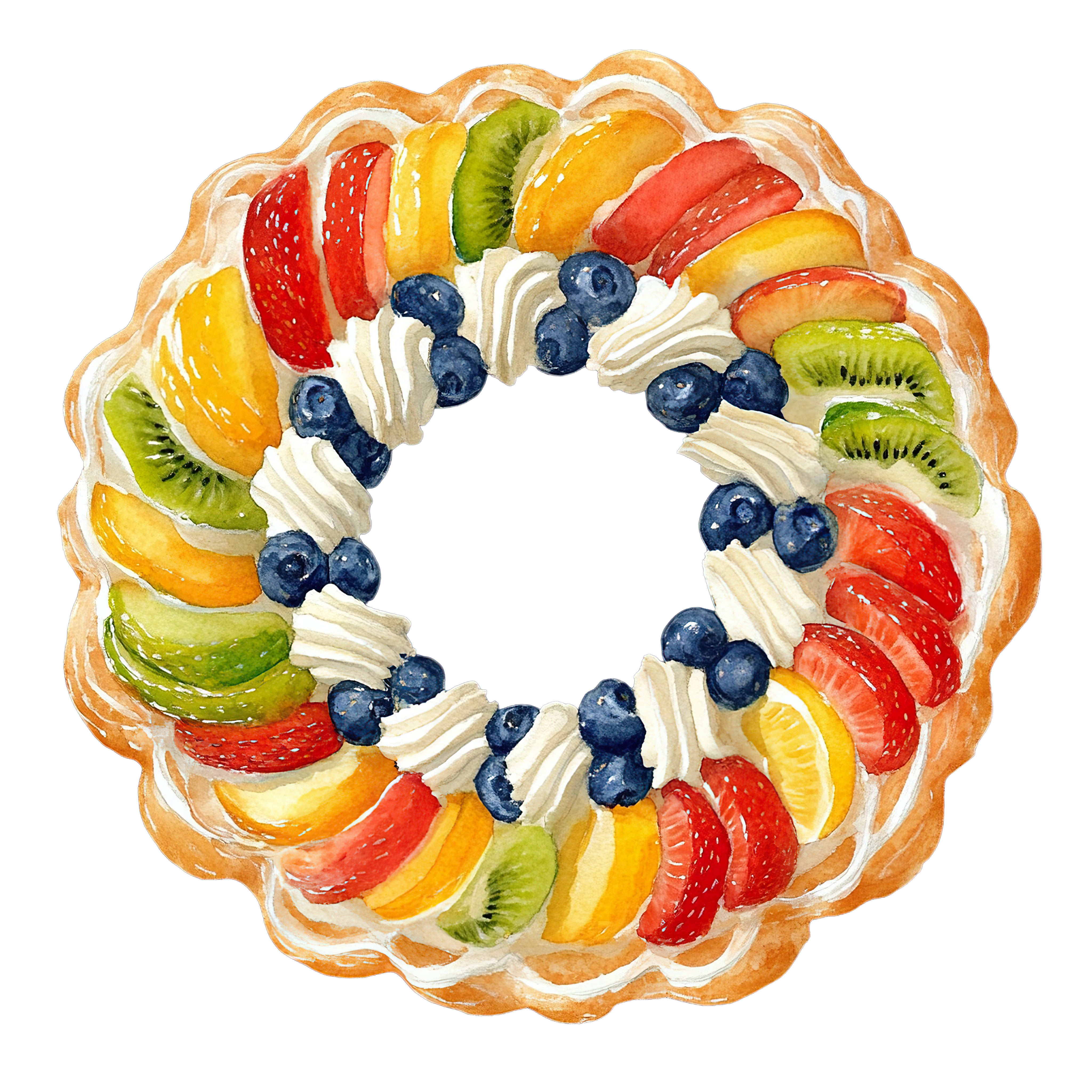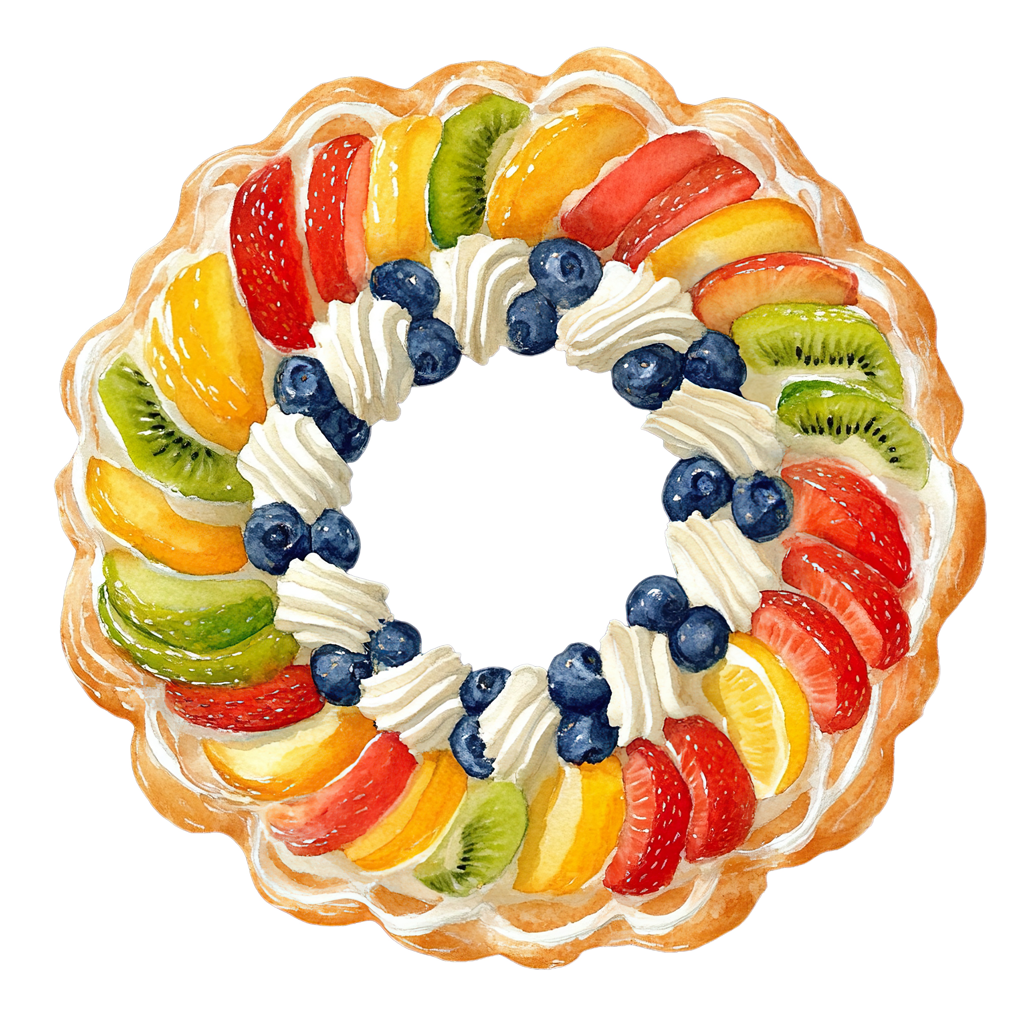 Colorful Fruit Tart with Whipped Cream Topping dessert kiwi strawberries blueberries pastry Fruit tart topped with assorted fruits and whipped creamDownload PNG ▼Download JPG ▼Related posts:Hand-drawn cassava roots with detailed texture and shadingIntricate Decorative Mandala Design with Ornate PatternsDetailed Purple Butterfly With Elegant Wing PatternsHerbal Tea with Lemon, Ginger, and Mint LeavesRed Poinsettia Flower with Green Leaves in Watercolor StyleMulticolored bird clipart with a vibrant tail designVibrant Mango with Water Droplets on Surface fruit colorful clipart vector artYellow Lily Flowers with Detailed Petals botanical vibrant nature clipart vector artGingerbread Man with Christmas Hat and Holly DecorationsWoman with Festive Headscarf and Earrings in Holiday ThemeIndustrial forklift carrying wooden pallets with dark backgroundCinnamon Roll with Purple Icing Drizzle on Top