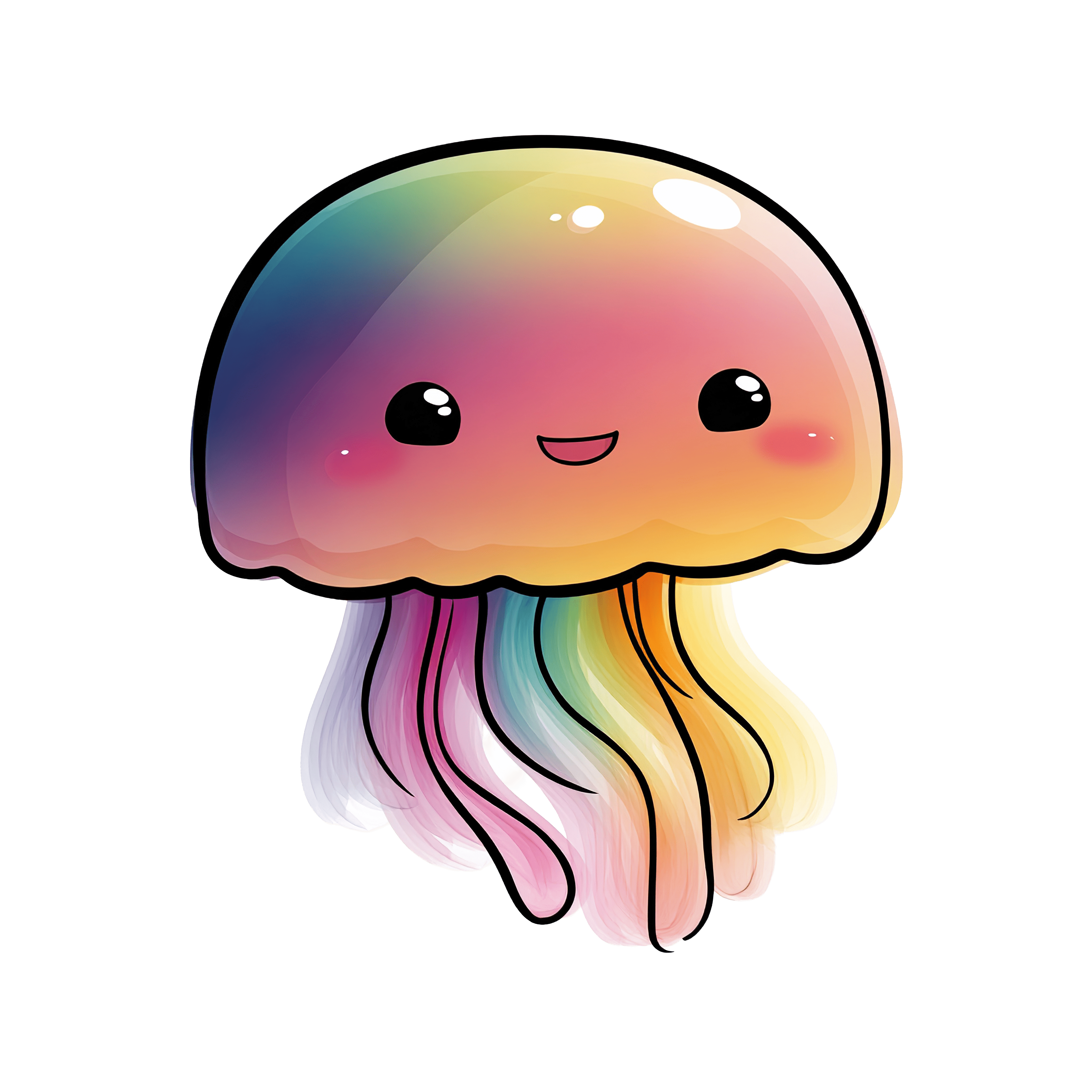 A vibrant gradient-themed jellyfish illustration featuring a round body and tentacles in multicolored hues. The jellyfish is depicted with a simplistic design, typical of cartoon style, suitable for use in educational materials or as a decorative element. The absence of a background makes it ideal for versatile applications such as digital projects, printables, or graphic designs focused on marine themes.
