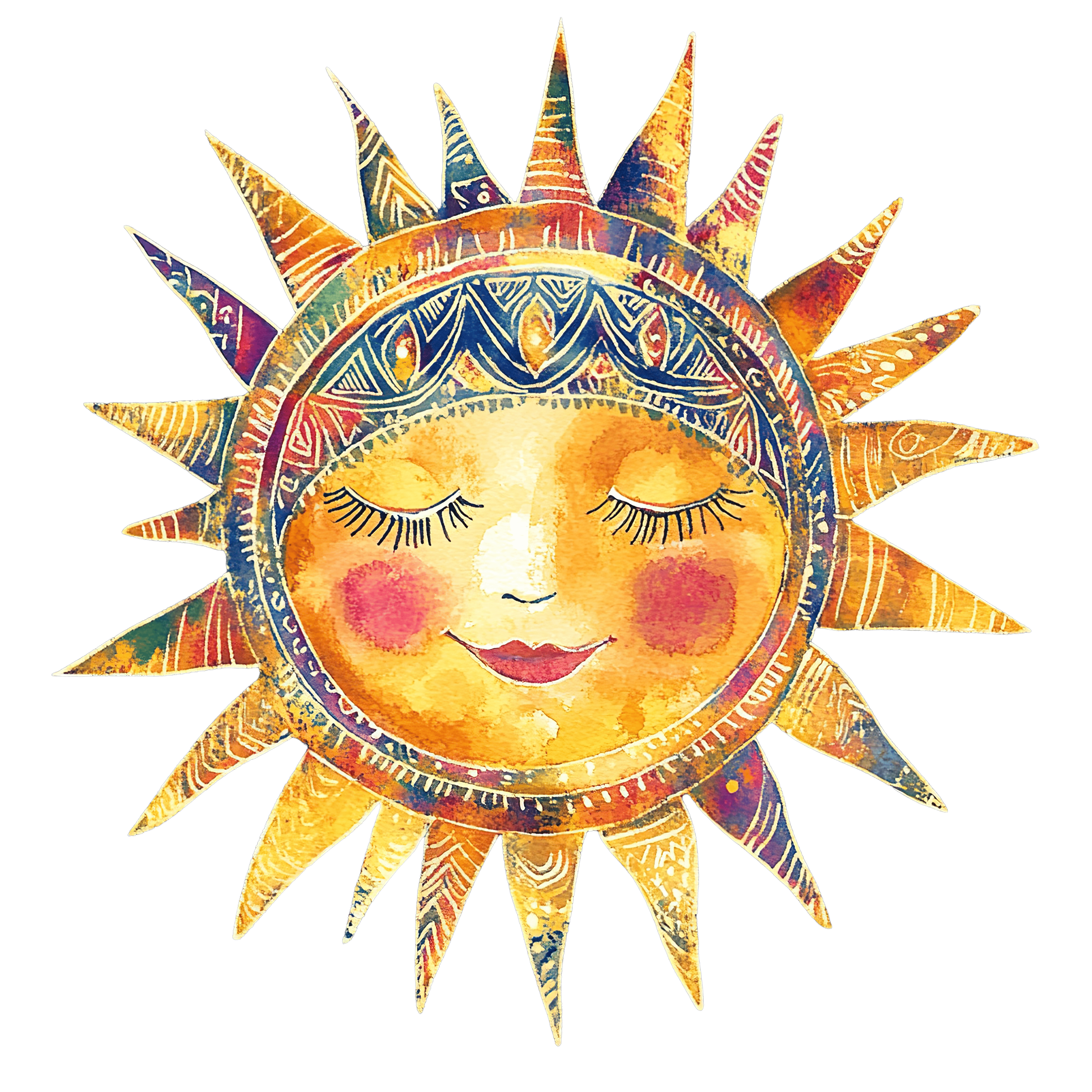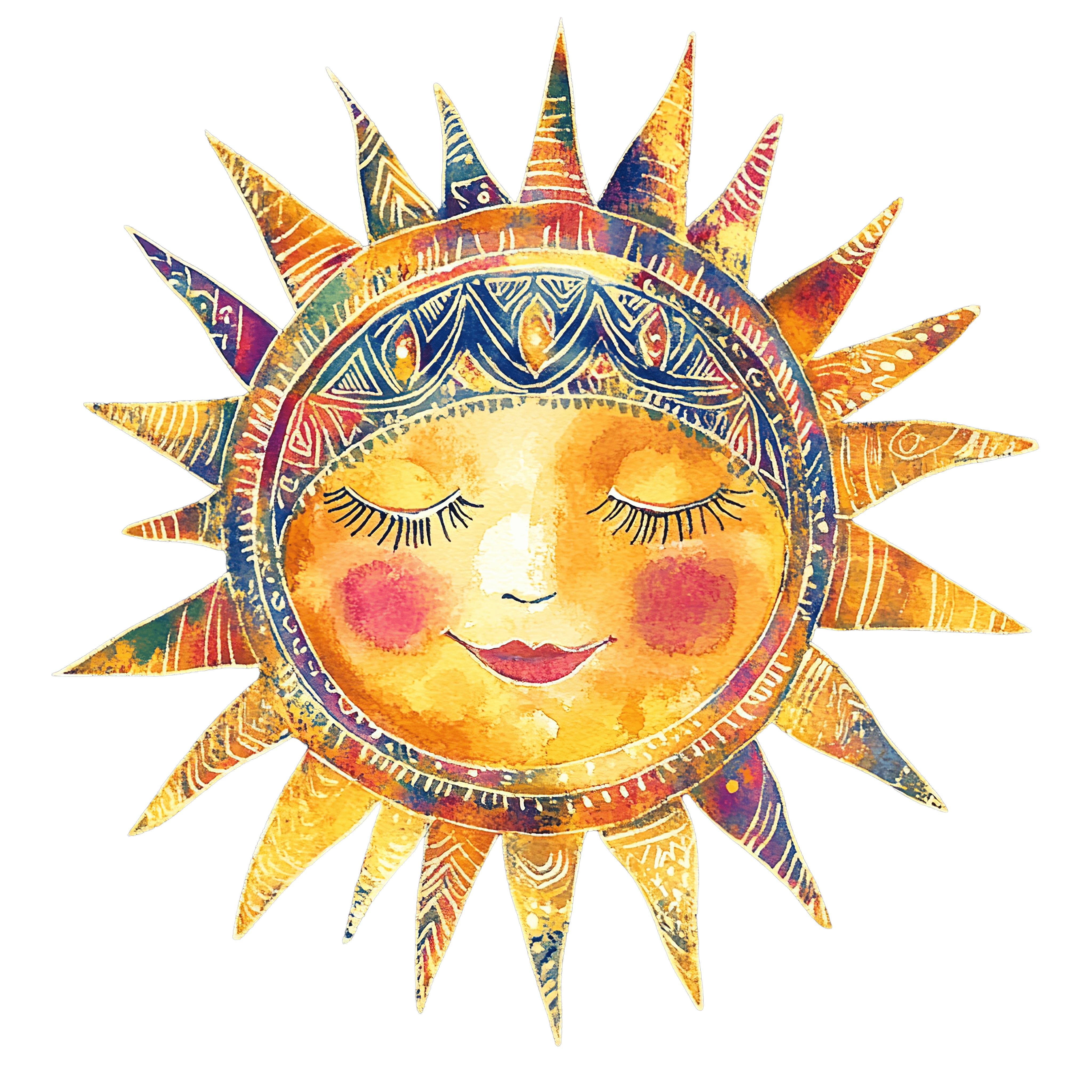 Colorful Tribal Sun Face with Radiant Rays on Black Tribal style sun face illustration with colorful rays and intricate patterns.Download PNG ▼Download JPG ▼Related posts:Watercolor art of a White Radish with Green LeavesChocolate Cake with Dripping Icing Topped by Fresh CherriesChocolate Cream-Filled Pastry with Powdered Sugar Topping dessert food sweet baked treatVibrant Butterfly With Intricate Purple And Yellow WingSlice of Key Lime Pie with Lime GarnishWatercolor Pineapple with Detailed Green Leaves fruit yellow clipart vector art tropicalFreshly Baked Baguette with Golden Crust and TextureMartini Glass with Lychee and Red Fruit GarnishWatercolor Parsnip with Vibrant Green LeavesSunrise Behind Rolling Green Hills in Circular DesignBright Parrot on Wooden Swing ClipartWatercolor Kiwi Slices with Detailed Seeds and Texture