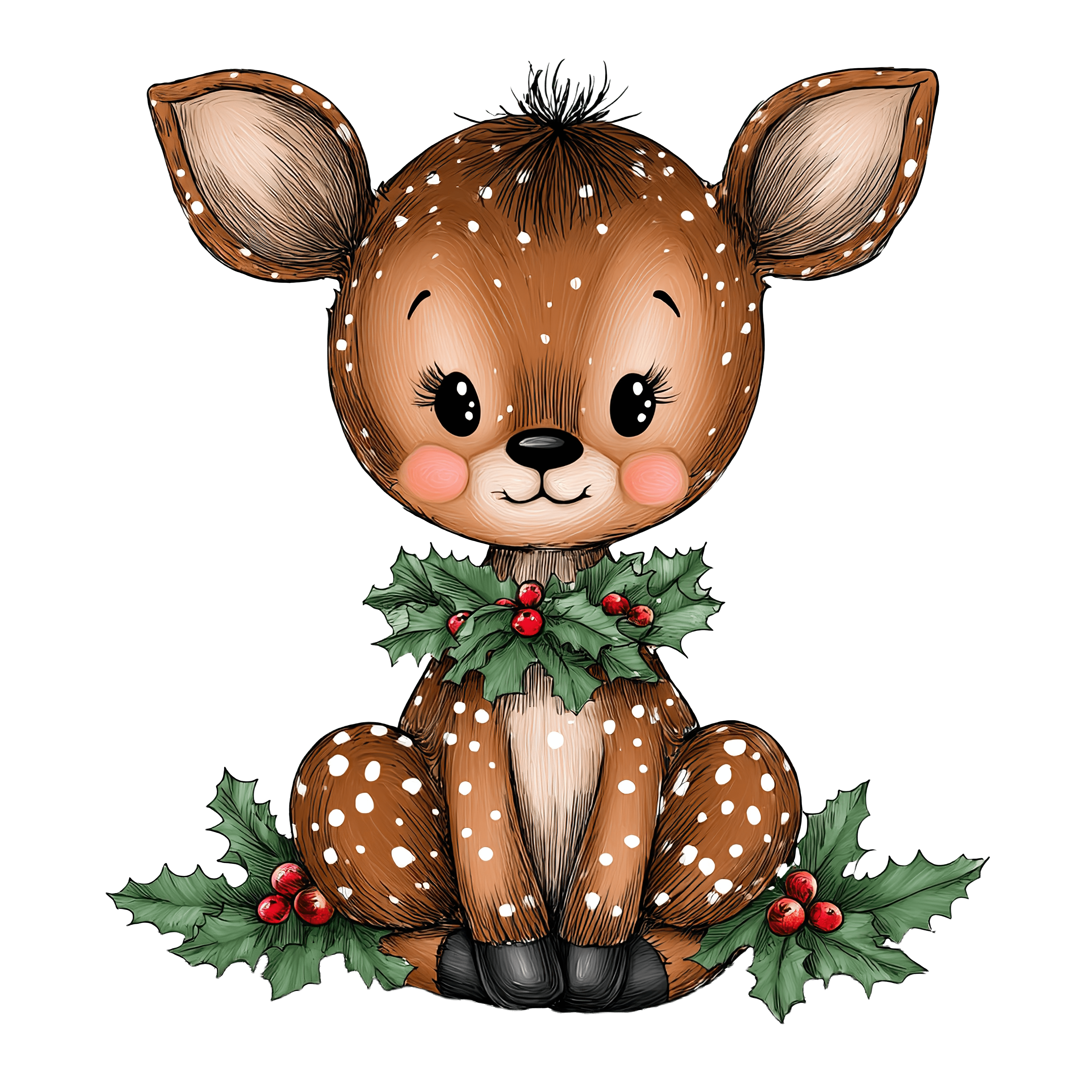 Cute Baby Deer Clipart with Festive Holly Decoration