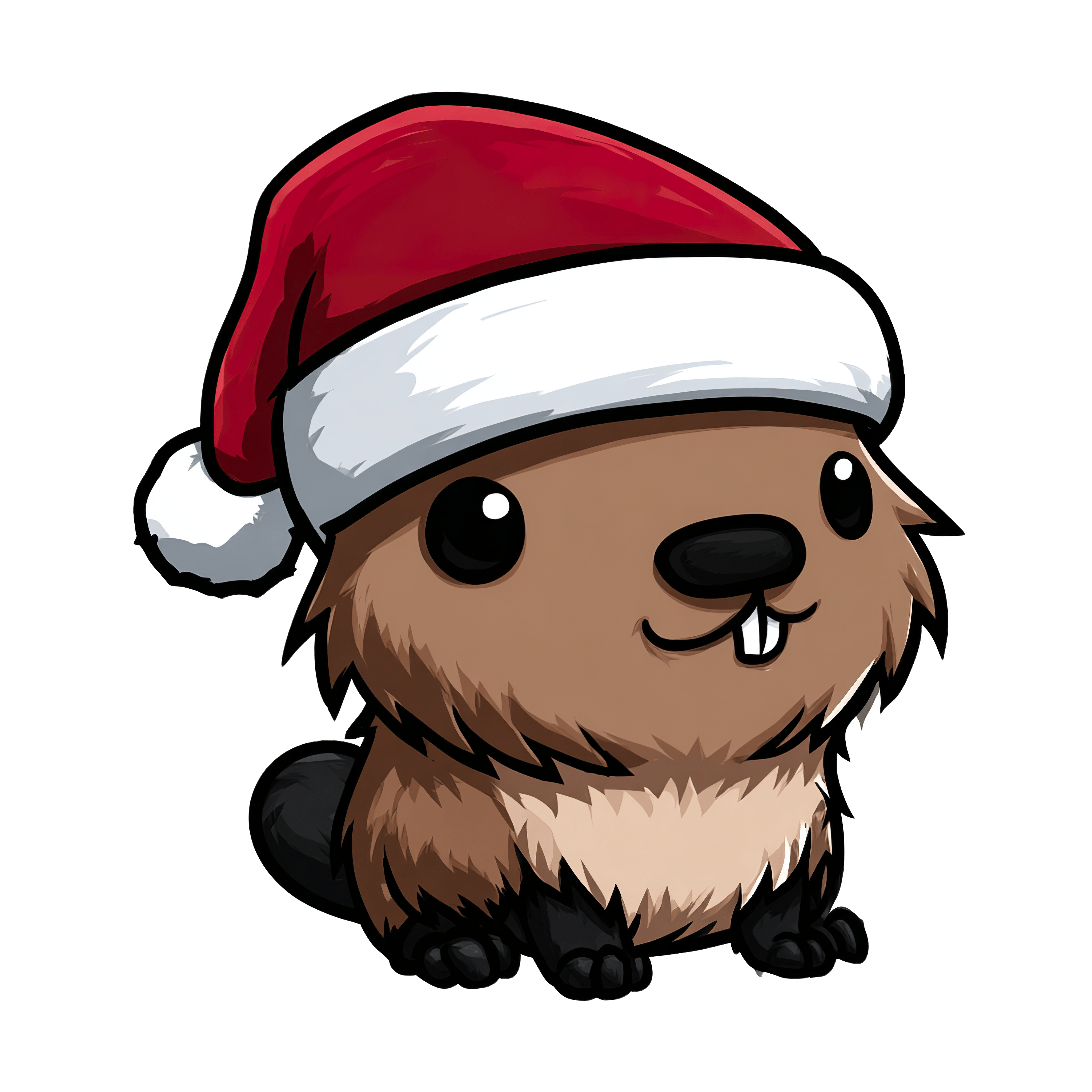 This charming clipart features an adorable beaver wearing a festive red and white Santa hat. The cartoon style and bright colors bring a playful and holiday-themed feel, perfect for seasonal designs or adding a touch of whimsy to Christmas projects.