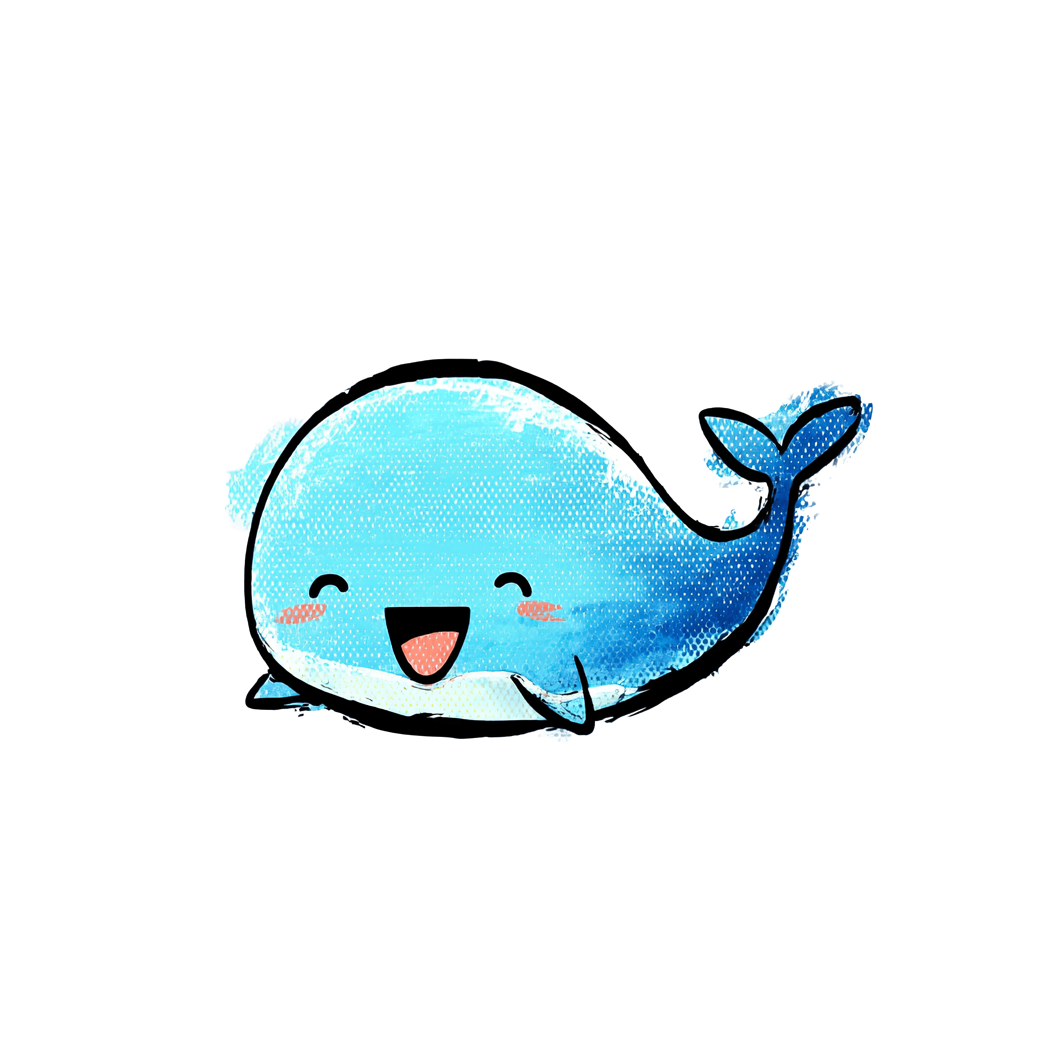 Cute Blue Whale Cartoon Clipart with Watercolor Texture