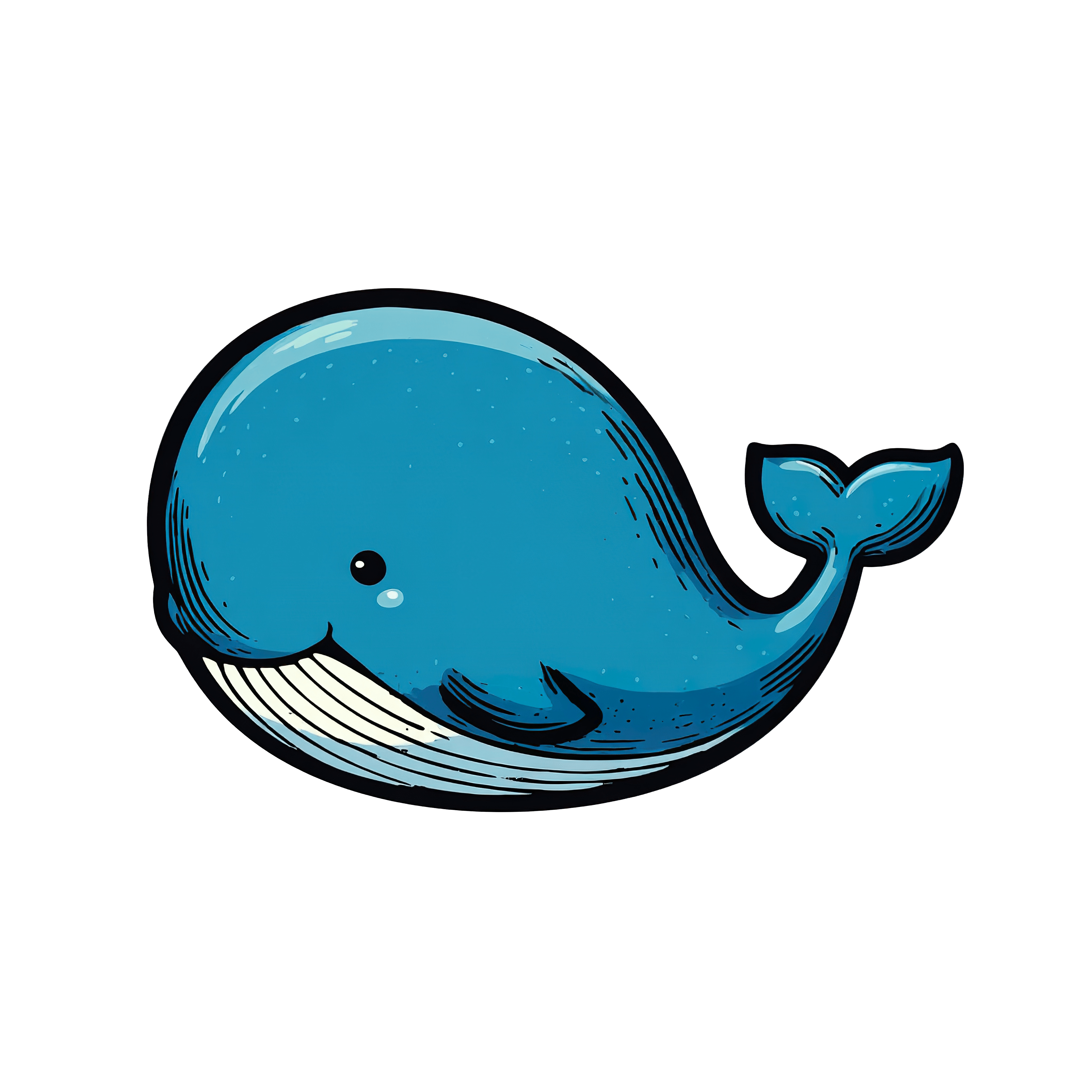 A charming cartoon illustration of a blue whale featuring a happy expression. The whale has a smooth, shiny surface and a simplistic design, making it ideal for educational materials or children's projects. The illustration captures a playful and light-hearted ocean theme.