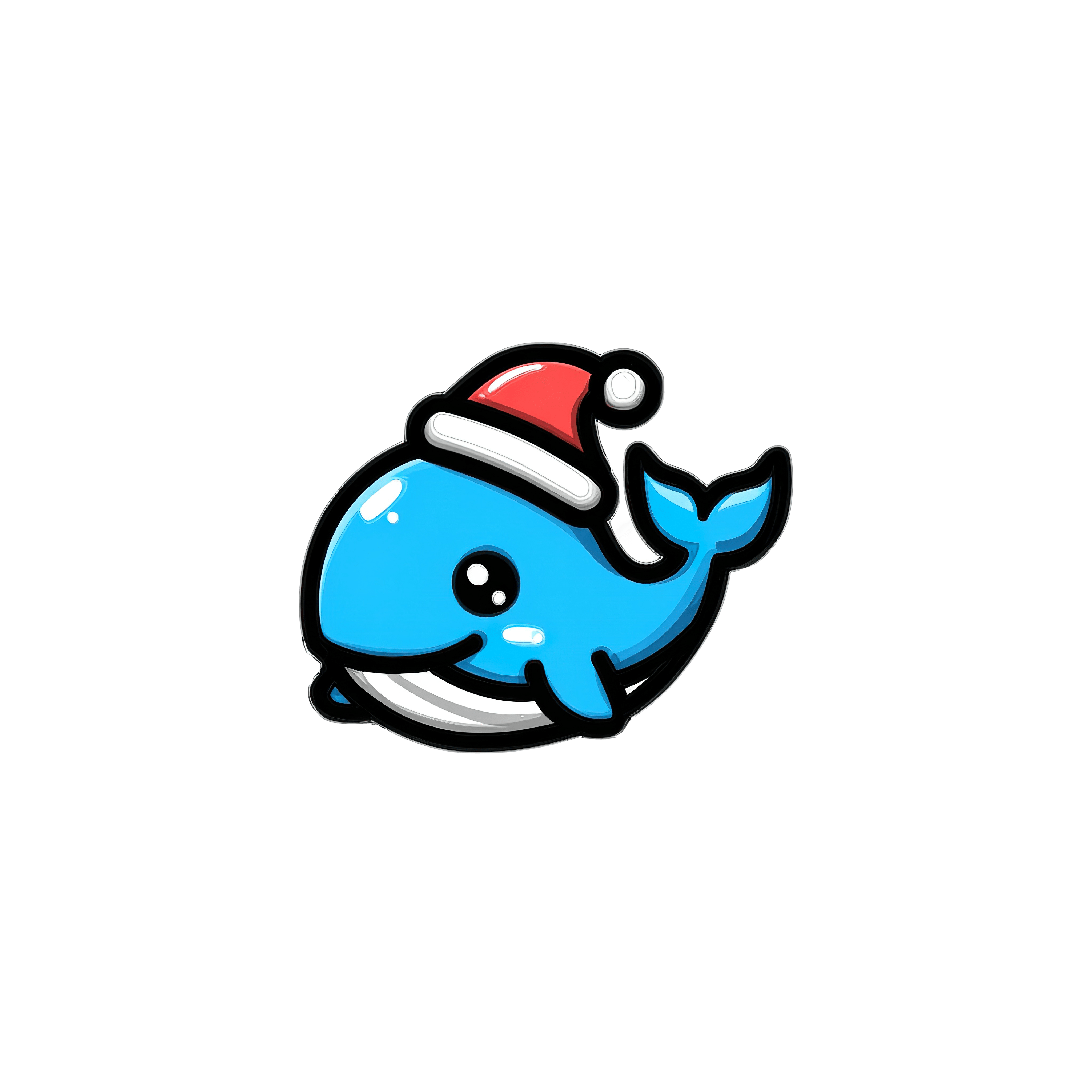 This adorable clipart features a cheerful blue whale sporting a festive Santa hat. The cartoon design offers bold outlines and a glossy finish, adding a playful touch. Perfect for holiday-themed projects, kids' crafts, and ocean-inspired creative endeavors.