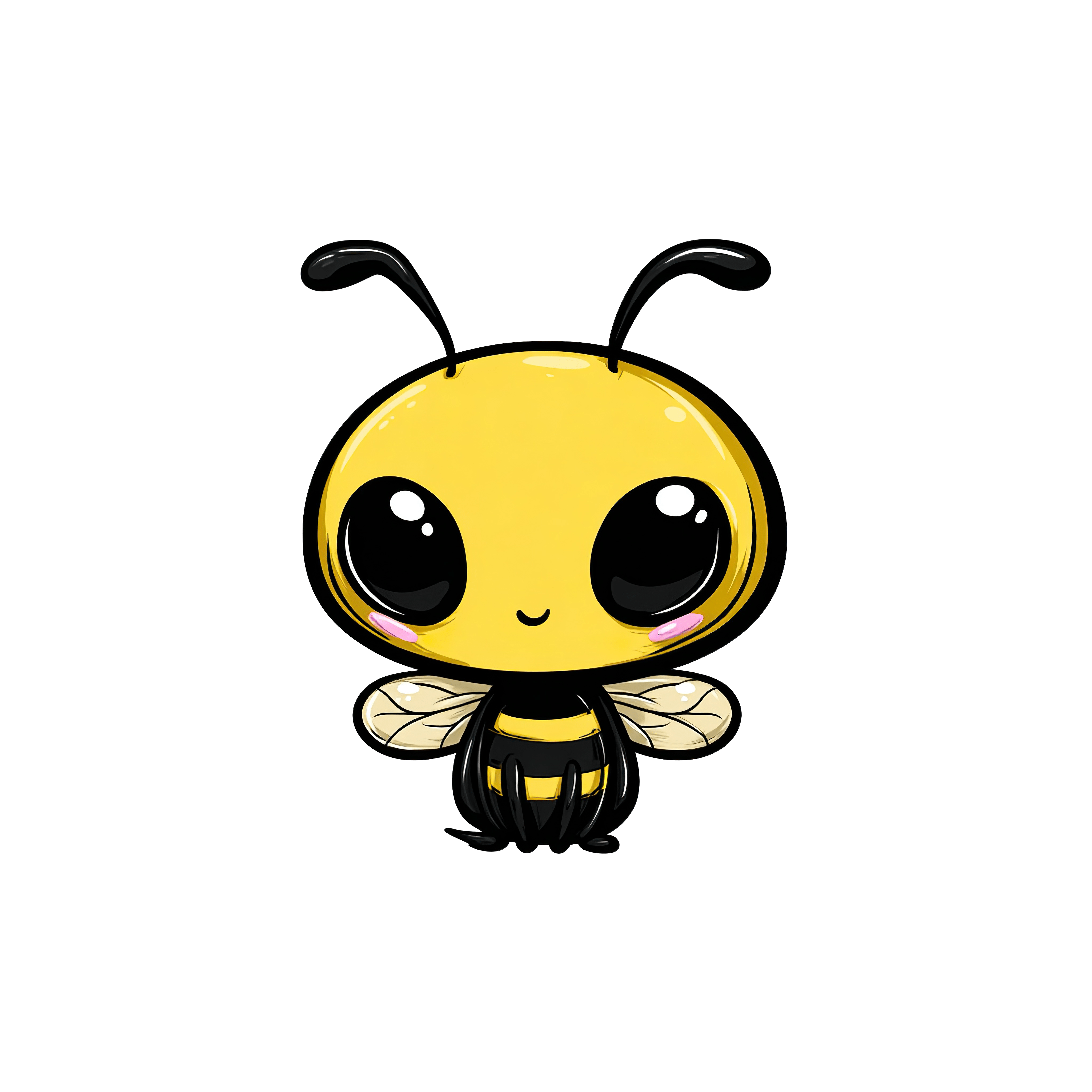 This delightful clipart features a kawaii-style yellow bee with expressive, large eyes and a cheerful smile. The bee's wings and antennas add to its adorable appearance, making it perfect for themed projects, children's materials, or greeting cards. Its cute design captivates attention immediately.