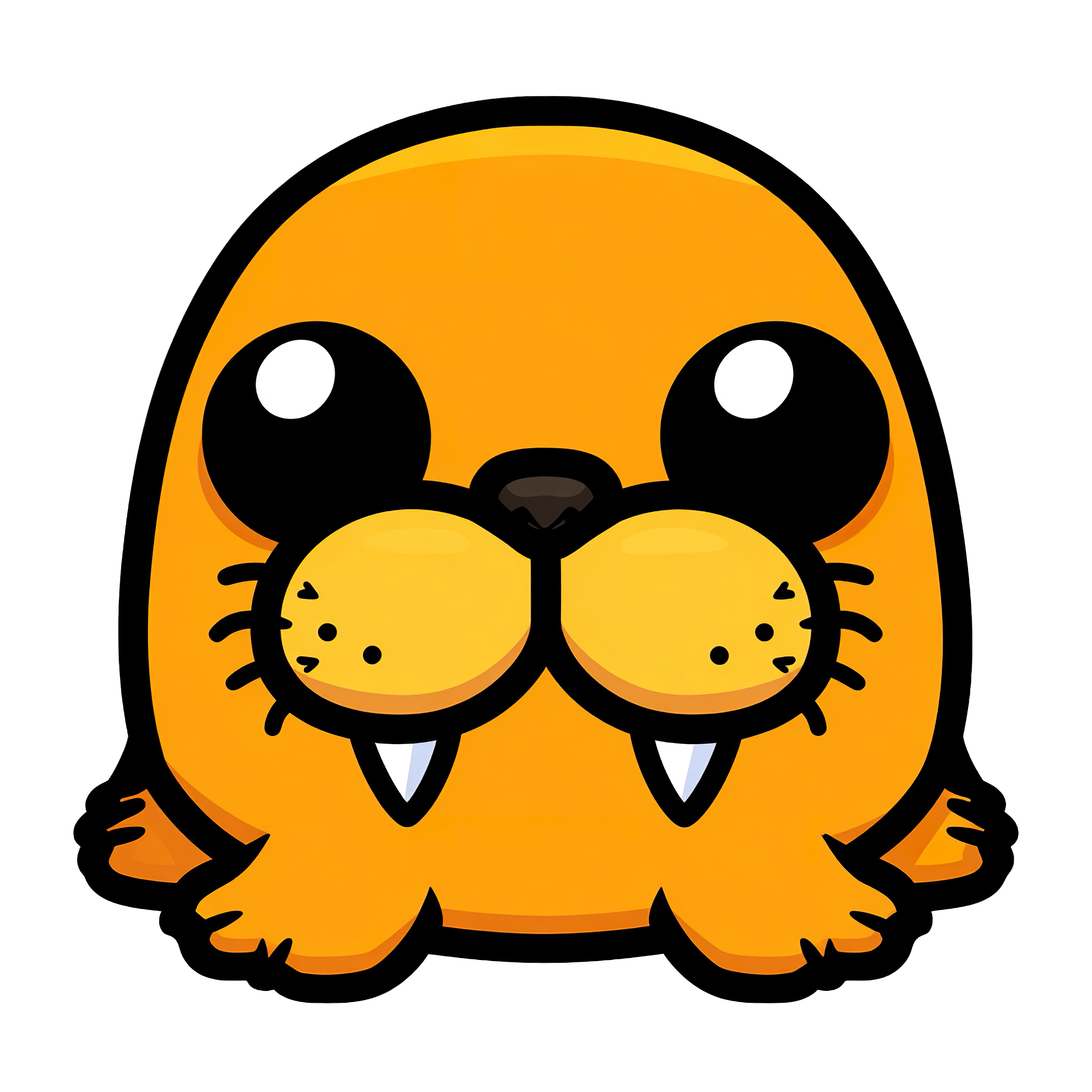 Adorable orange walrus with large eyes and prominent tusks, depicted in a cartoon style. This eye-catching illustration features a minimalistic design, rounded shapes, and bold outlines, perfect for educational materials, kids' projects, or digital art. The cheerful expression adds a playful touch.