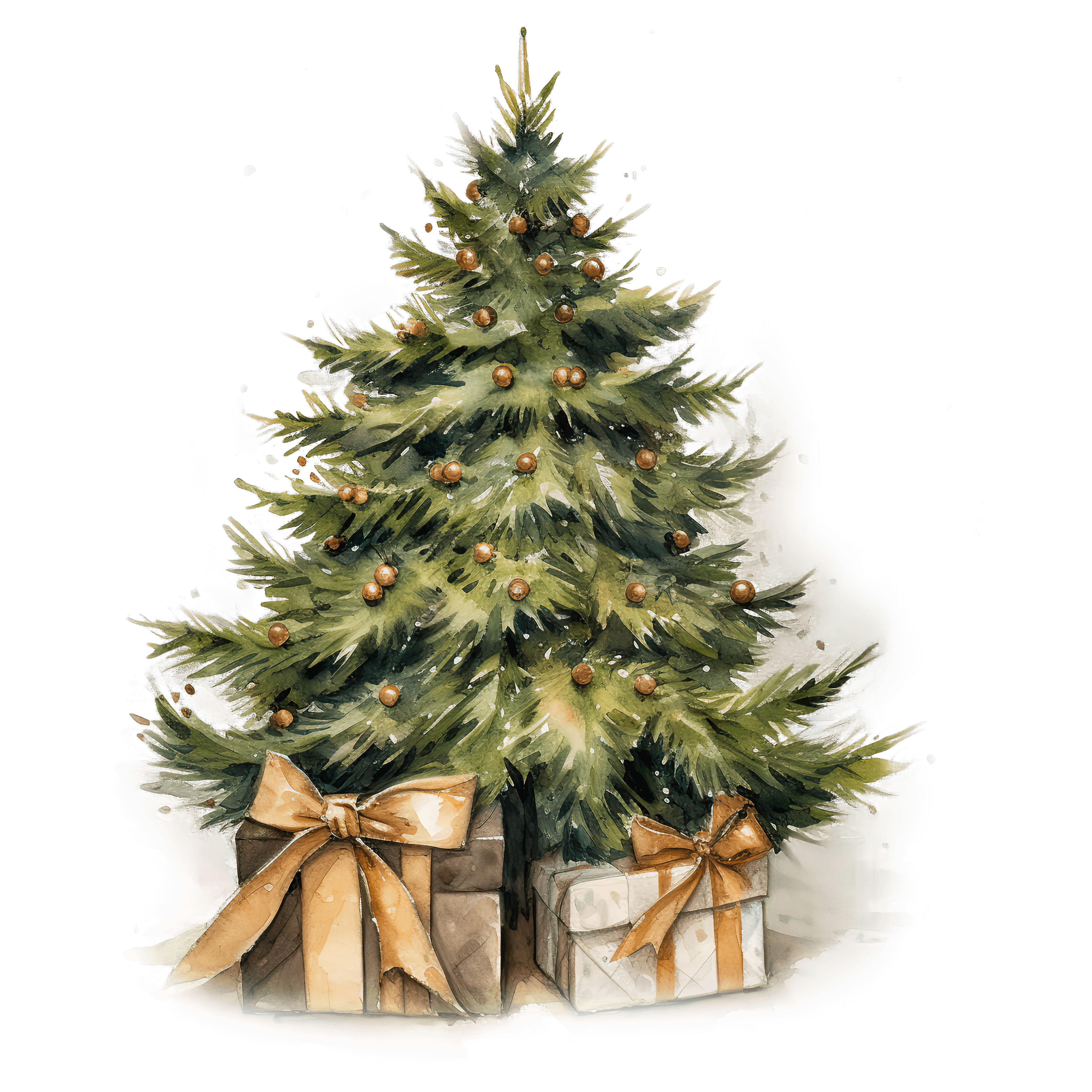 Decorated Christmas Tree with Gift Boxes and Ornaments Christmas tree adorned with ornaments and gift boxes underneath.Download PNG ▼Download JPG ▼Related posts:Vintage Style Woman with Blonde Hair and Red Bow TieWatercolor Hyacinth Stems in Various Growth Stages plants flowers botanical art clipartVictorian Woman in Red Hat with Festive Greenery DecorRoot Beer Float with Ice Cream Topping in GlassBright Red Poppy Flower with Green Stem on BlackRed Christmas Ornament with Pine Branches and Decorative DesignBunny with Santa Hat Surrounded by Festive Greenery and FlowersThree Green Tropical Leaves with Detailed Veins foliage clipart vector art botanicalGingerbread House with Candy Decorations and Snowy AccentsRefreshing Cucumber Mint Water with Lime Garnish beverage drink glass green clipartStylized Blue Mountains Under Large Yellow Sun on BlackBlack Swallowtail Butterfly With Distinctive Orange And White