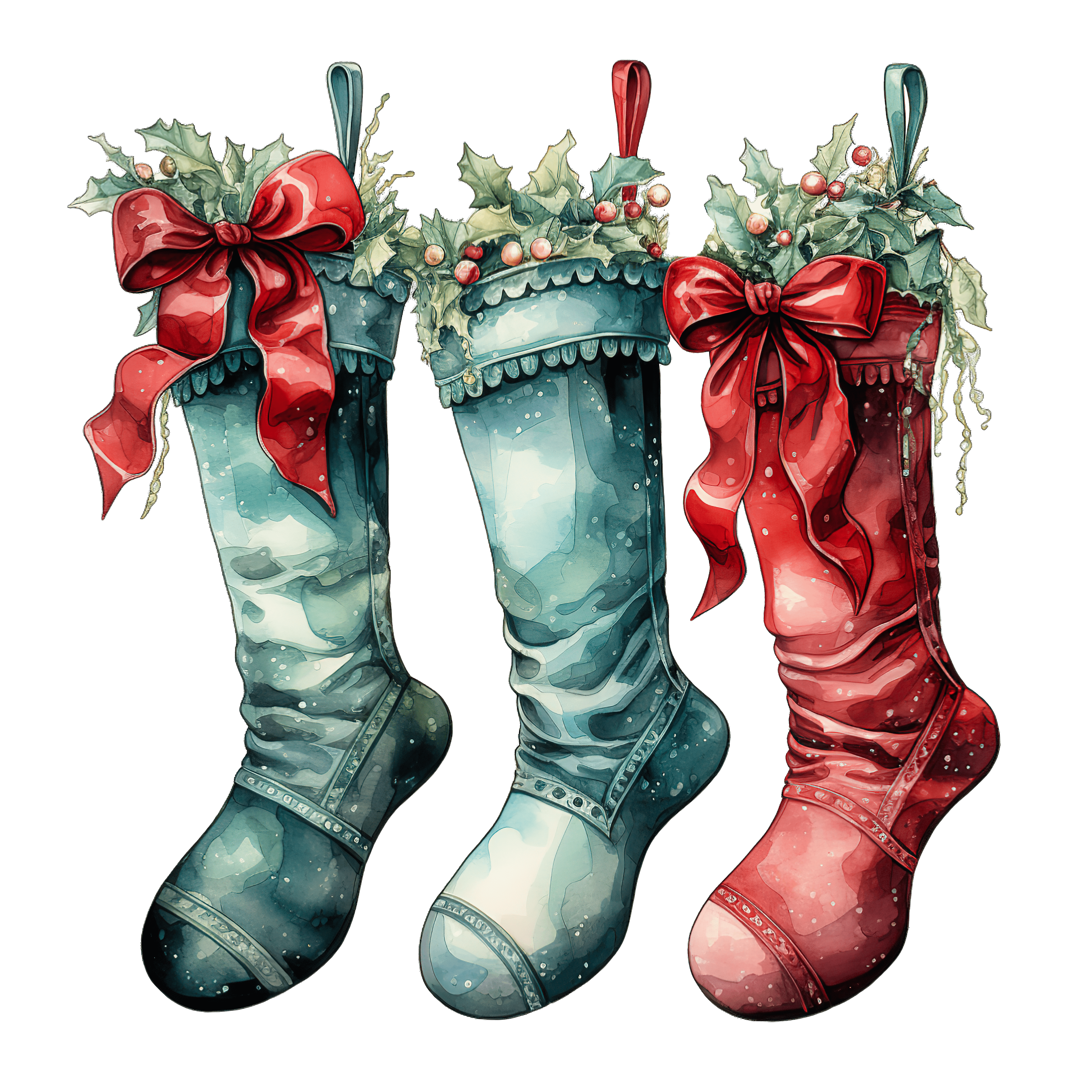 Decorative Christmas Stockings with Holly and Red Bows Three colorful Christmas stockings adorned with holly and large red bows.Download PNG ▼Download JPG ▼Related posts:Portrait of a Girl with Poinsettia and Holly Wreath ArtworkFurry otter clipart in grassy settingButterfly With Vibrant Wings Against A Red CirclePanna Cotta Dessert with Fresh Berries and Mint LeavesRed-nosed reindeer cartoon illustration with black antlersGlazed Cinnamon Roll with White Icing Drizzle pastry dessert baked sweet foodChocolate Tart with Macadamia Nuts on Top pastry dessert food sweet bakedGlass of Spiced Eggnog with Cinnamon Sticks and Star AniseRaspberry Topped Slice of Pink Layered Cake dessert sweet icing clipart vectorPink and White Petunia Flowers with Green Leaves IllustrationChristmas Stockings with Festive Holly and Ribbon DecorationTall Glass of Orange Juice with Straw drink beverage watercolor clipart vector