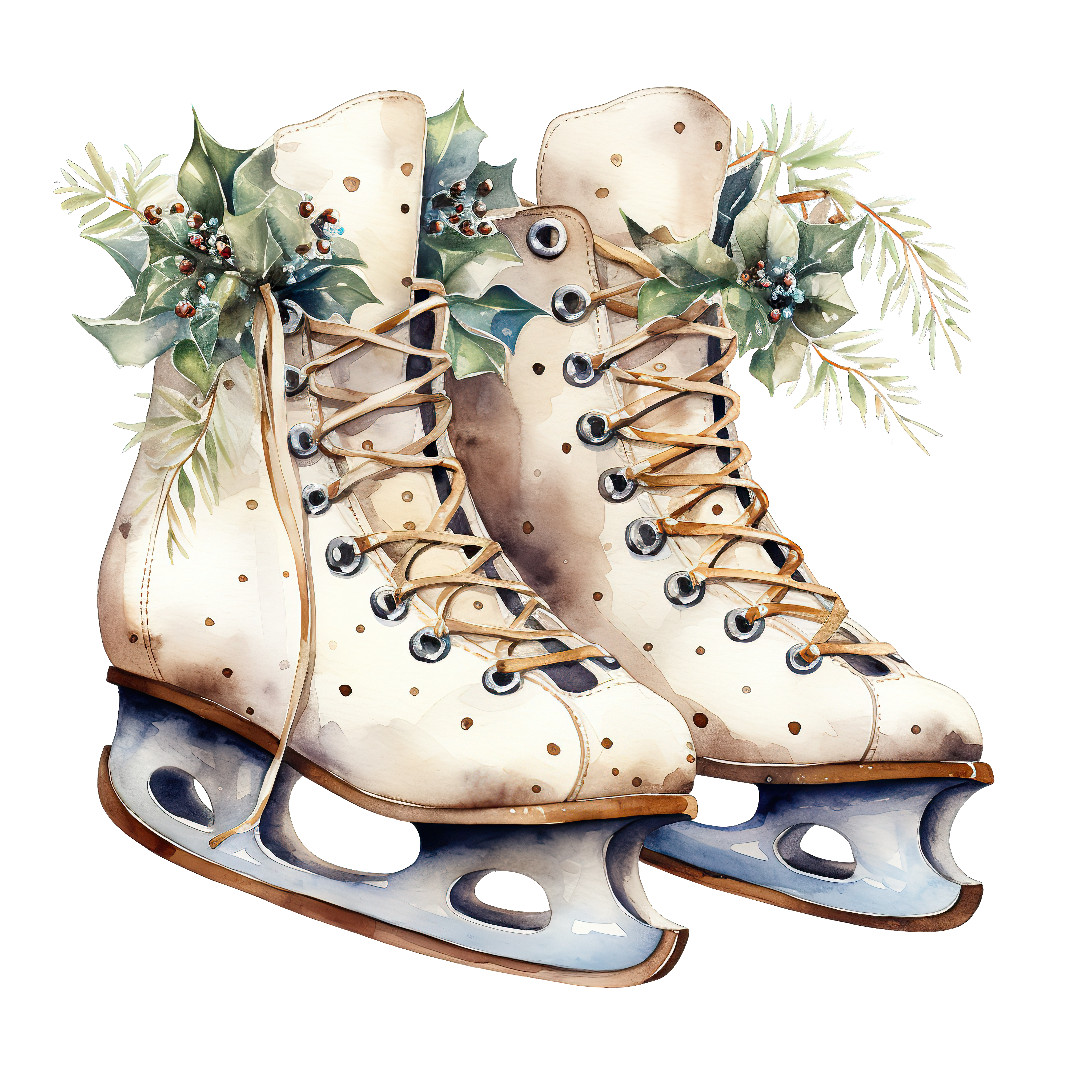 Decorative Ice Skates with Festive Holiday Holly and Greenery Pair of white ice skates adorned with holly and greenery for holiday decoration.Download PNG ▼Download JPG ▼Related posts:Festive bird with orange feathers and a red Santa hatFox on Autumn Leaves in Cartoon Clipart StyleSwiss Chard Leaf with Vibrant Red Stems ClipartMizuna Greens in Watercolor Featuring Diverse Leaf ShapesSanta Claus with Colorful Wrapped Gifts and Festive RibbonsFresh Broccoli Rabe with Green Leaves and StemsDelicious Lemon Cake Slice Topped with White Icing and Fresh Lemon WedgeColorful Polka Dot Cylinders in a Vertical LineupFestive Candle with Dripping Wax and Holly DecorationFestive Deer with Antlers in a Holiday Wreath IllustrationChocolate Glazed Donuts with Rich Topping Design glaze dessert food pastry sweetGlossy Black Heart Illustration with a Watercolor Texture Effect