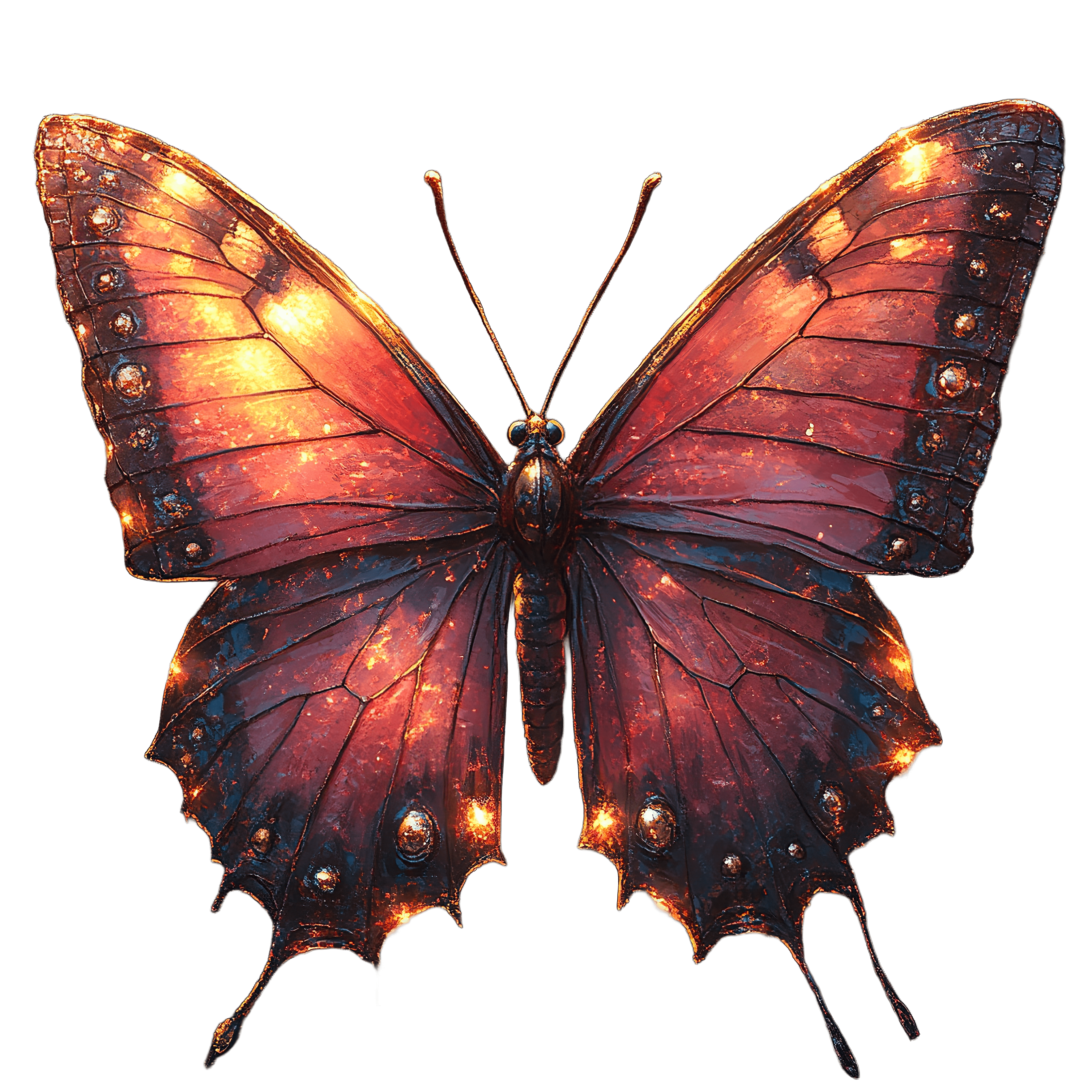 Detailed Butterfly Illustration With Glowing Orange And Red Butterfly with intricate glowing patterns on its wings.Download PNG ▼Download JPG ▼Related posts:Traditional Holiday Holly with Red Berries and Green LeavesVibrant Butterfly Displaying Multicolored WingsLion in Wizard Outfit Holding a StaffGlass of Orange Juice with Slice and StrawFresh Blackcurrant Cluster with Lush Green LeavesFoxes Dressed in Winter Clothing with Knit Hats and ScarvesColorful Butterfly Clipart With Intricate Wing PatternsVibrant Floral Arrangement with Pinecones and Red Berries IllustrationBlue And Orange Butterfly Detailed PngRadicchio Lettuce with Green and Purple Leaves vegetable clipart vector art printableRefreshing Apple Tea Clipart Featuring Mint and IceOrange Starfish Textured Rock Plants