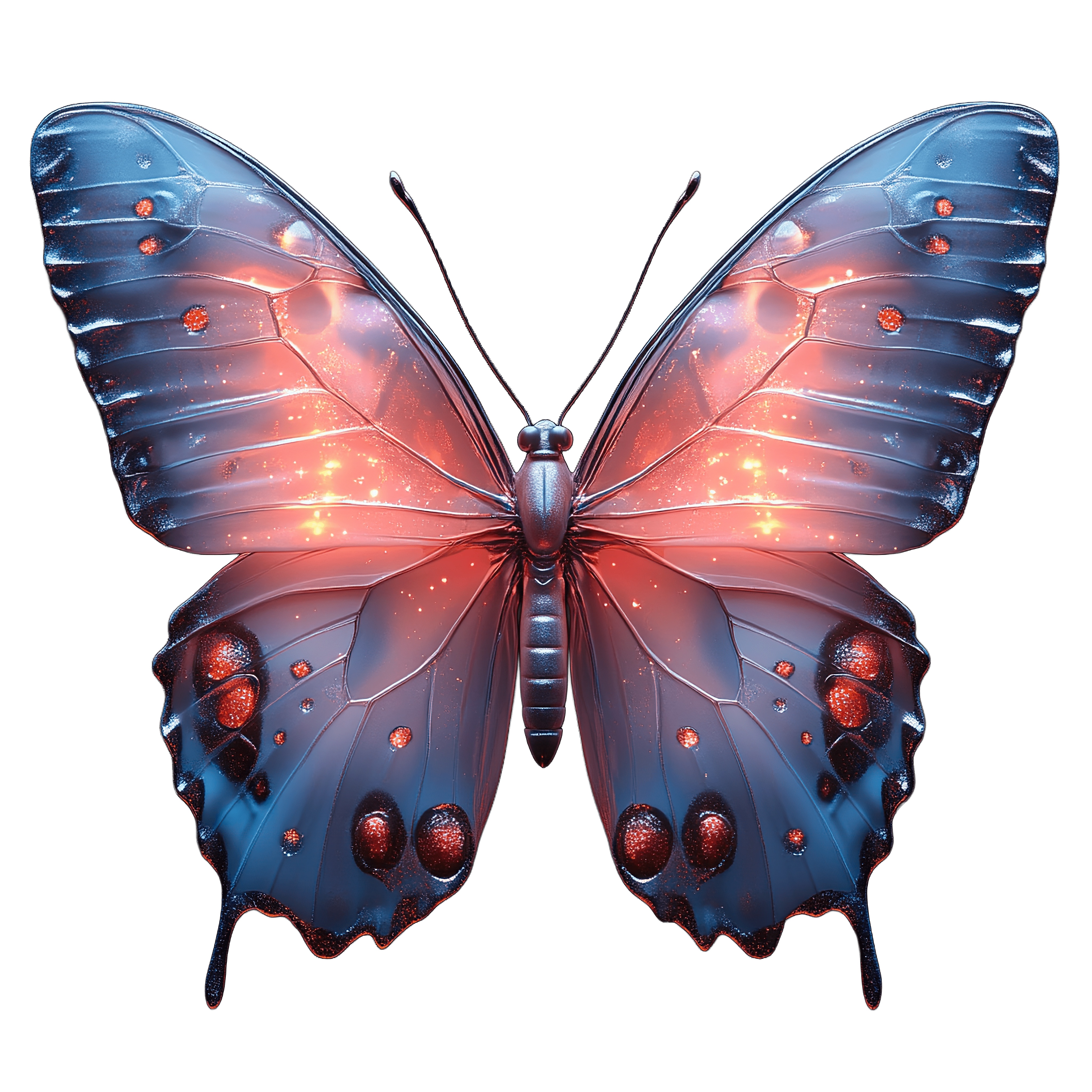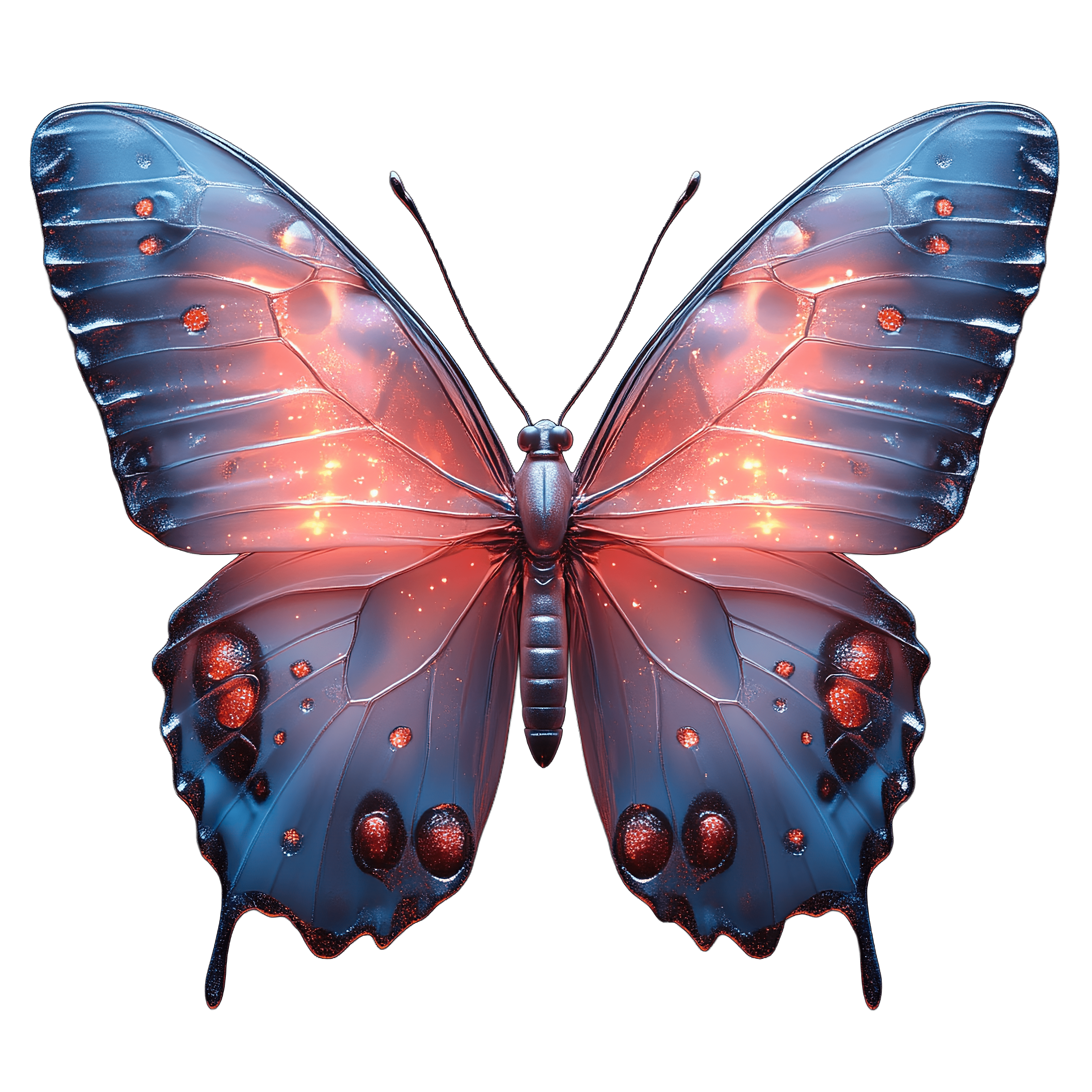 Detailed Illustration Of A Blue And Red Butterfly Blue and red butterfly with glowing patterns on black background.Download PNG ▼Download JPG ▼Related posts:Refreshing Carrot Juice in a Glass with Orange Garnish and Straw IconGrunge Textured Heart Icon in Red and Beige TonesSweet Caramel Custard Pudding on a Plate Vector ArtHand-Painted Sun with Wavy Rays on Black BackgroundVibrant Butterfly Displaying Multicolored Wings In FlightBee On White DaisyColorful monster truck with oversized wheels on a black backgroundStack of Gift-Wrapped Books with Holiday DecorationsVibrant Butterfly With Starry Patterns In FlightDecorative Red and Green Christmas Ornament with Intricate PatternsWhite Christmas High Heels with Holly and Green BowsStack of Iced Mince Pies with Sugar Topping on Plate