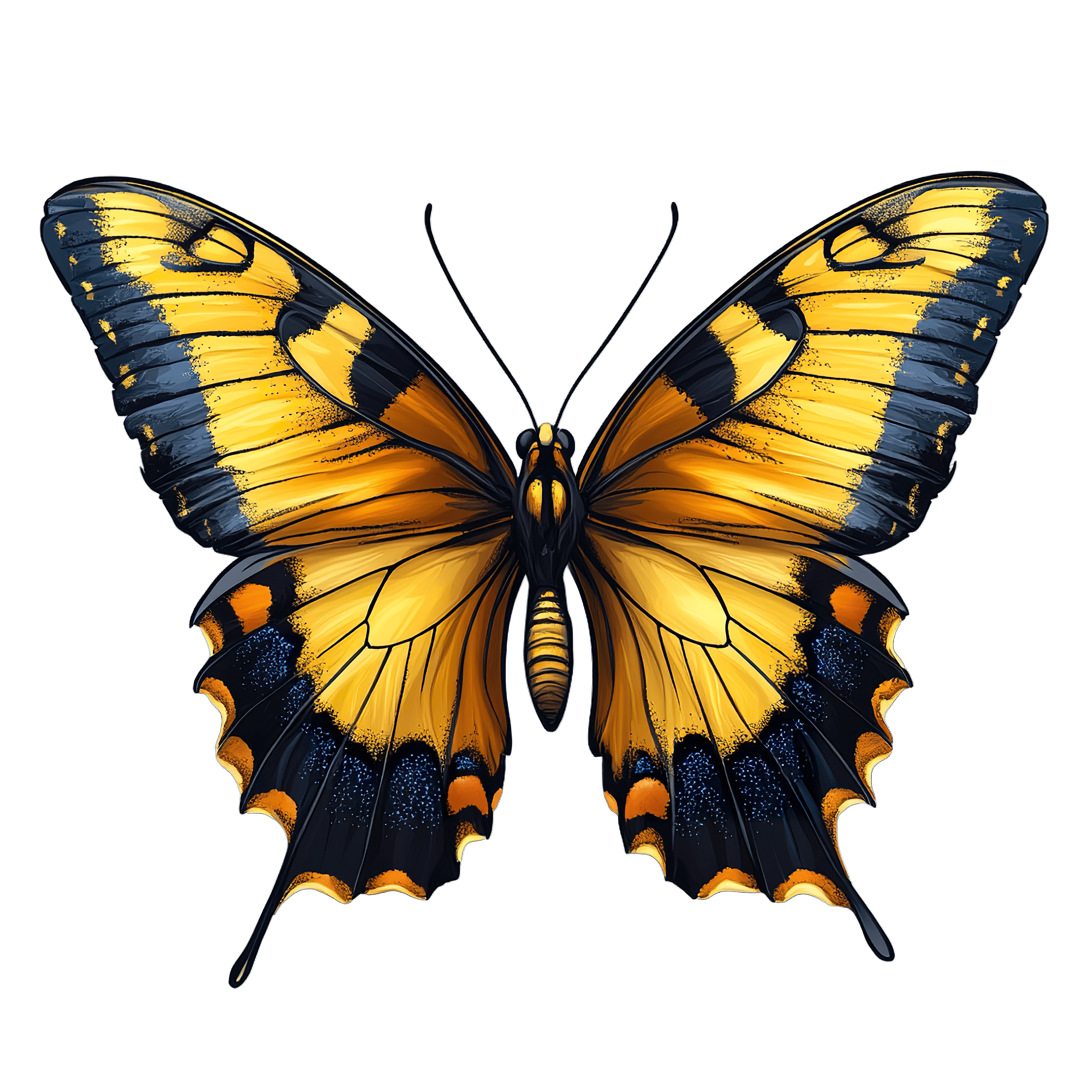 Detailed Illustration Of A Yellow And Clipart Png Yellow and black butterfly with intricate wing patterns displayed.Download PNG ▼Download JPG ▼Related posts:Watercolor Collard Green Leaf with Detailed Veins vegetable clipart food plant botanicalPapaya Halves with Seeds and Green Leaves ClipartVibrant Butterfly With Radiant Multicolored Wings In FlightGreen Bell Pepper Watercolor Style Clipart vegetable food vector art printable iconGreen Branches and Red Berries DesignGlass Cup of Ginger Tea with Fresh Ginger RootIntricate Green Leafy Mandala Design with Central FlowerCute Pink Axolotl with Gills Illustration on Transparent BackgroundDelicious Lemon Cake Slice Topped with White Icing and Fresh Lemon WedgeWoman with Festive Hair Bow and Christmas Themed EarringsVibrant Blue And Orange Butterfly Illustration FlyingElegant Wineglass Filled with Burgundy Red Wine Vector Art Icon