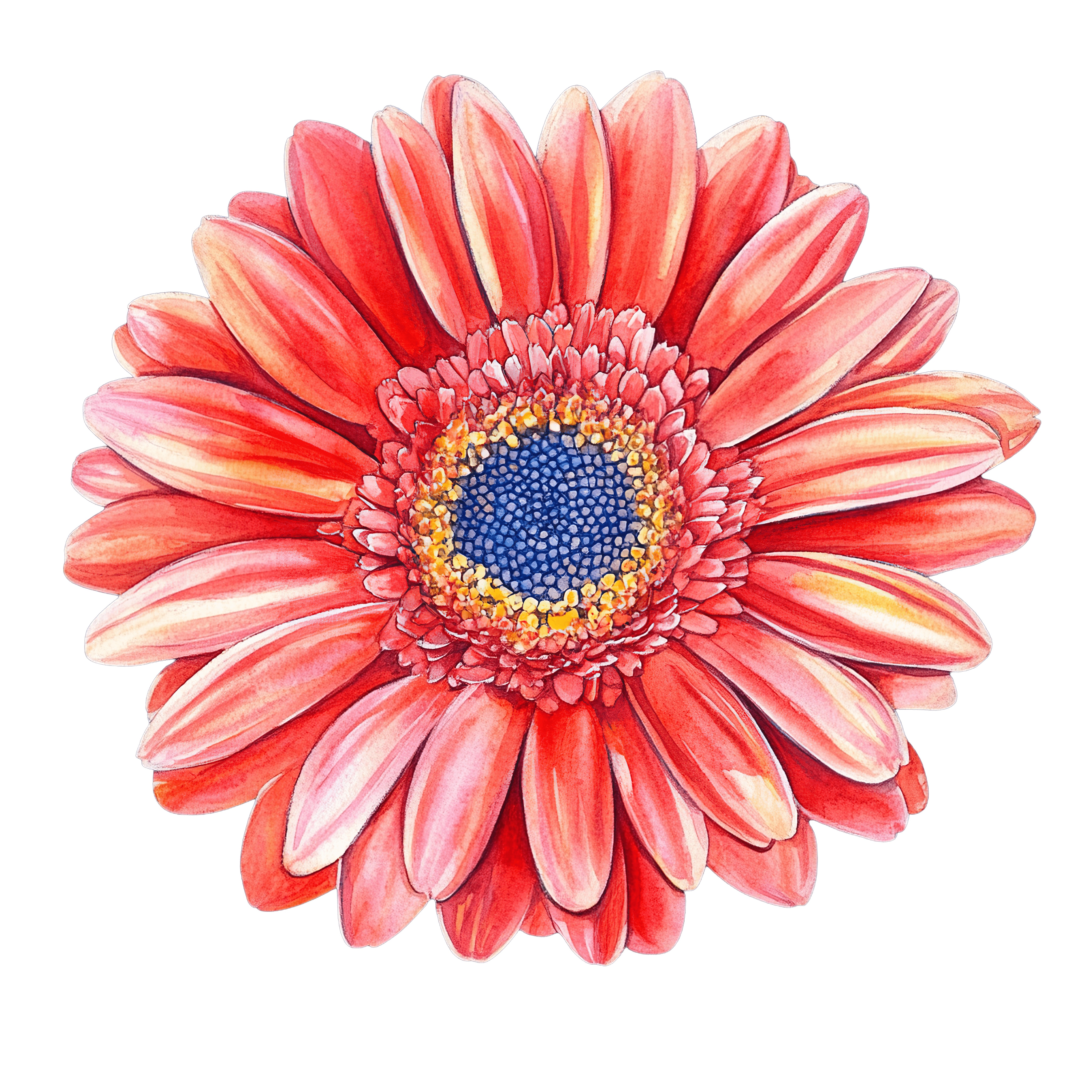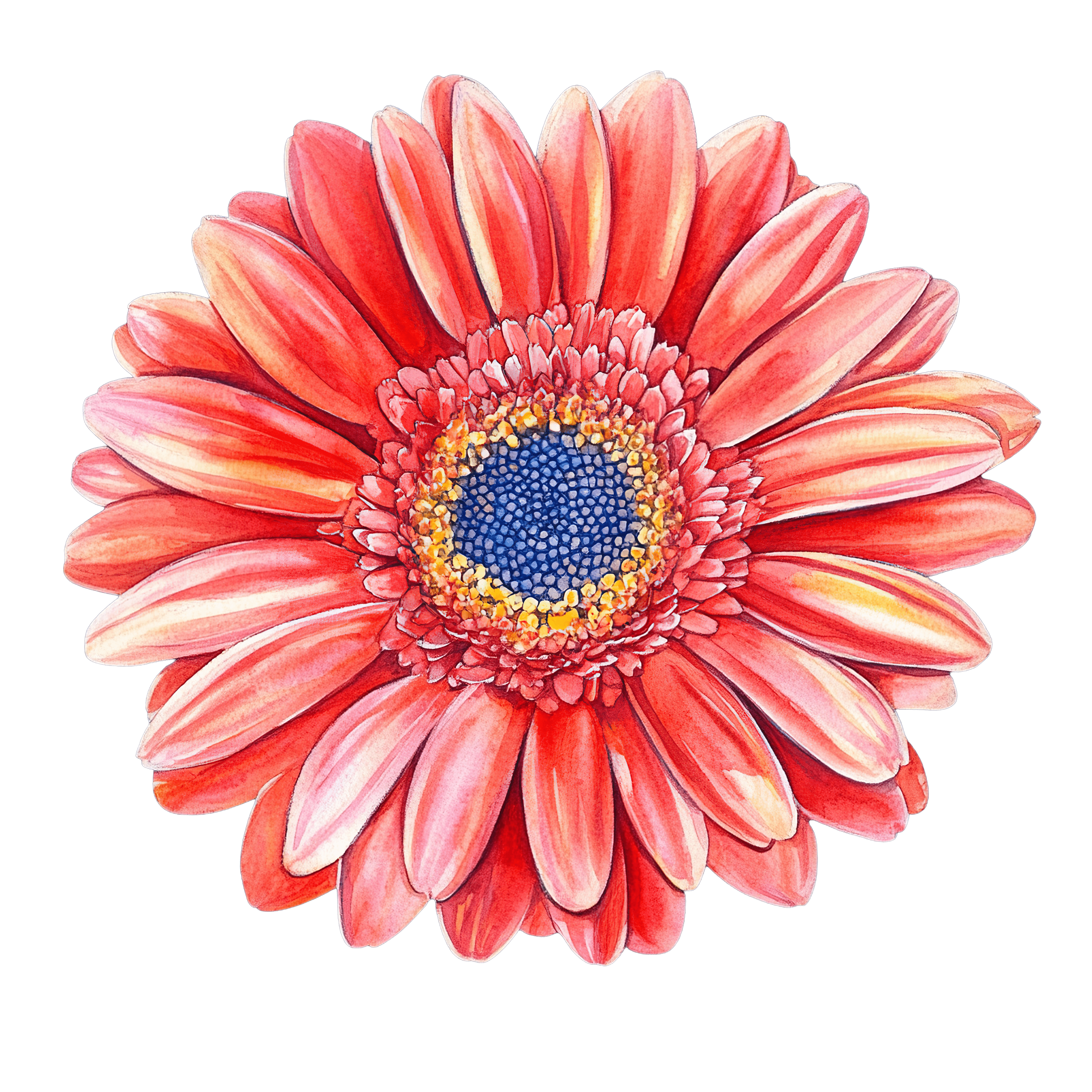 Detailed Red Gerbera Daisy with Blue Center Illustration Red gerbera daisy with intricate petals and a blue center.Download PNG ▼Download JPG ▼Related posts:Banana Slices on Toasted Bread with Honey DrizzleOrange Soda Bottle Clipart with Bubbles and CapHeart Shape Filled With White Daisies On BlackHand-Painted Blueberries with Lush Green LeavesSlice of Apple Strudel with Powdered Sugar ToppingPink Butterfly With Black Spots And Detailed WingsMeerkat peeking from behind a corner clipartWatercolor Fruit Tarts with Berries and Mint LeavesRed Apple with Green Leaf on Top fruit clipart vector art printableColorful Shaved Ice in a Glass with StrawWatercolor Purple Onion Whole and Sliced Clipart vegetable food vector art printableWatercolor Apple with Green Leaves Painting